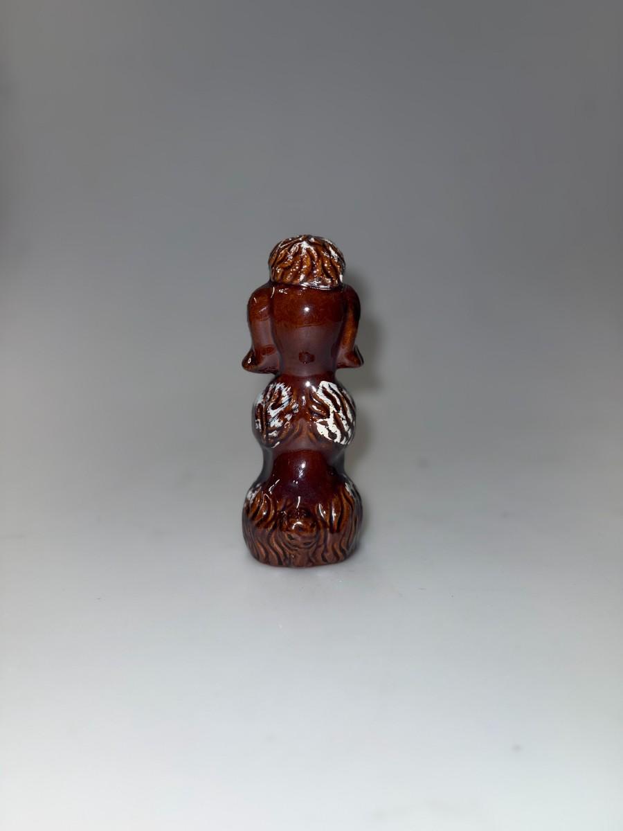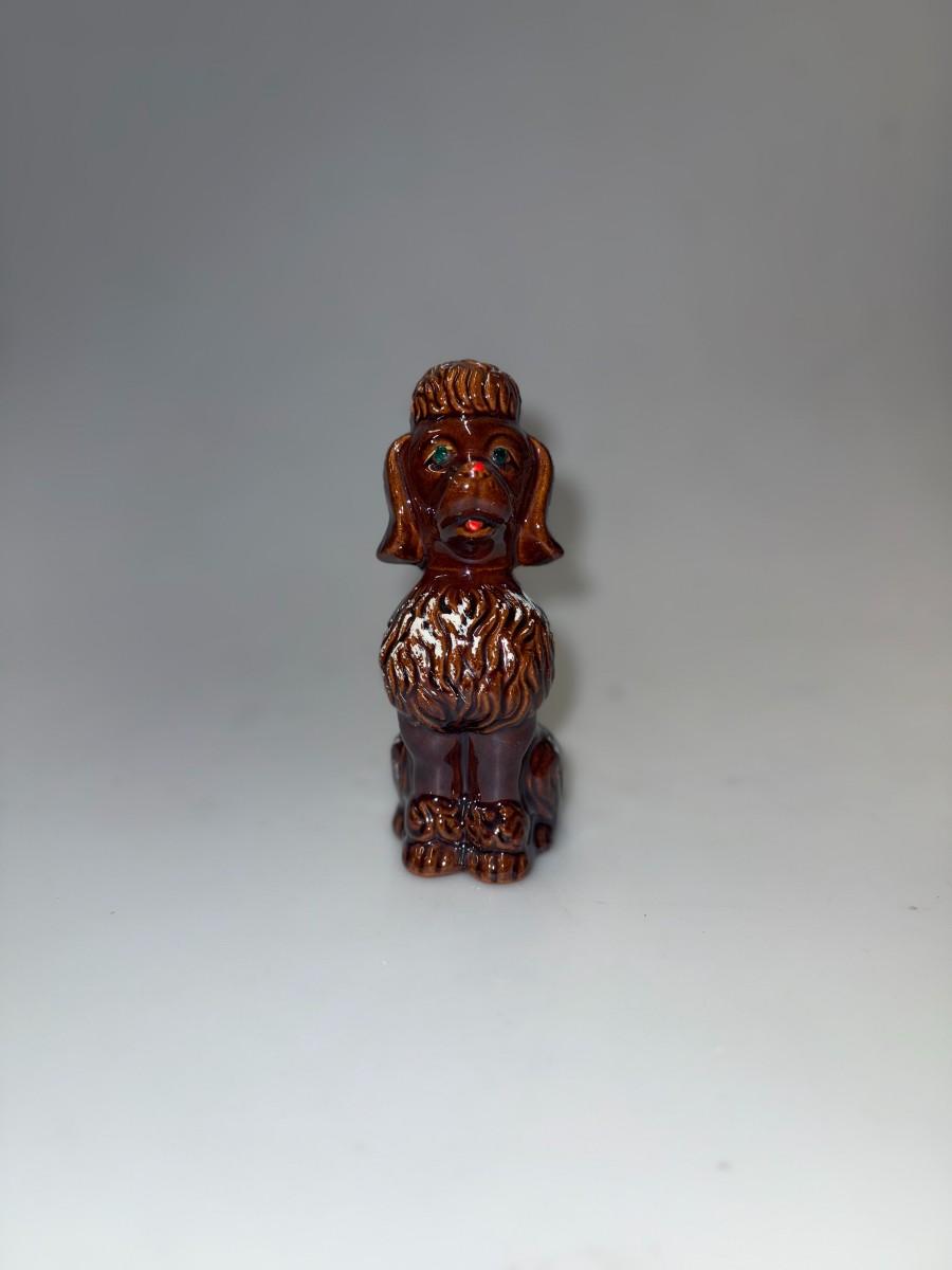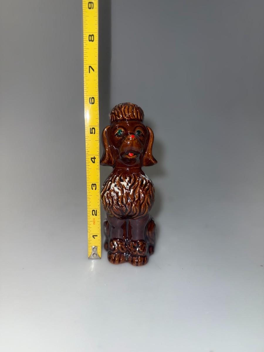 This adorable vintage redware pottery figurine features a standard poodle with delightful green rhinestone eyes, adding a kitschy charm to your decor. Crafted with attention to detail, this cute piece showcases the poodle's characteristic features and playful demeanor. In very good condition, it makes a whimsical addition to any collection or display, perfect for dog lovers and fans of vintage ceramics alike. This charming figurine brings warmth and personality to your home decor!