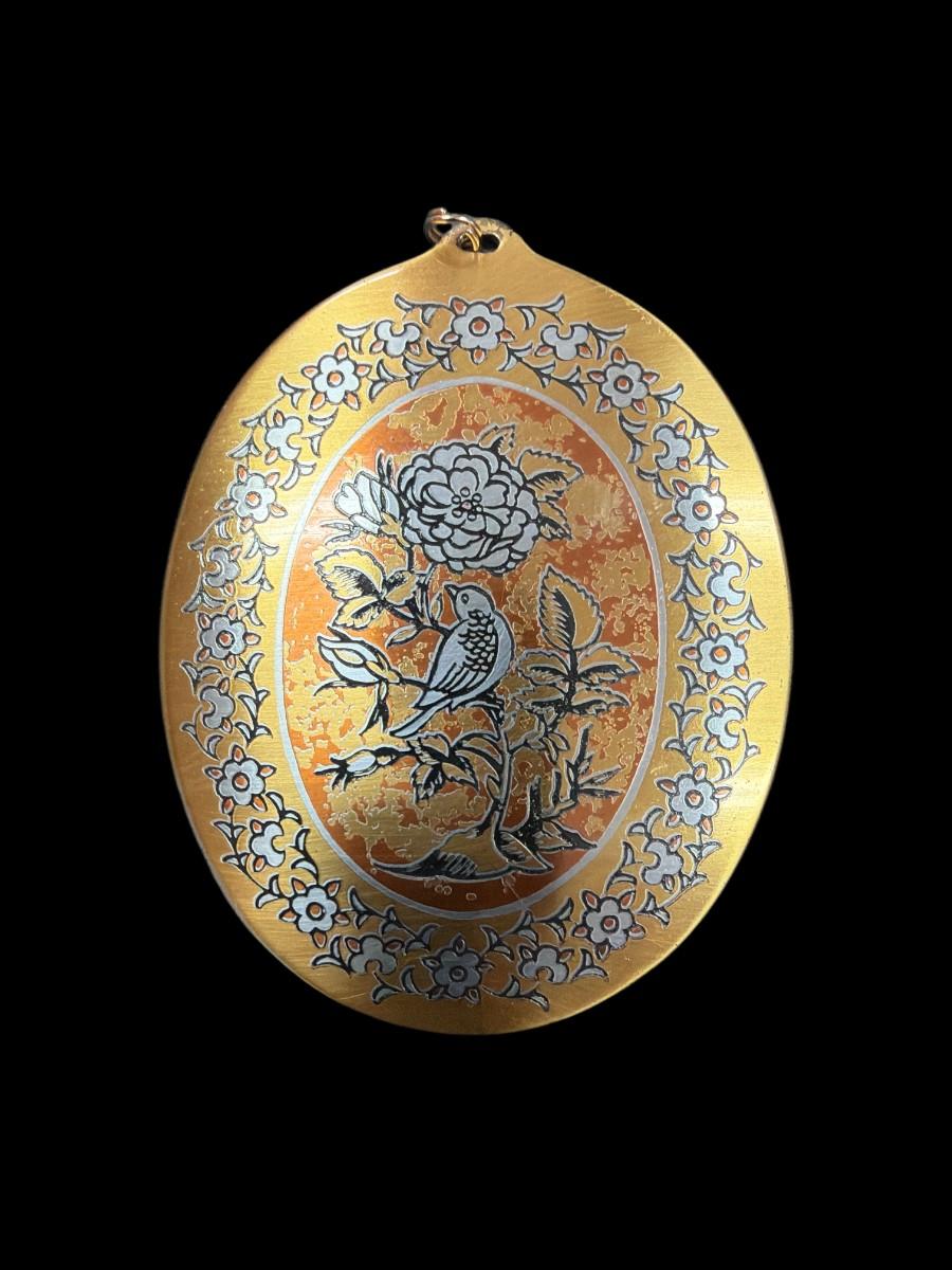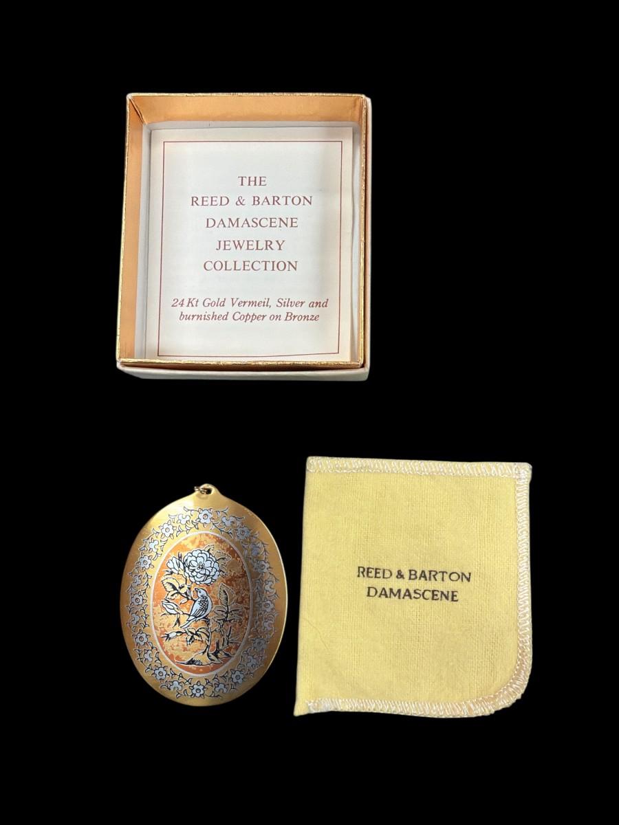 Vintage Reed & Barton Damascene Pendant with Bird and Floral Motif
