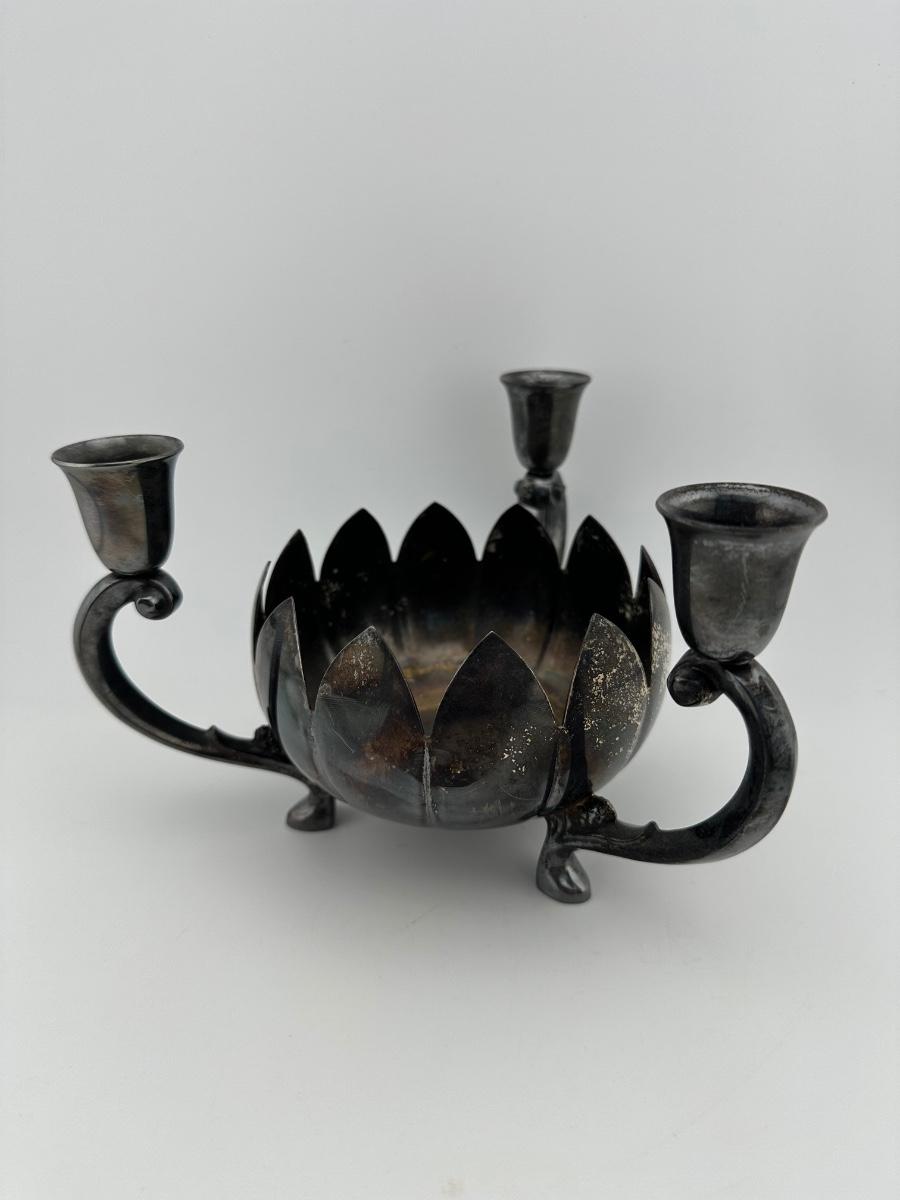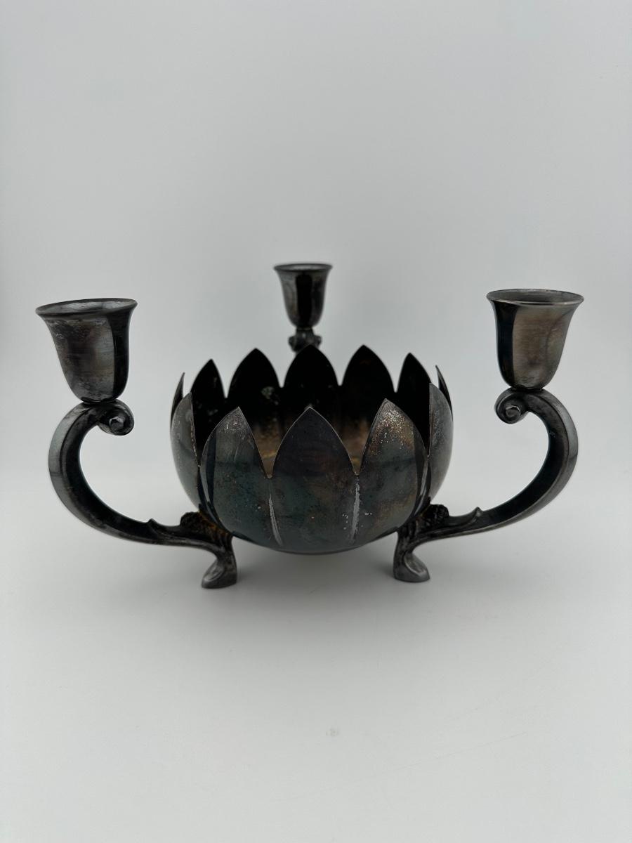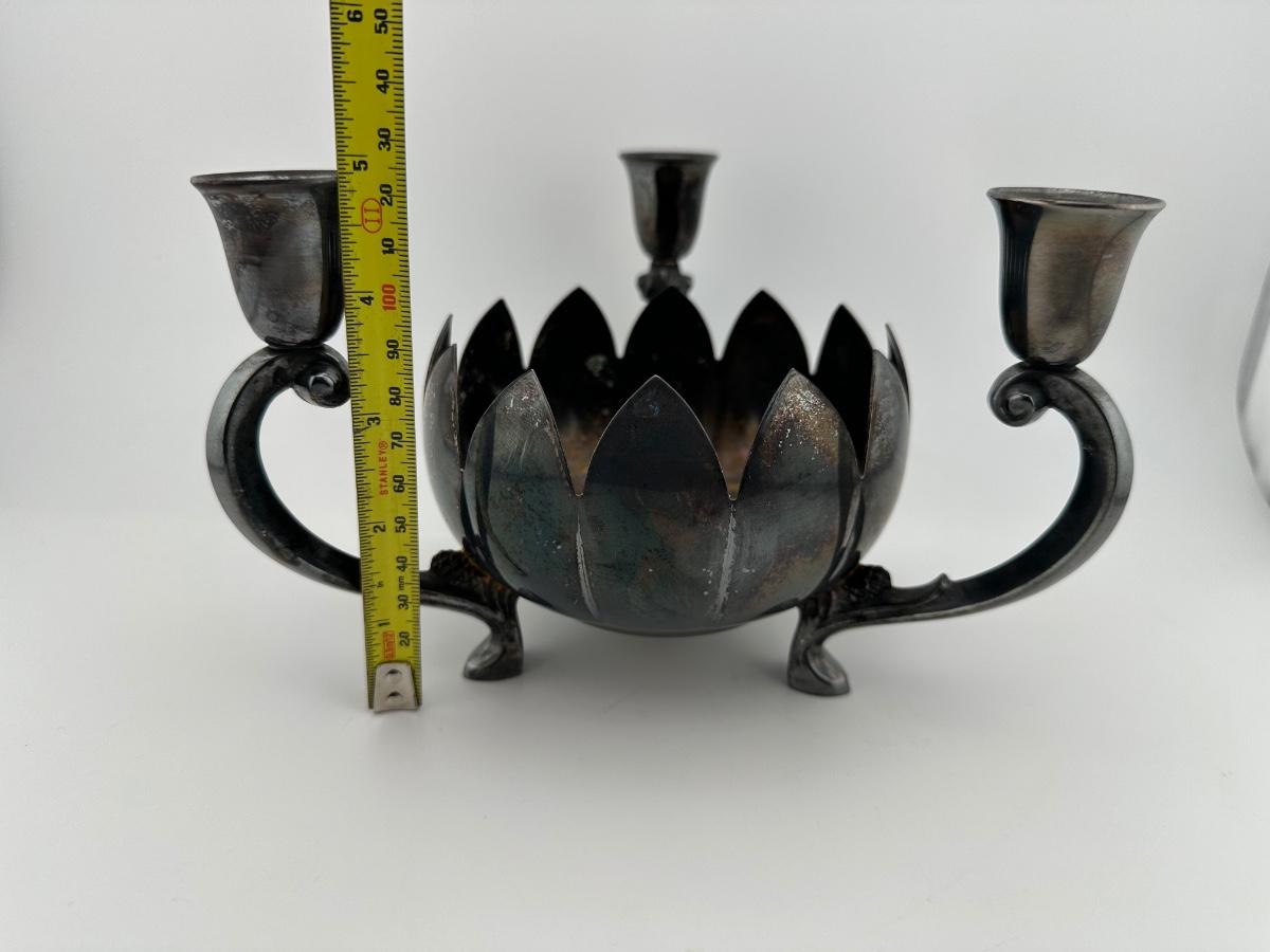 Vintage Reed & Barton Epergne Silverplate Candelabra Candleholder Lotus Flower