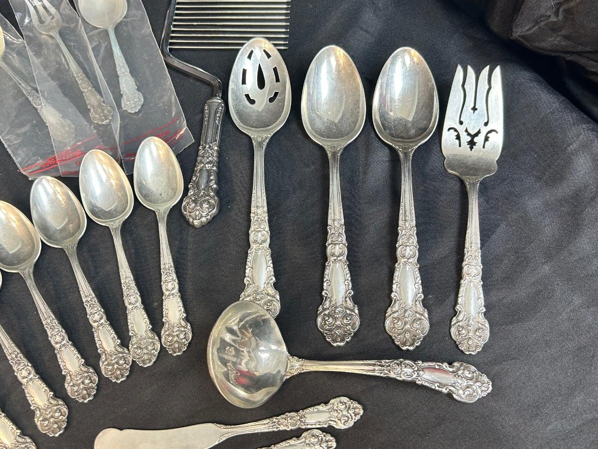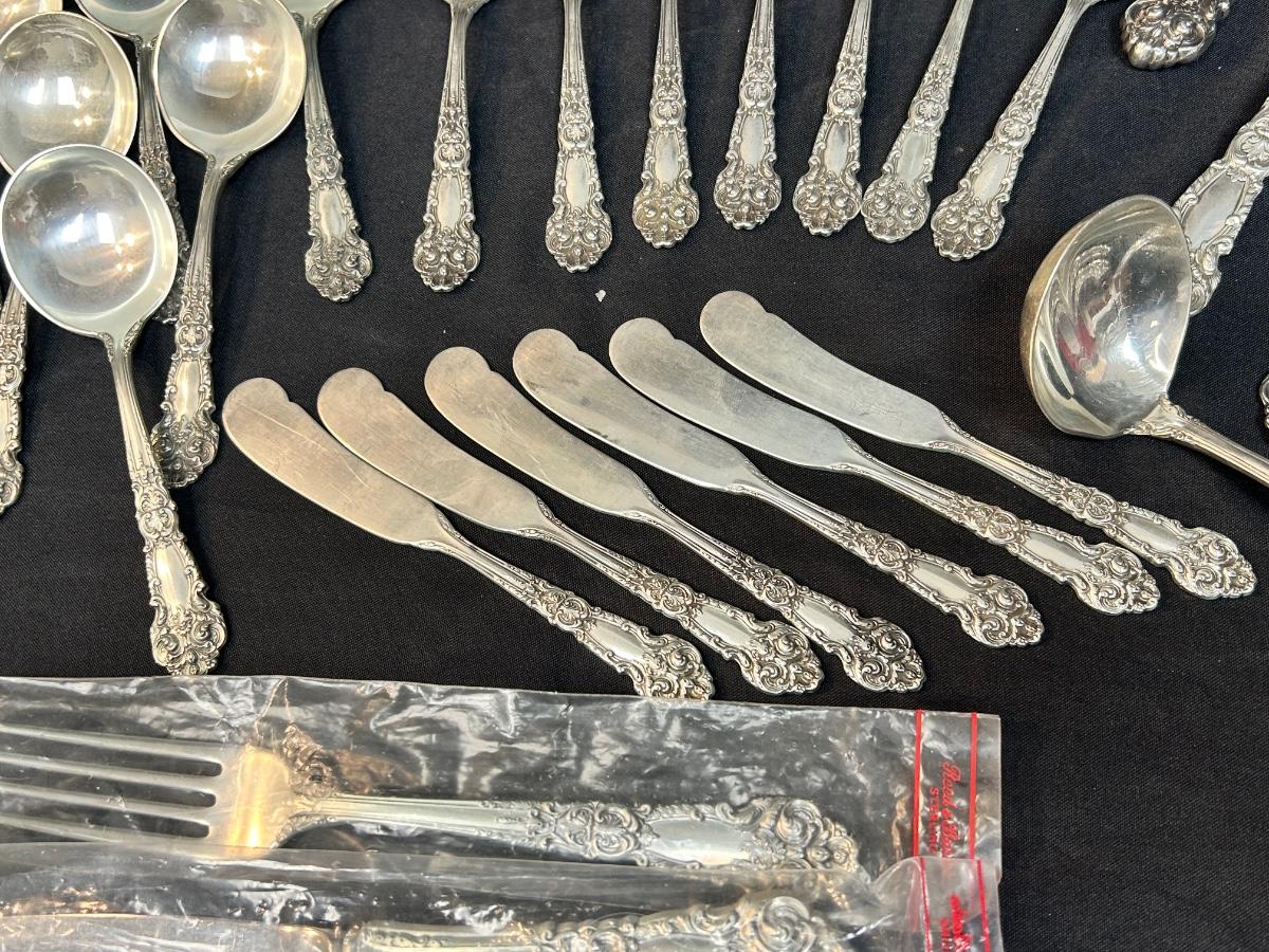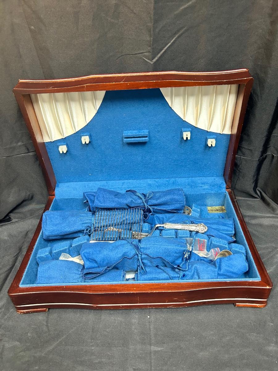 Vintage Reed & Barton French Renaissance Sterling Silver Flatware Set Service for 6 with Serving Pieces & Wood Storage Box