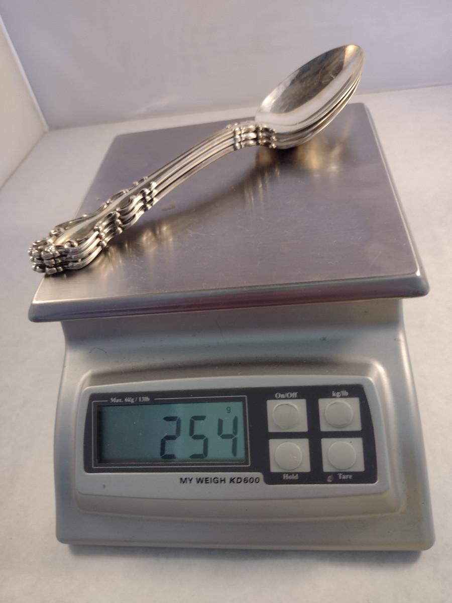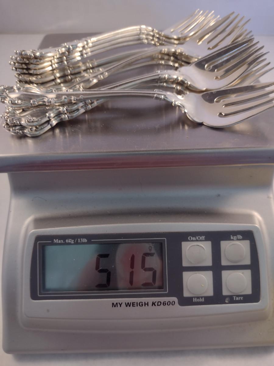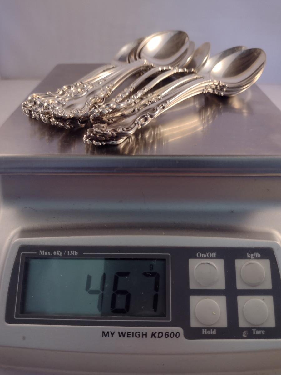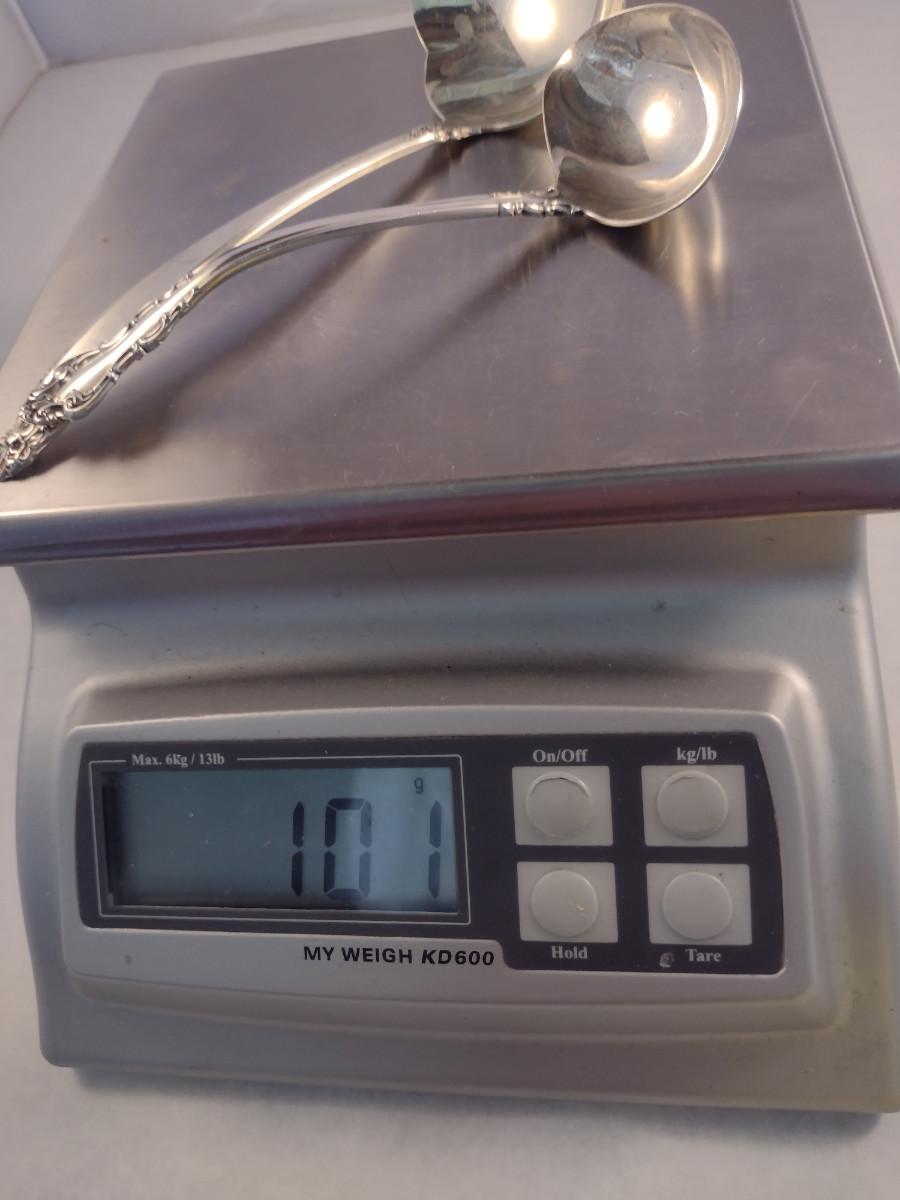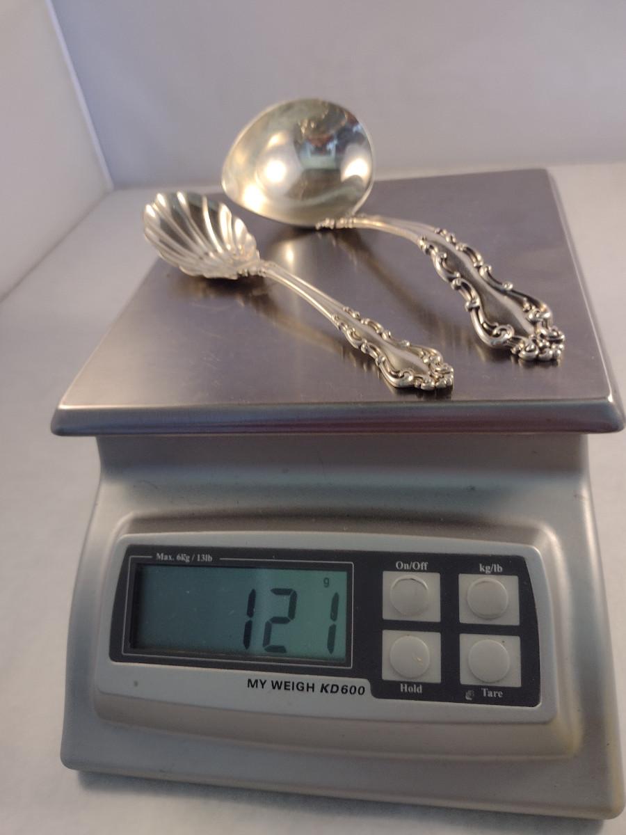 Vintage Reed & Barton Sterling Silver Flatware Set in Naken's Tarnish Proof Storage Chest. Approx 72 pieces: Dinner fork- 12, Salad fork- 12, Regular spoon- 12, Large spoon- 2, Dinner knife- 12, Short butter knife- 12, Ladle- 3 (one is not part of the set, but still sterling silver), Serving spoon- 3, Serving fork- 1, Seafood fork- 1, Sugar shell spoon- 1, Fish knife- 1. Total approx weight (not including knives)= 2,442 grams.