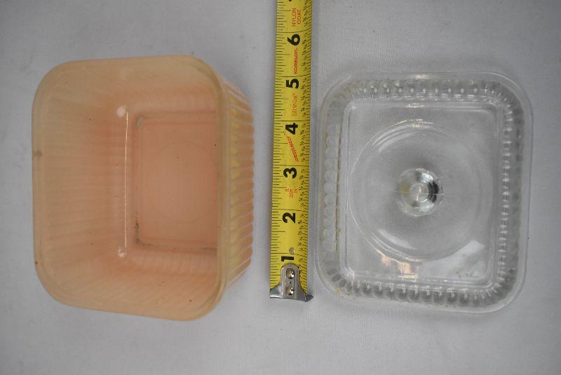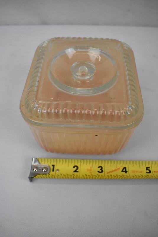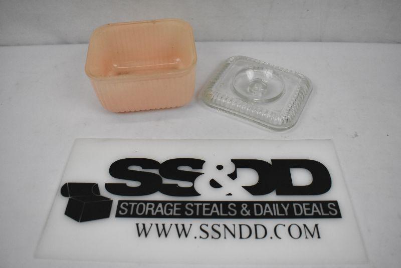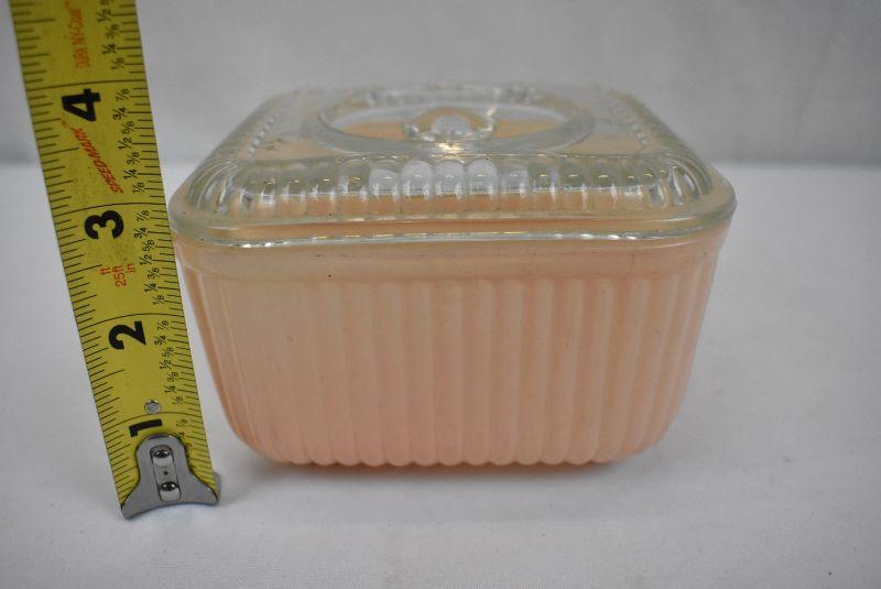Vintage "Refrigerator Dish" 1940s Peach/Pink Color with Clear Lid