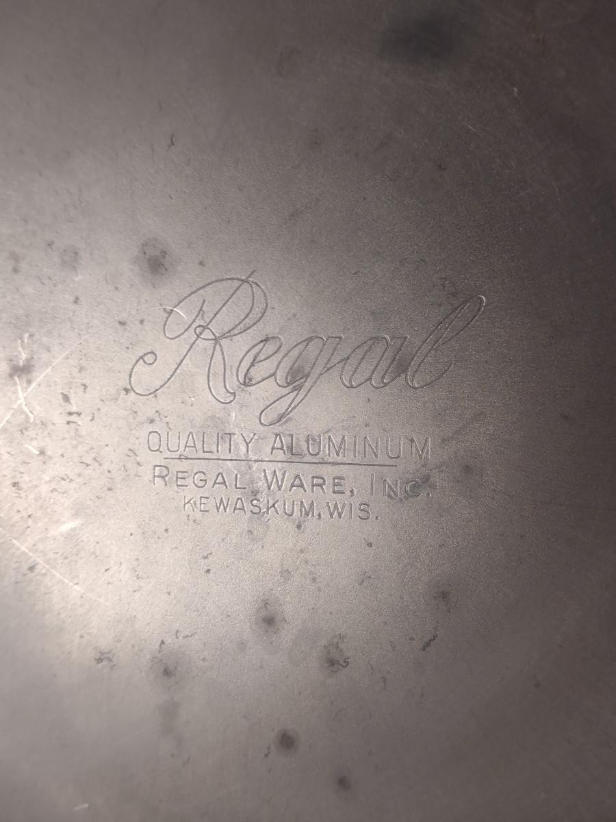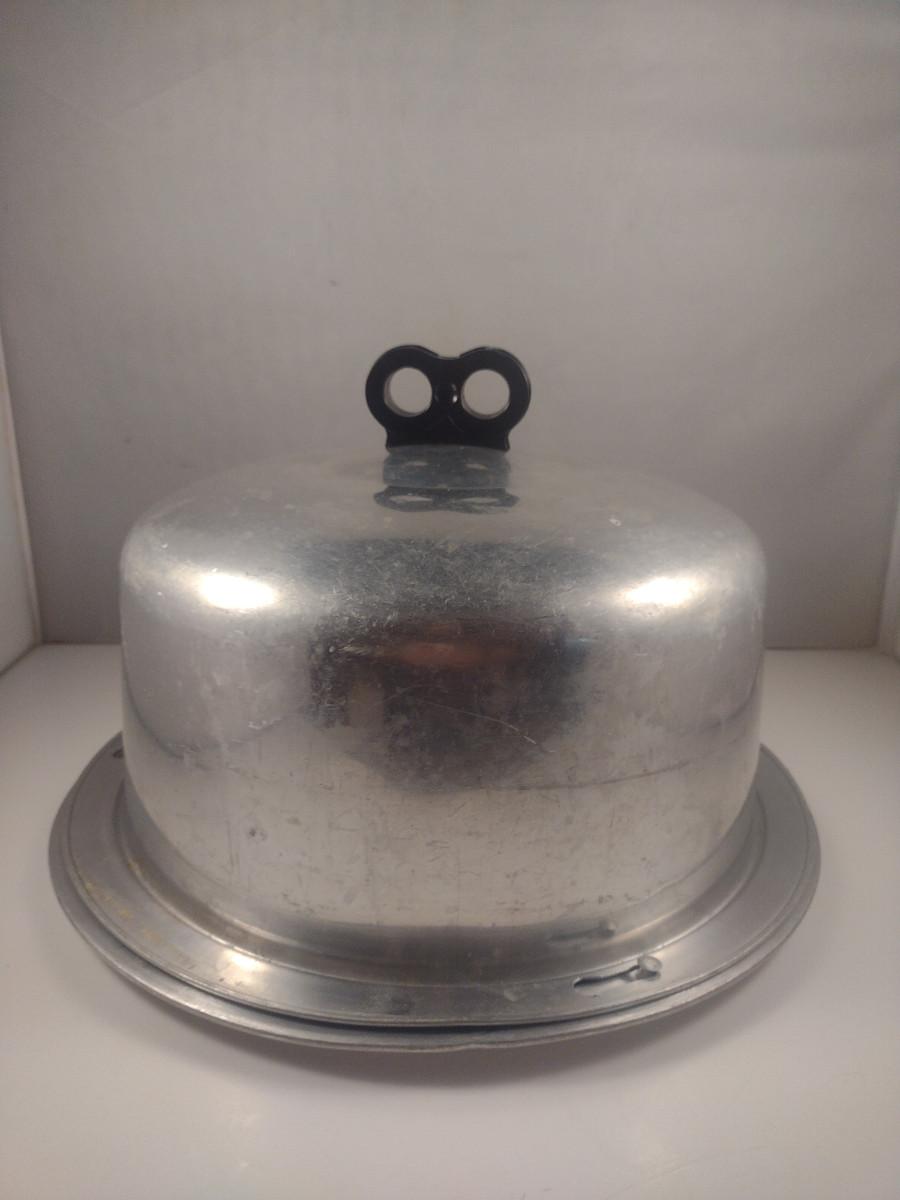 Vintage Regal Aluminum Covered Cake Plate. Item is in used condition and may have signs of wear/denting.