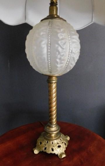 Vintage Regency Brass Post Opaque Glass Globe Lamp