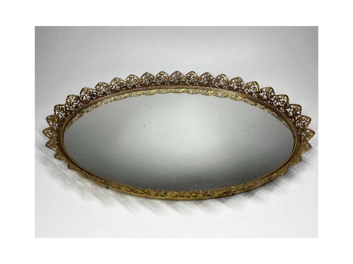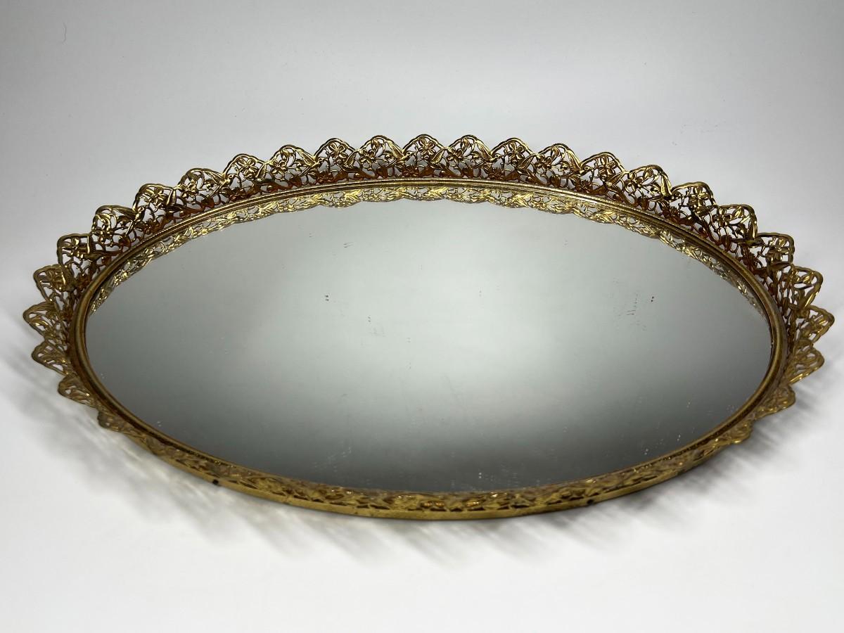 Vintage Regency Oval Wall Mirror Dresser Tray. In good used condition. About 16" size.