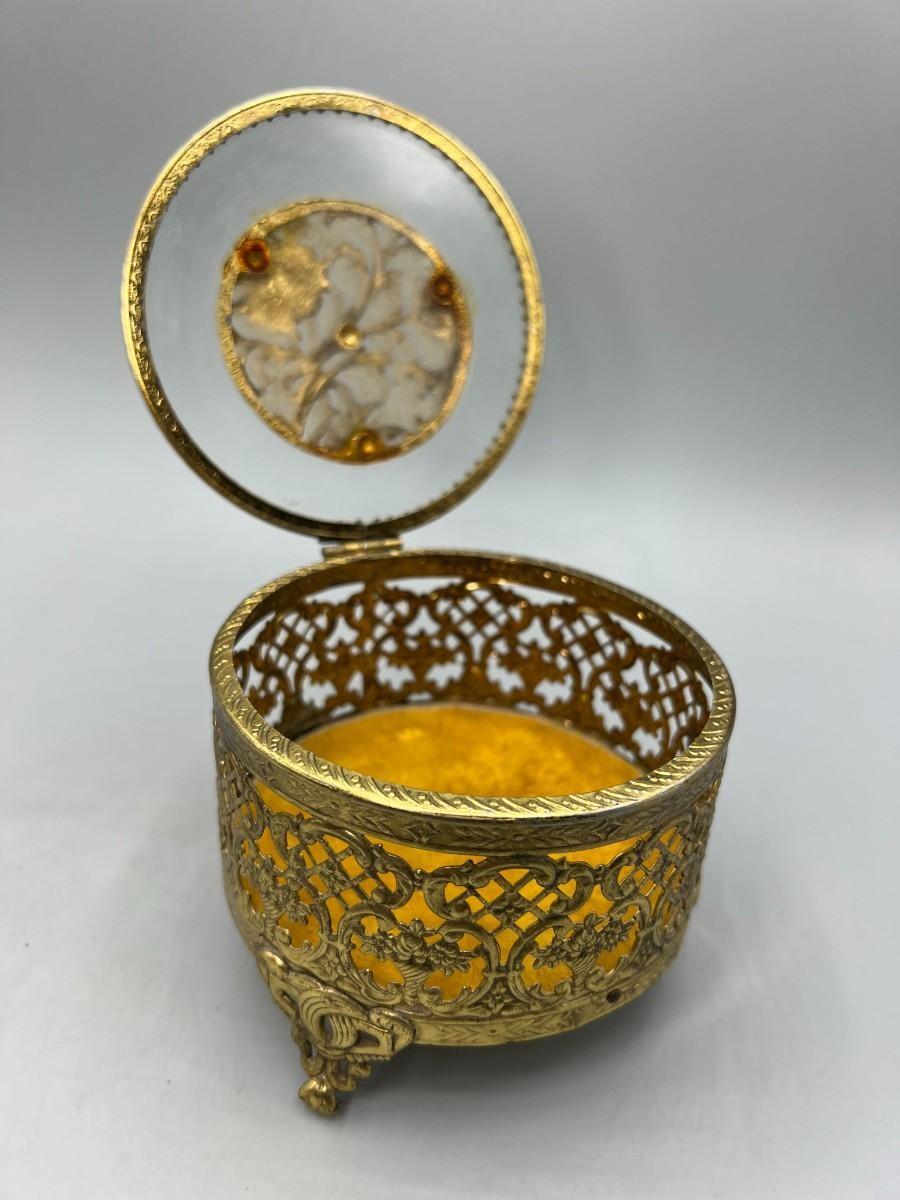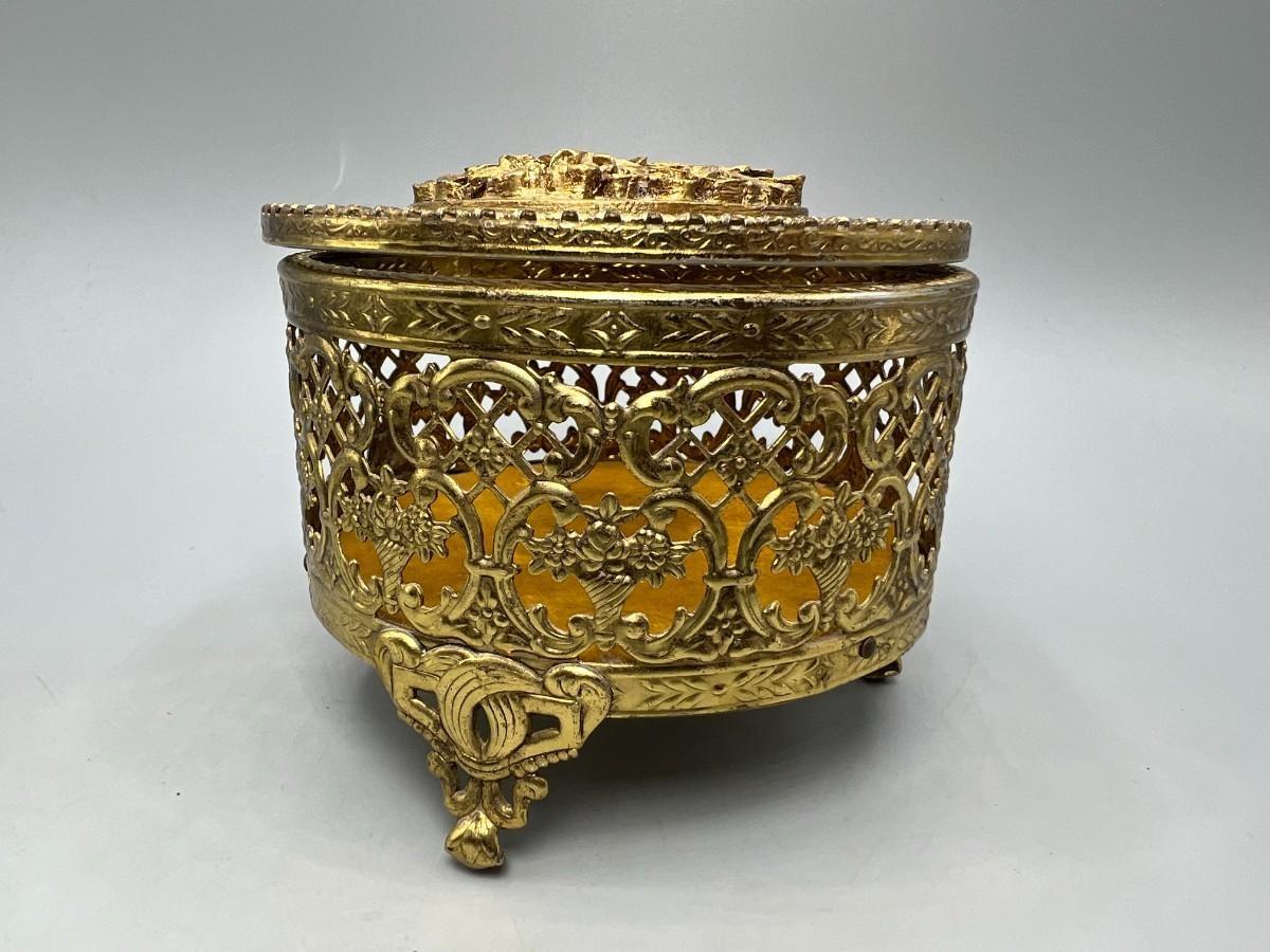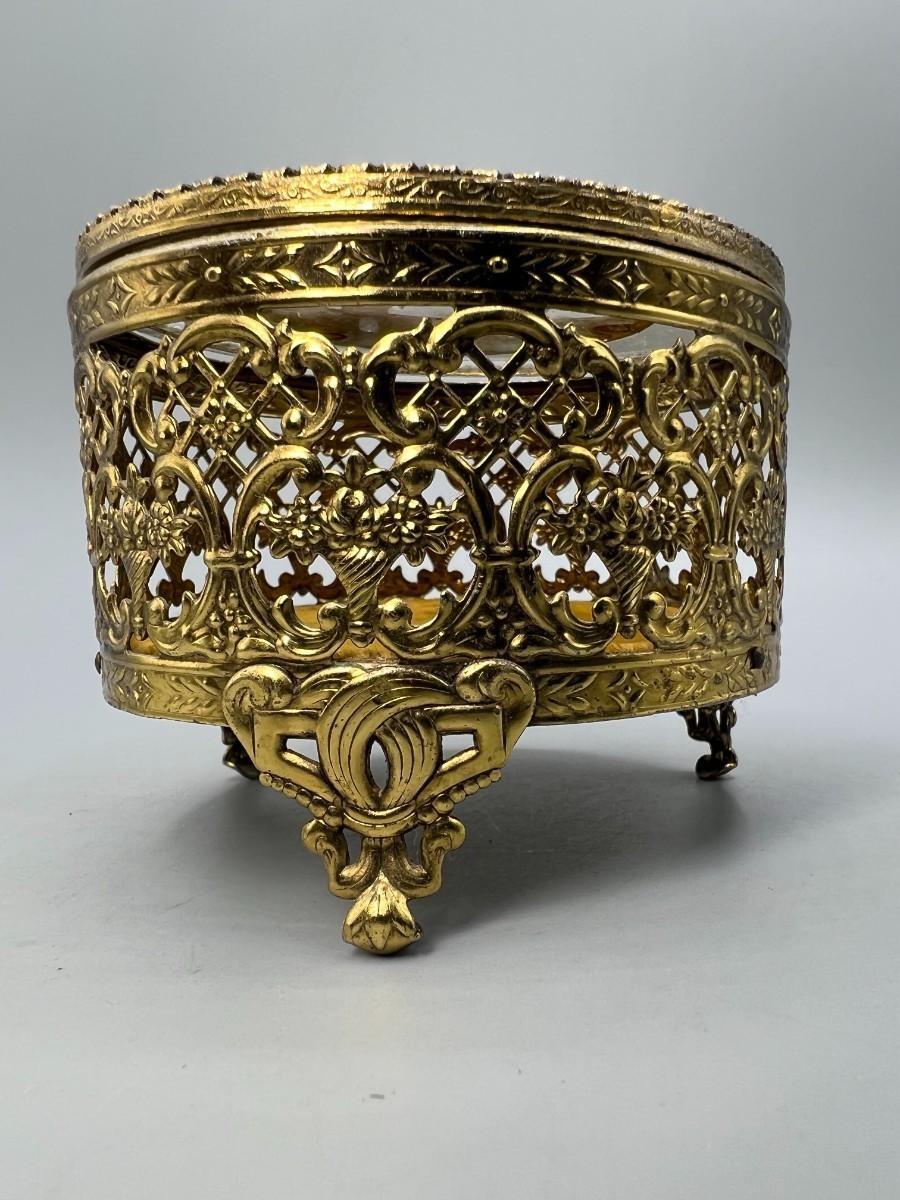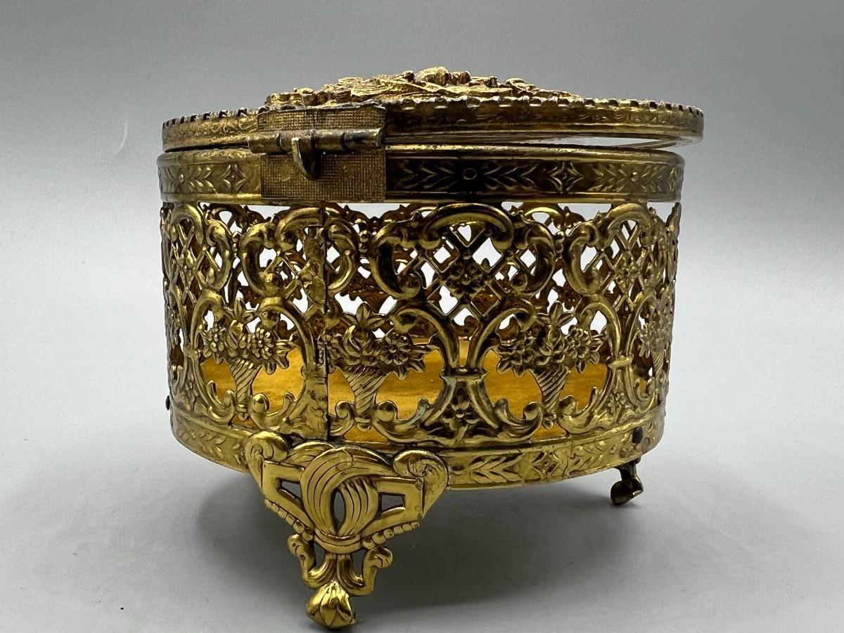 Vintage Regency Style Glass Gold Tone Jewelry Casket Trinket Box Ormolu