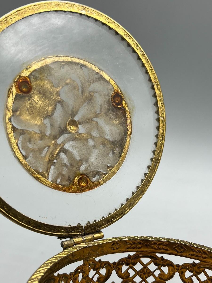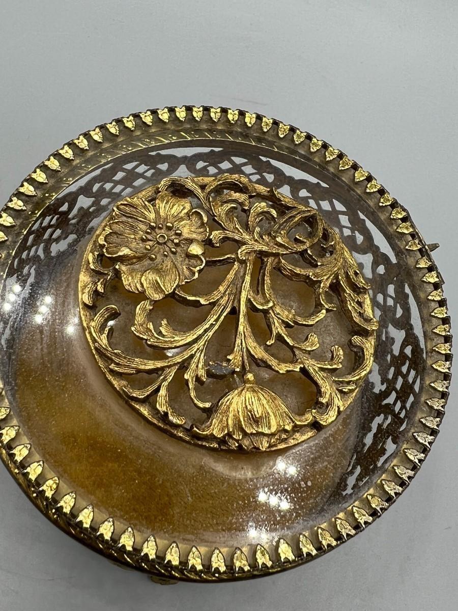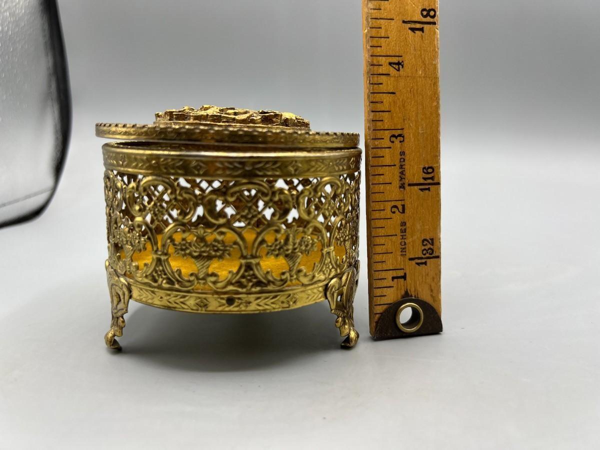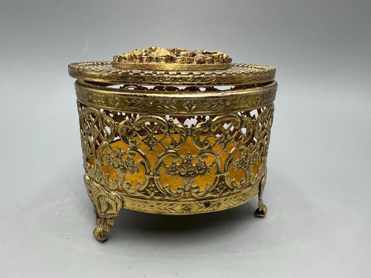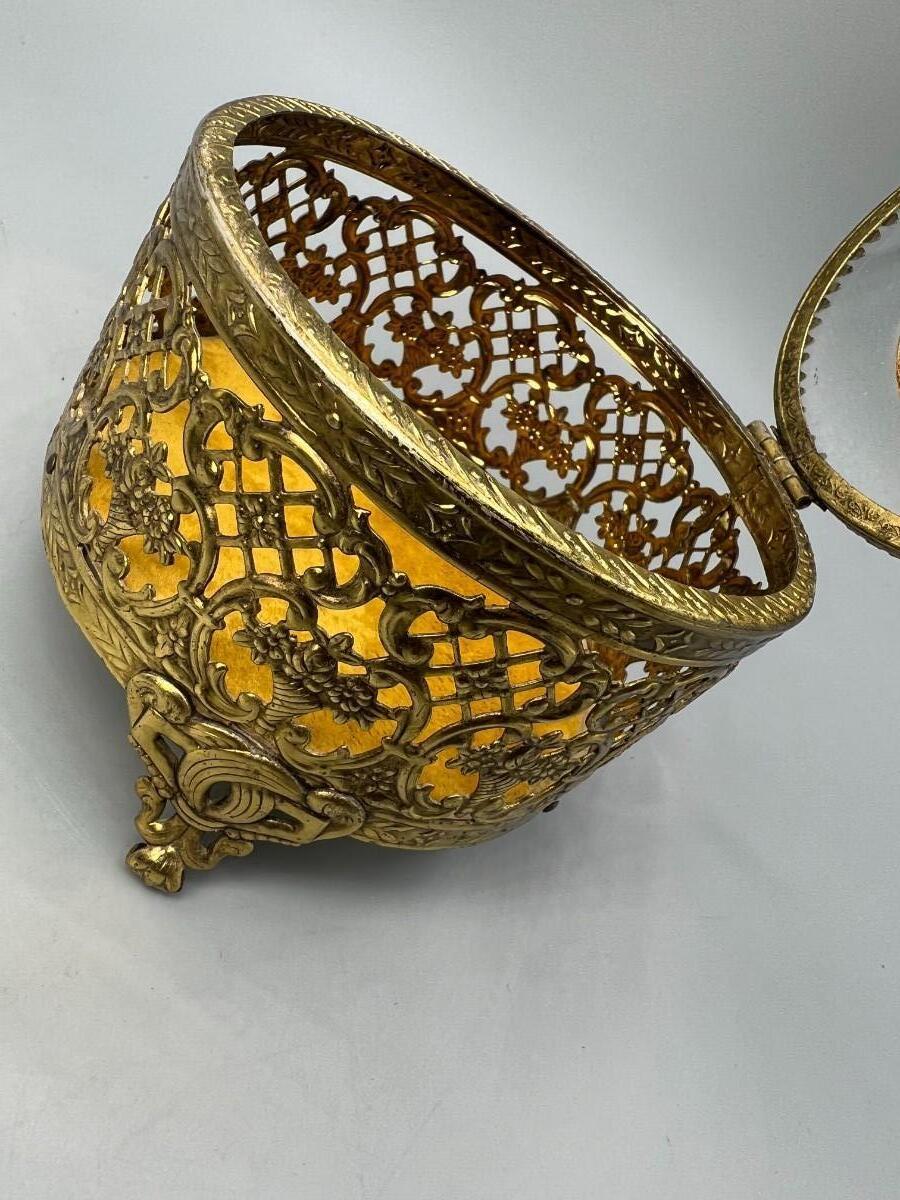 Vintage Regency Style Glass Gold Tone Jewelry Casket Trinket Box Ormolu