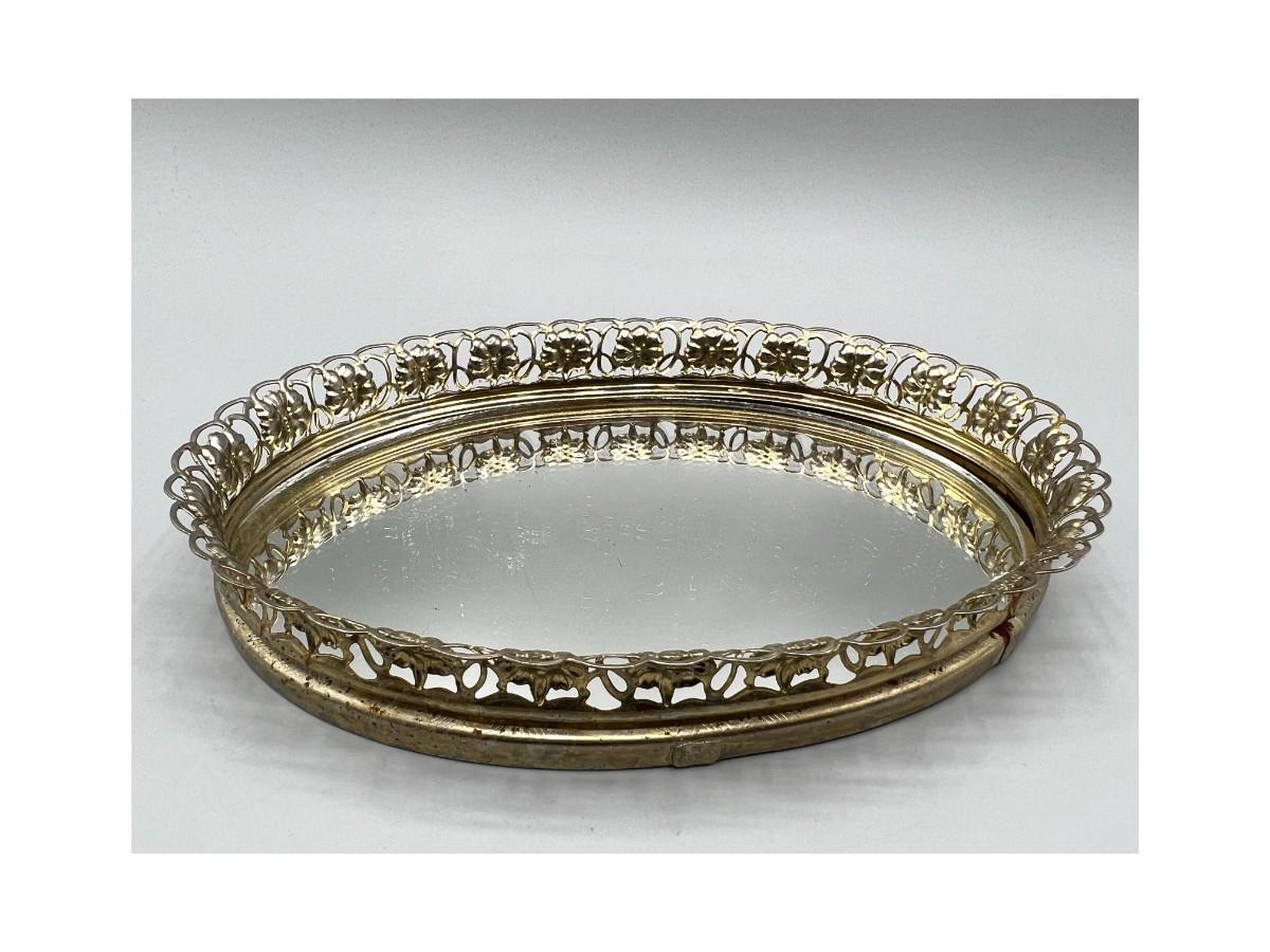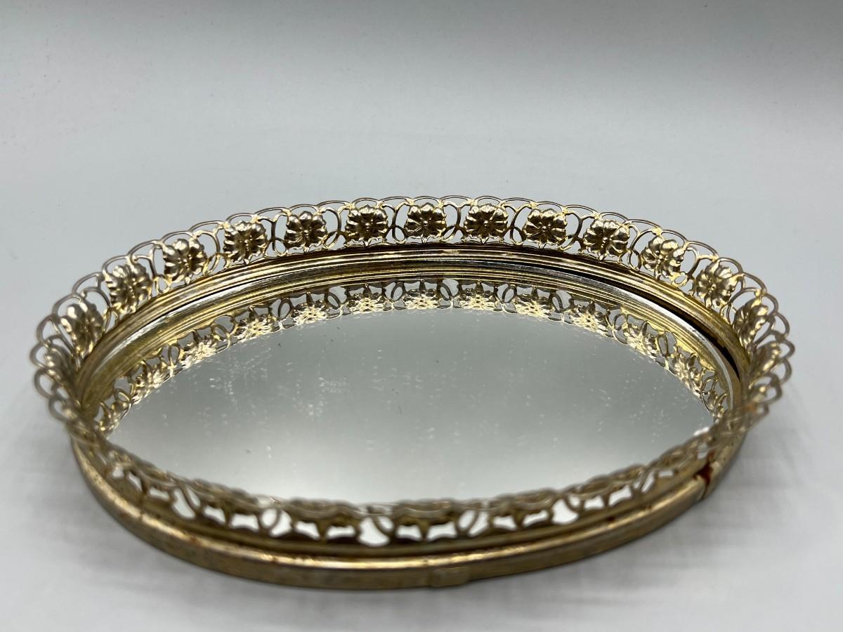 Vintage Regency Style Oval Dresser Mirror Tray