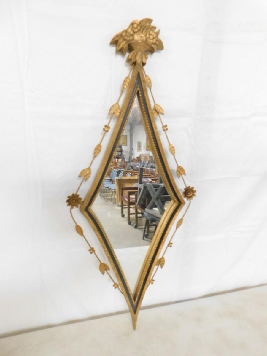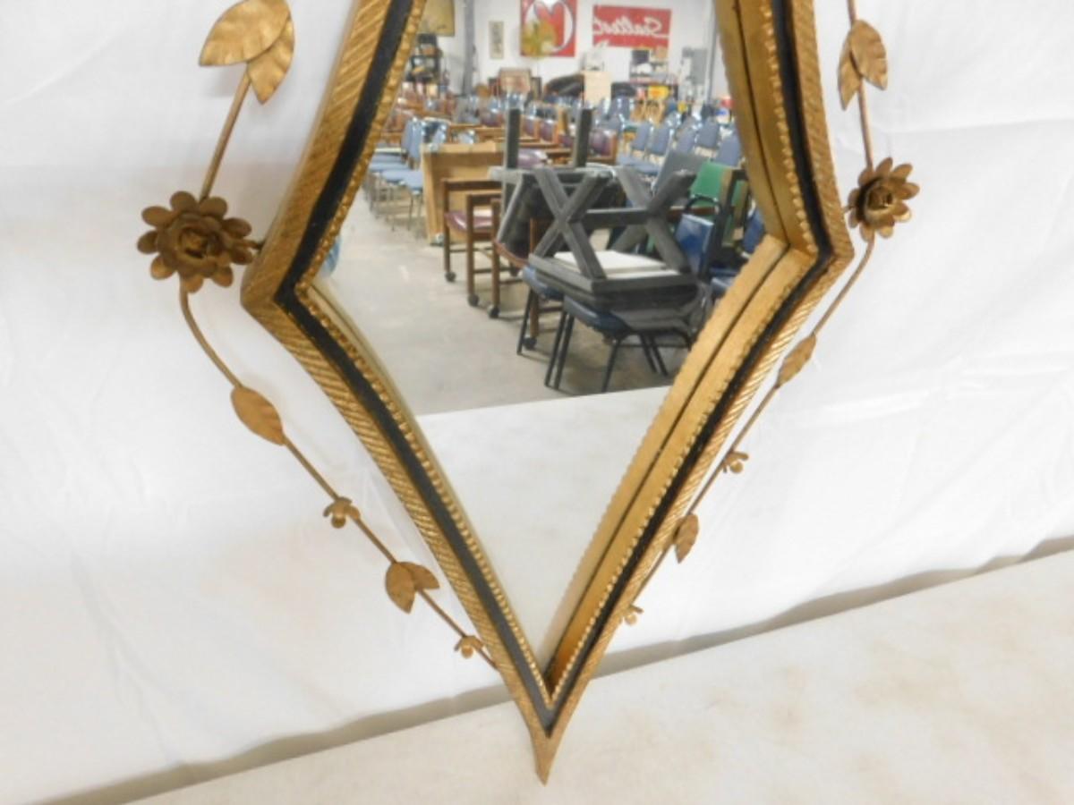 Vintage Regency Wood Gilt Frame Mirror with Metal Leaf Accents Choice B bottom corner has some wear as shown
