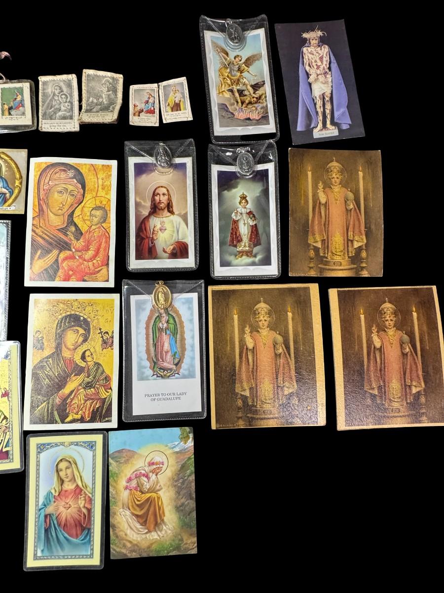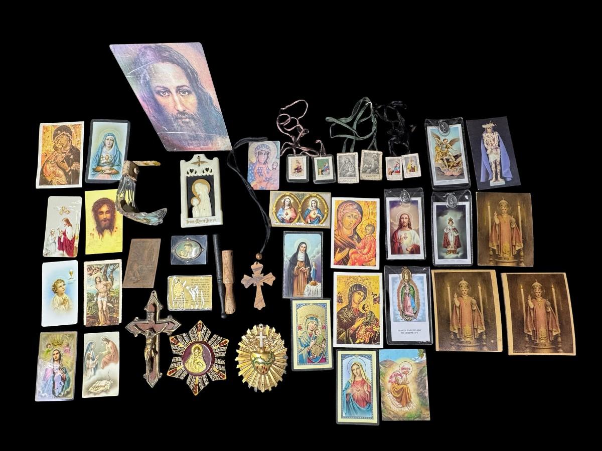 Includes prayer cards, wall plaques, a crucifix, and more. Total of 35+ pieces. [BK]