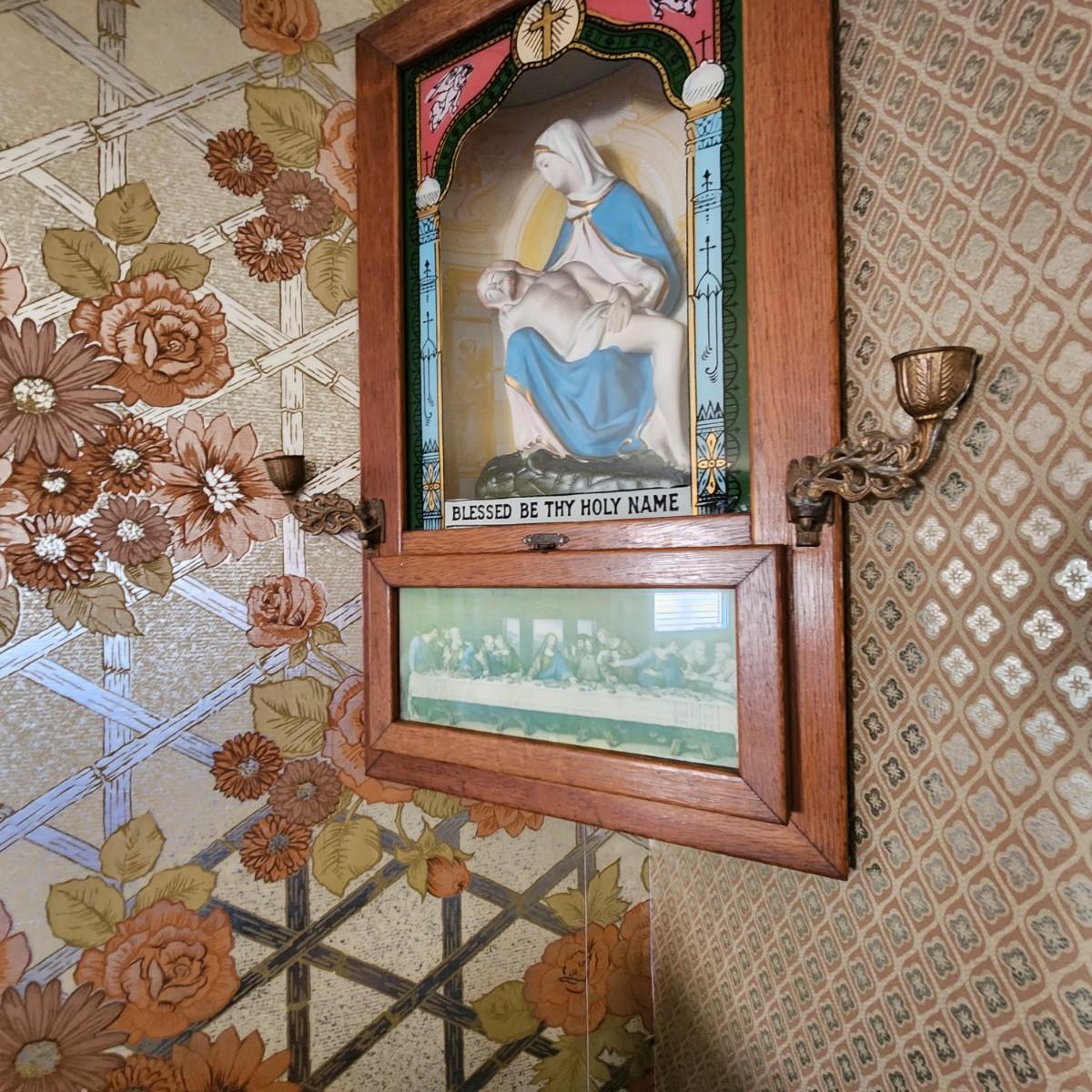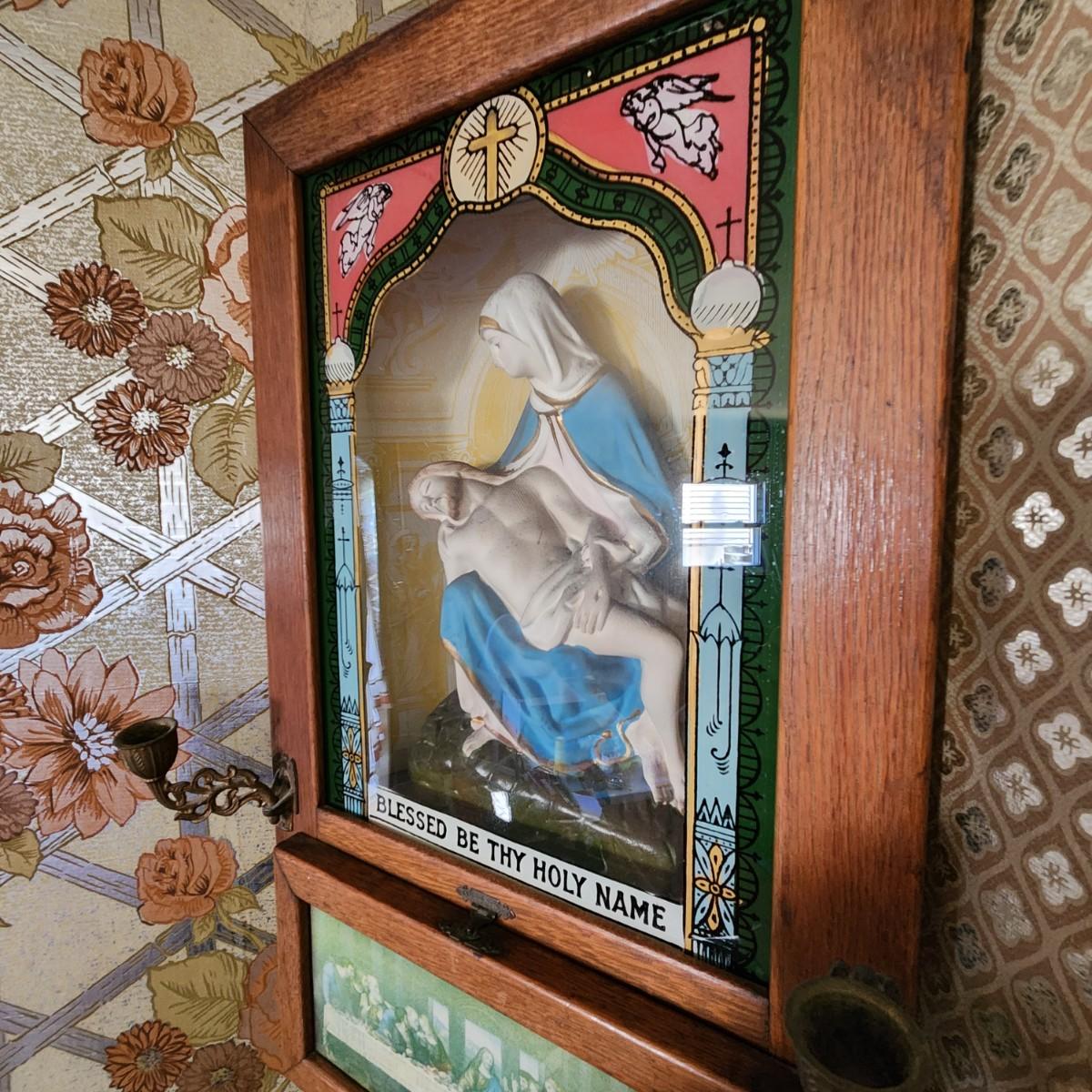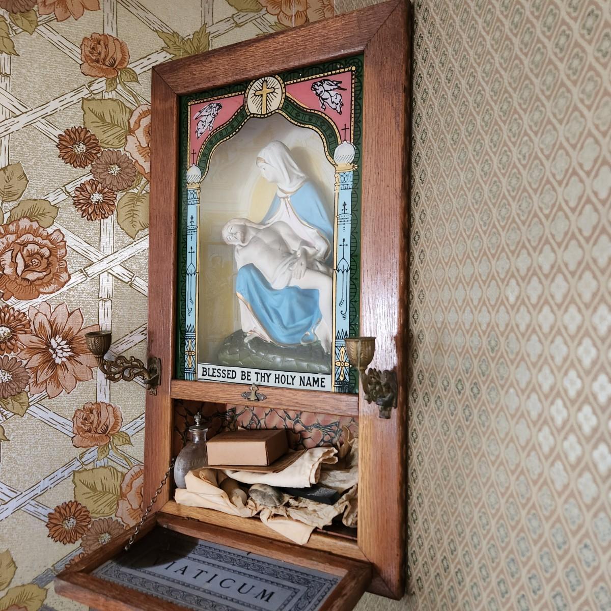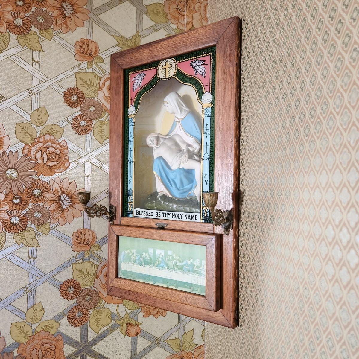 Vintage Religious Last Rites Cabinet Home Altar Chalkware Shadow box