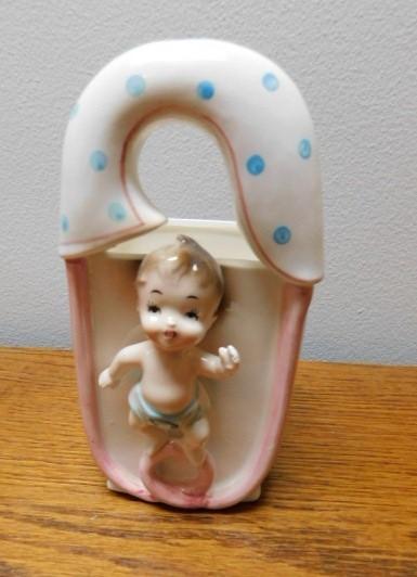 Vintage Relpo Samson Import 1959 Ceramic Baby and Diaper Pin Planter 6"