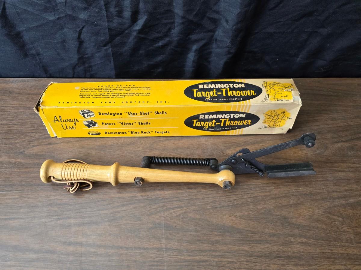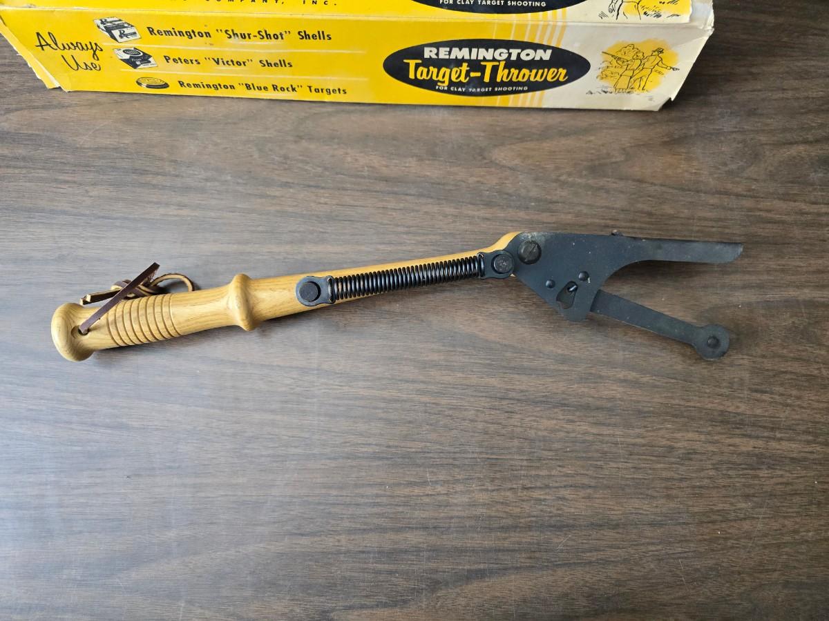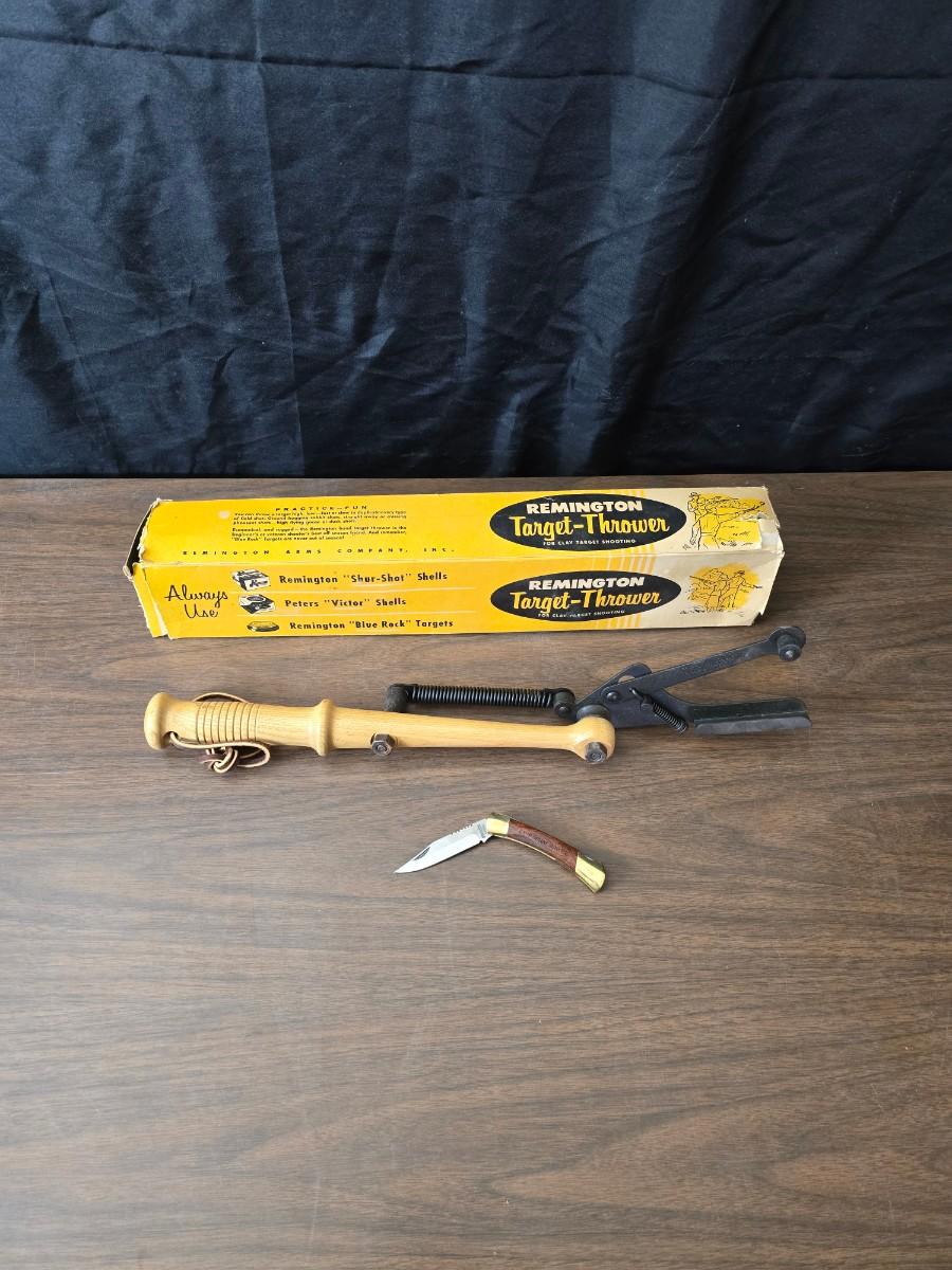 Vintage Remington target thrower for clay shooting and a pocket knife