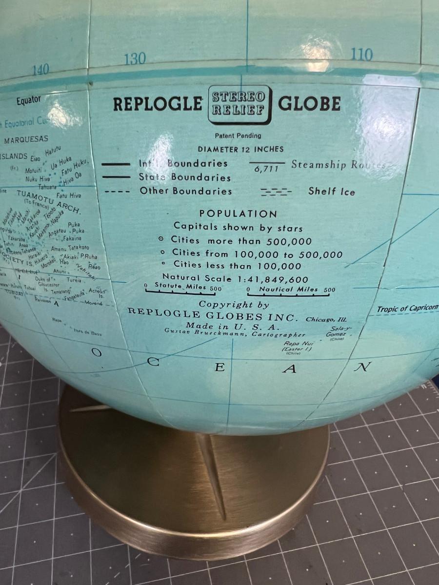 Vintage Replogle Globe "Stereo Relief" 12" Diameter