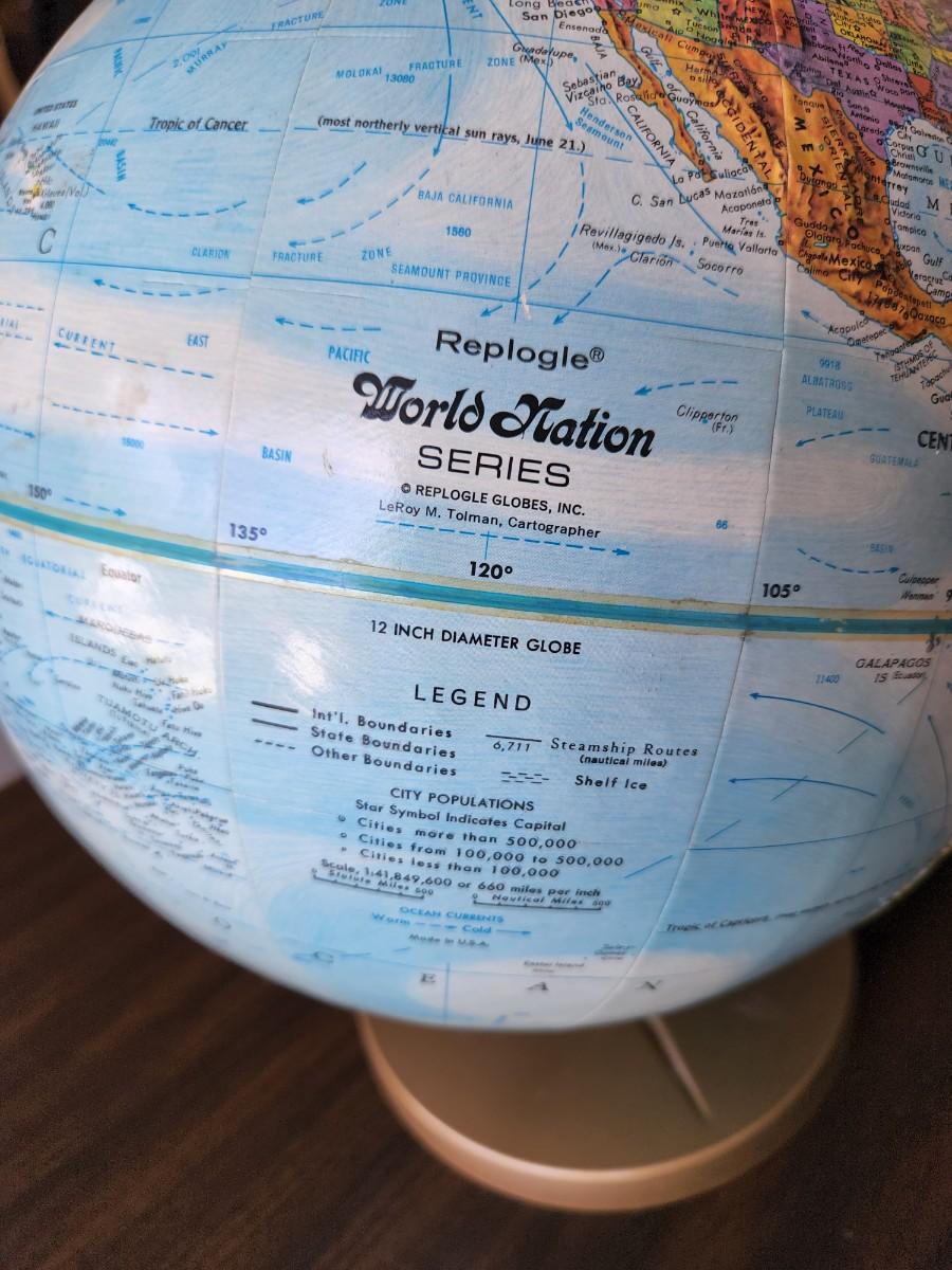 Vintage Replogle World Nation Series Globe 12"  Raised Map