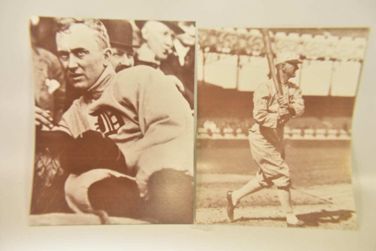 A pair of reprinted photos of Ty Cobb and Shoeless Joe Jackson