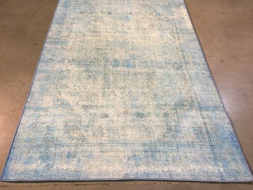 5 Feet 3 Inches X 7 Feet 6 Inches Decorative and Trendy Vintage distress Reproduction Design Brand Name Rug, in Light Blue, Ivory and silver Colors. Made of Durable and easy to care.Polypropylene Pile, Power Loomed in Egypt.
