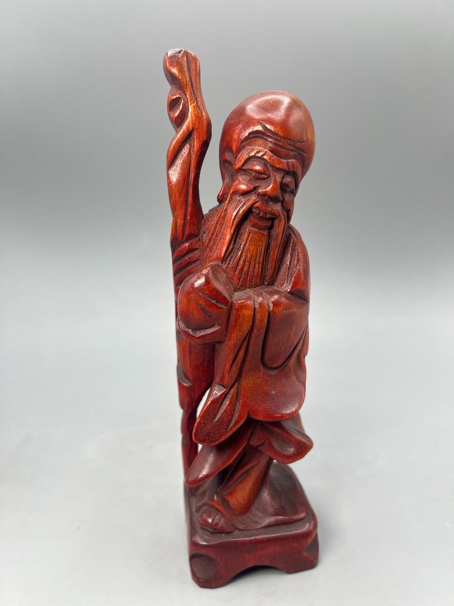 Vintage Republic of China Carved Elder Figurine Wood Statue