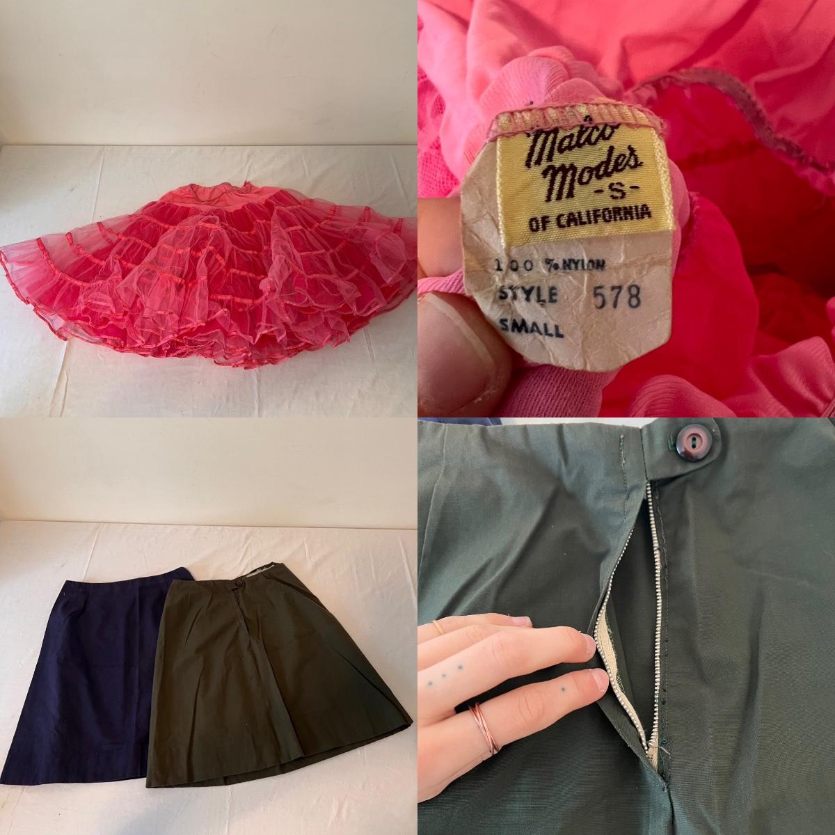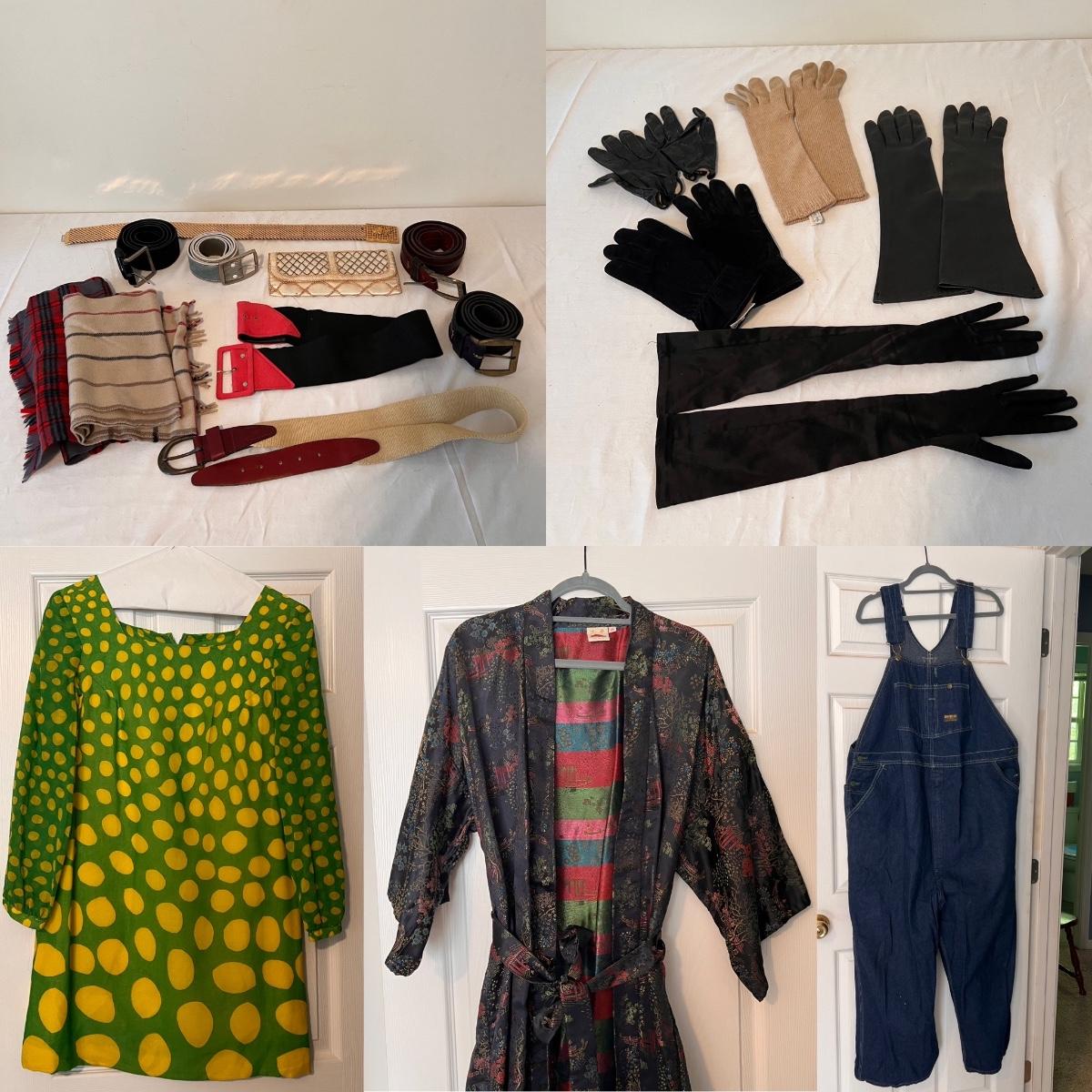 Lot includes several of awesome vintage items in various sizes. There’s a pair of Oshkosh Denim Overalls, size 50/0. There are several vintage dresses, seven belts, five pairs of gloves, a few shorts and skirts, and a few pieces of intimate wear. All in great condition, except for one skirt that has a broken zipper - see picture included. The sizes of all items range from small to 2XL. Shipping available.