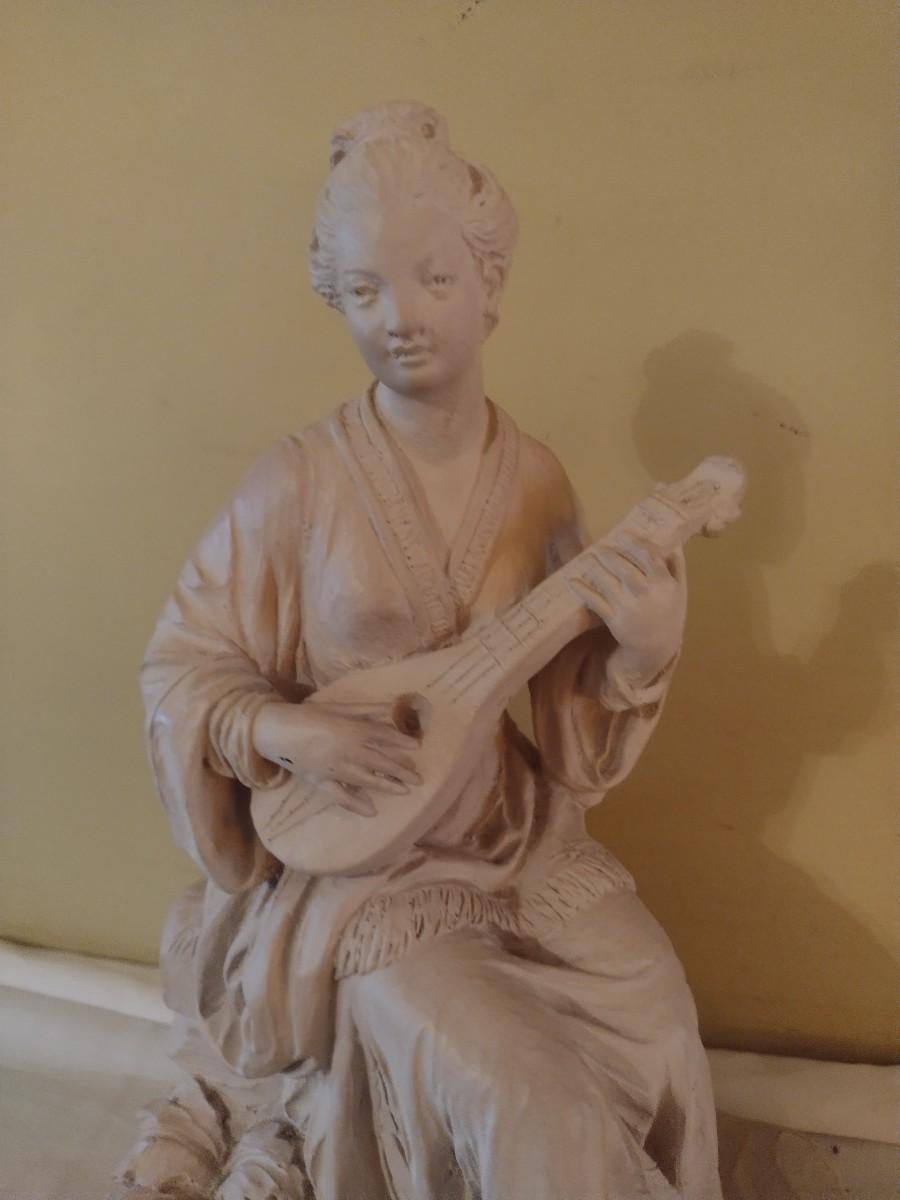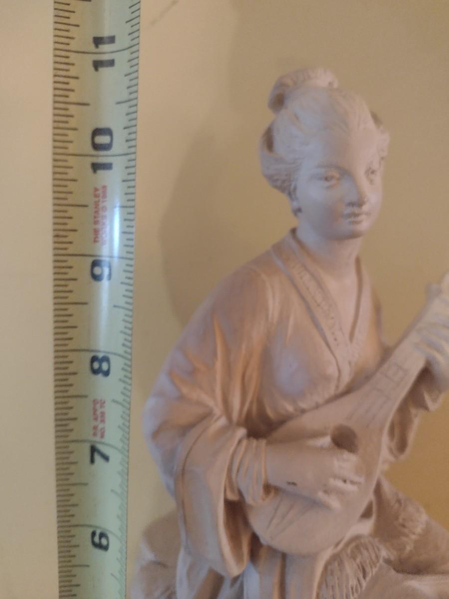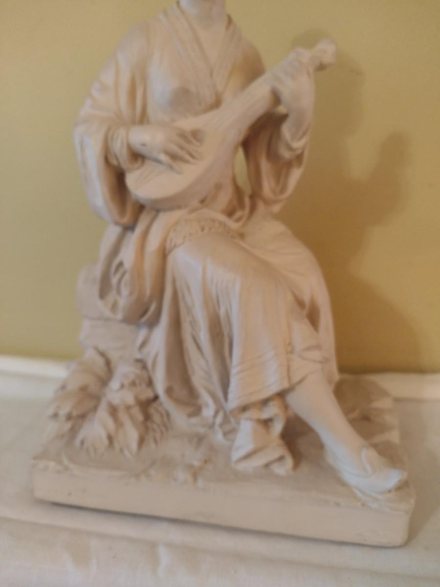 Vintage Resin Chalkware Asian Woman Playing Instrument Statuette