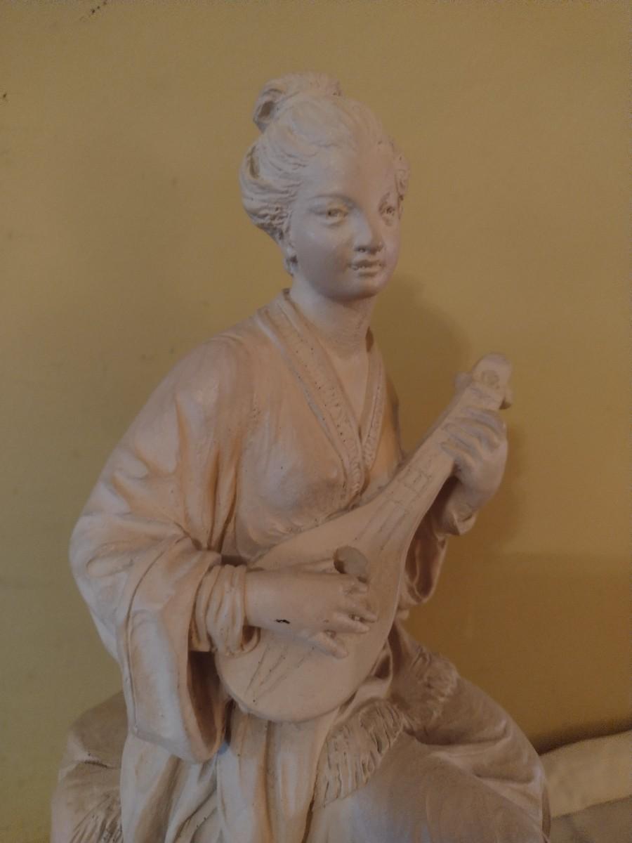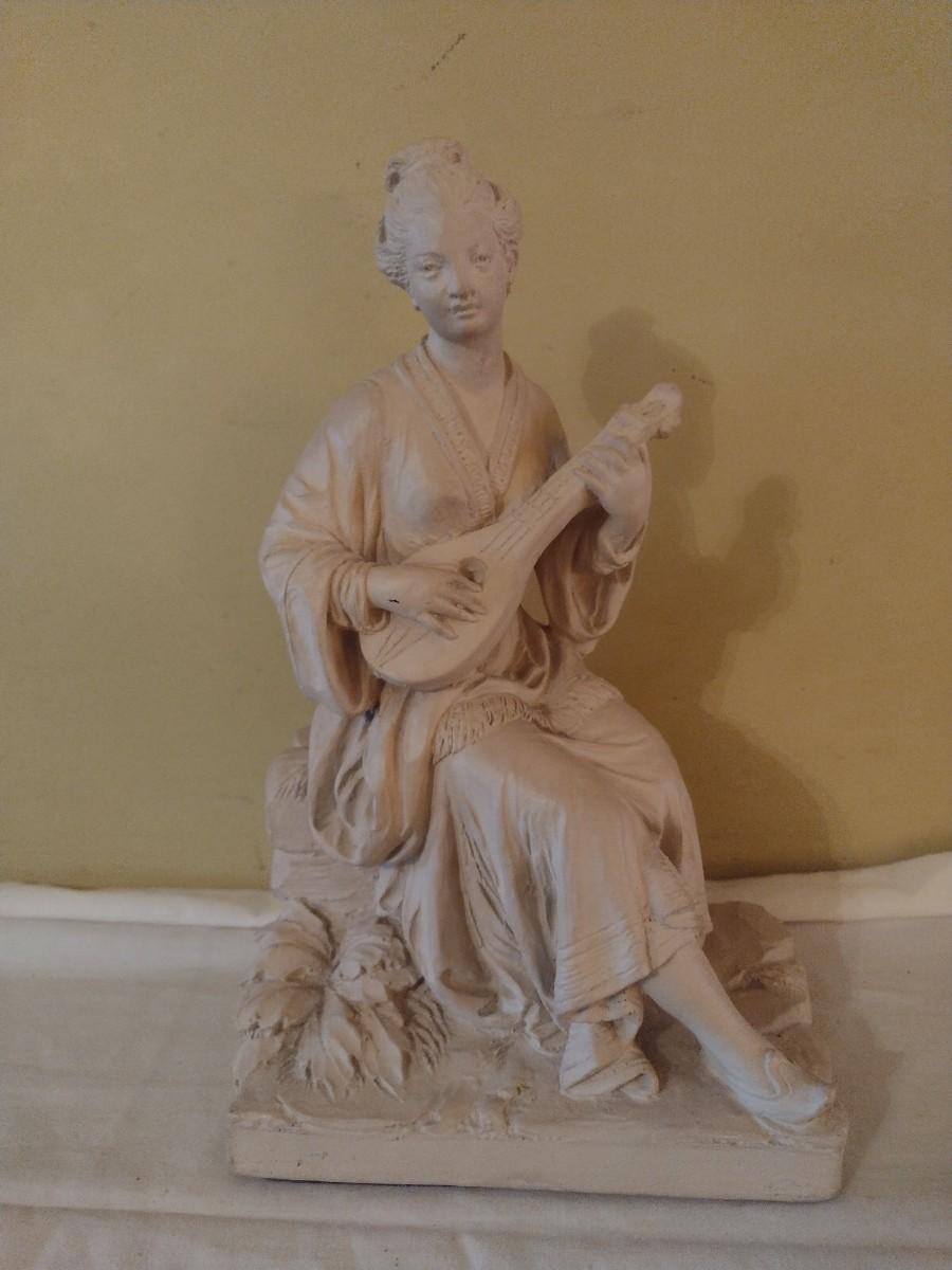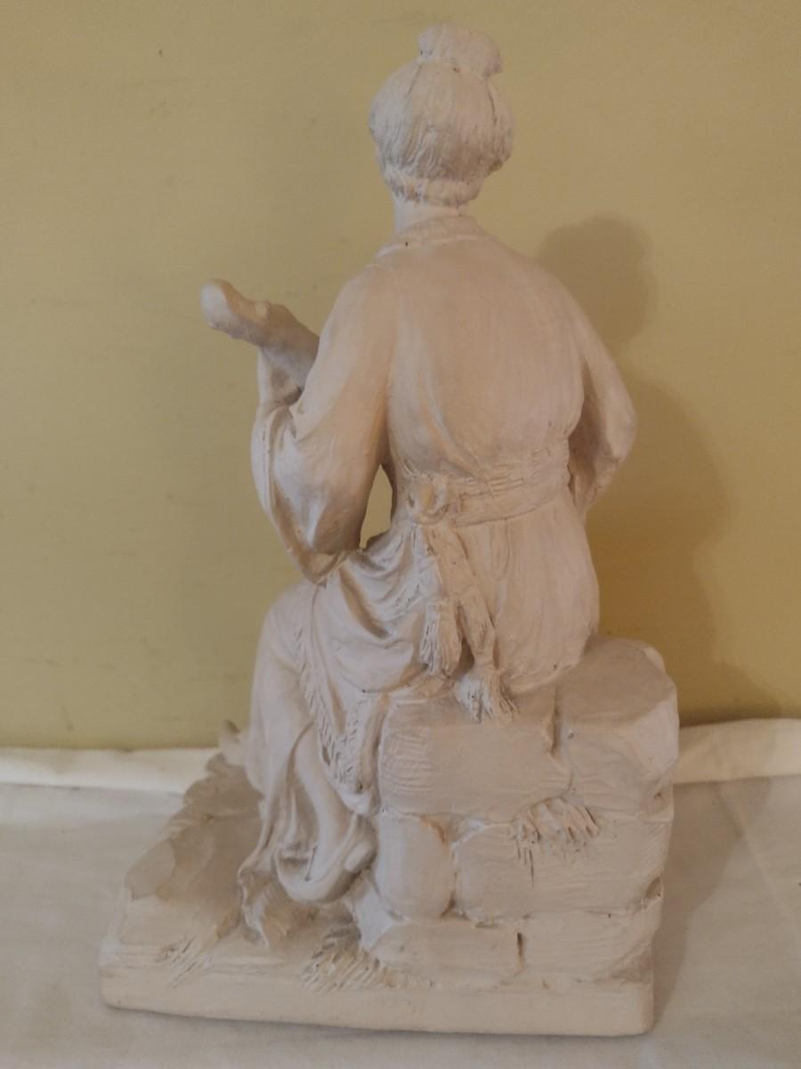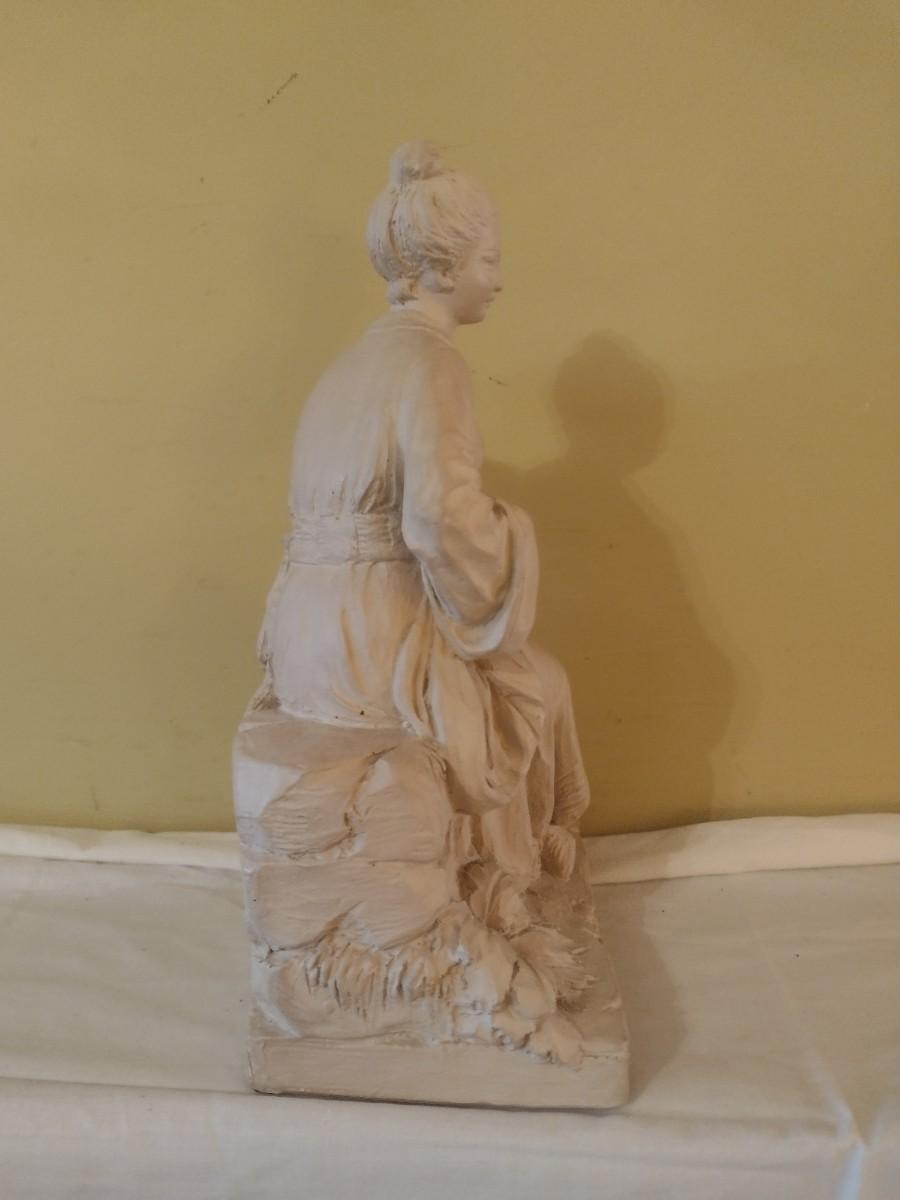 Vintage Resin Chalkware Asian Woman Playing Instrument Statuette