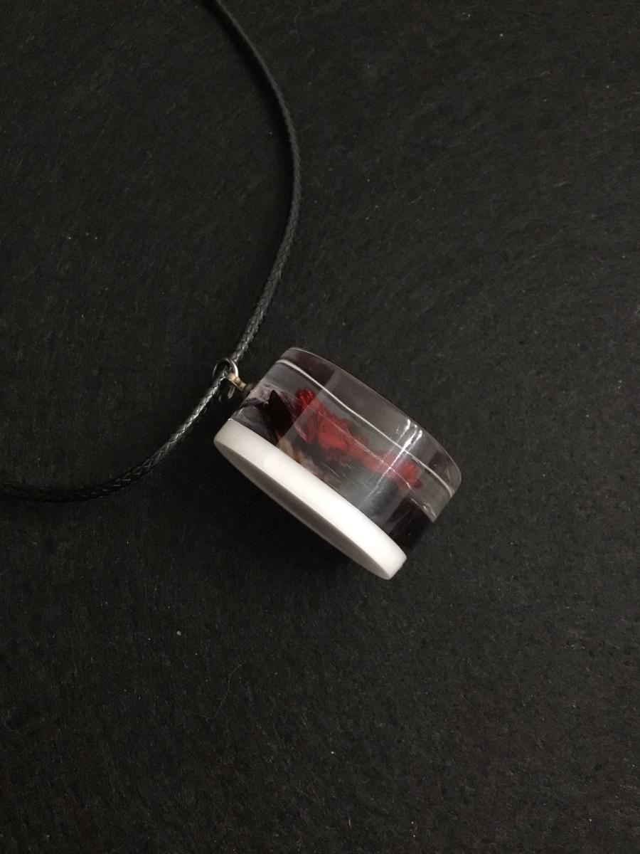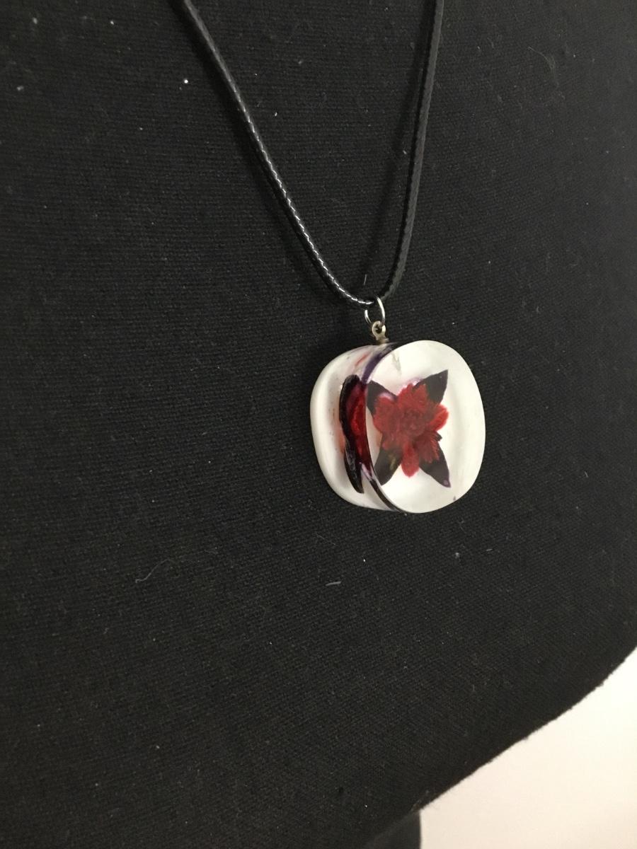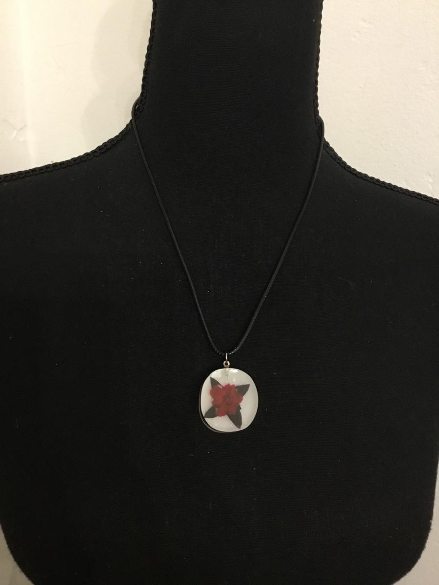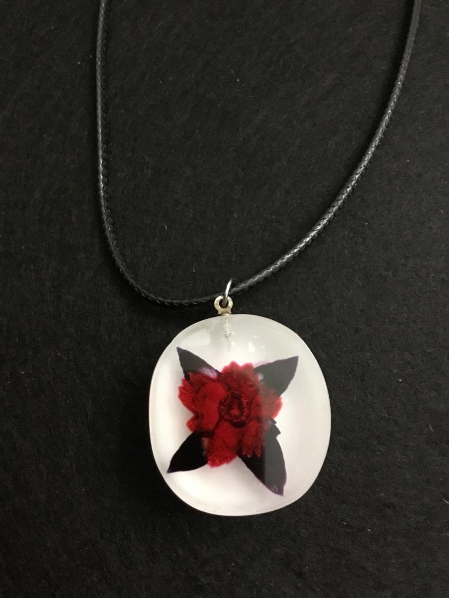 Vintage resin, flower pendant flower is encased in resin faux leather necklace