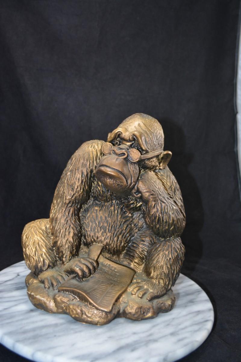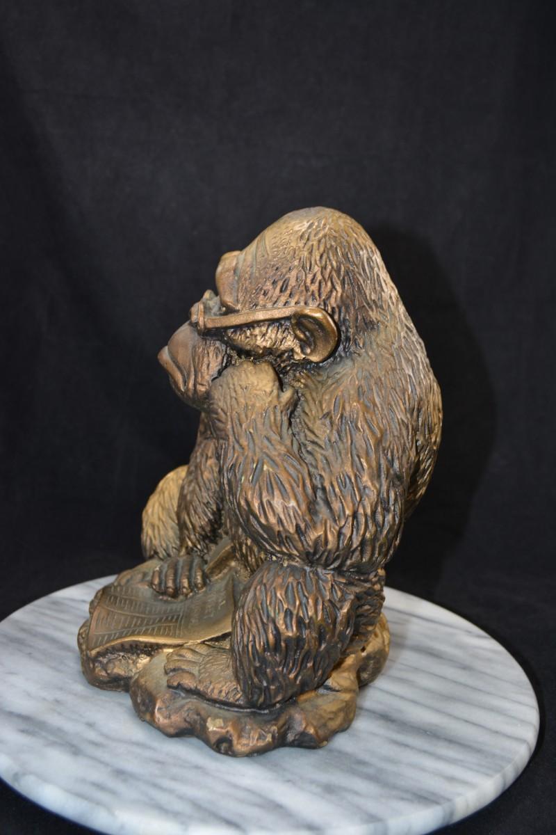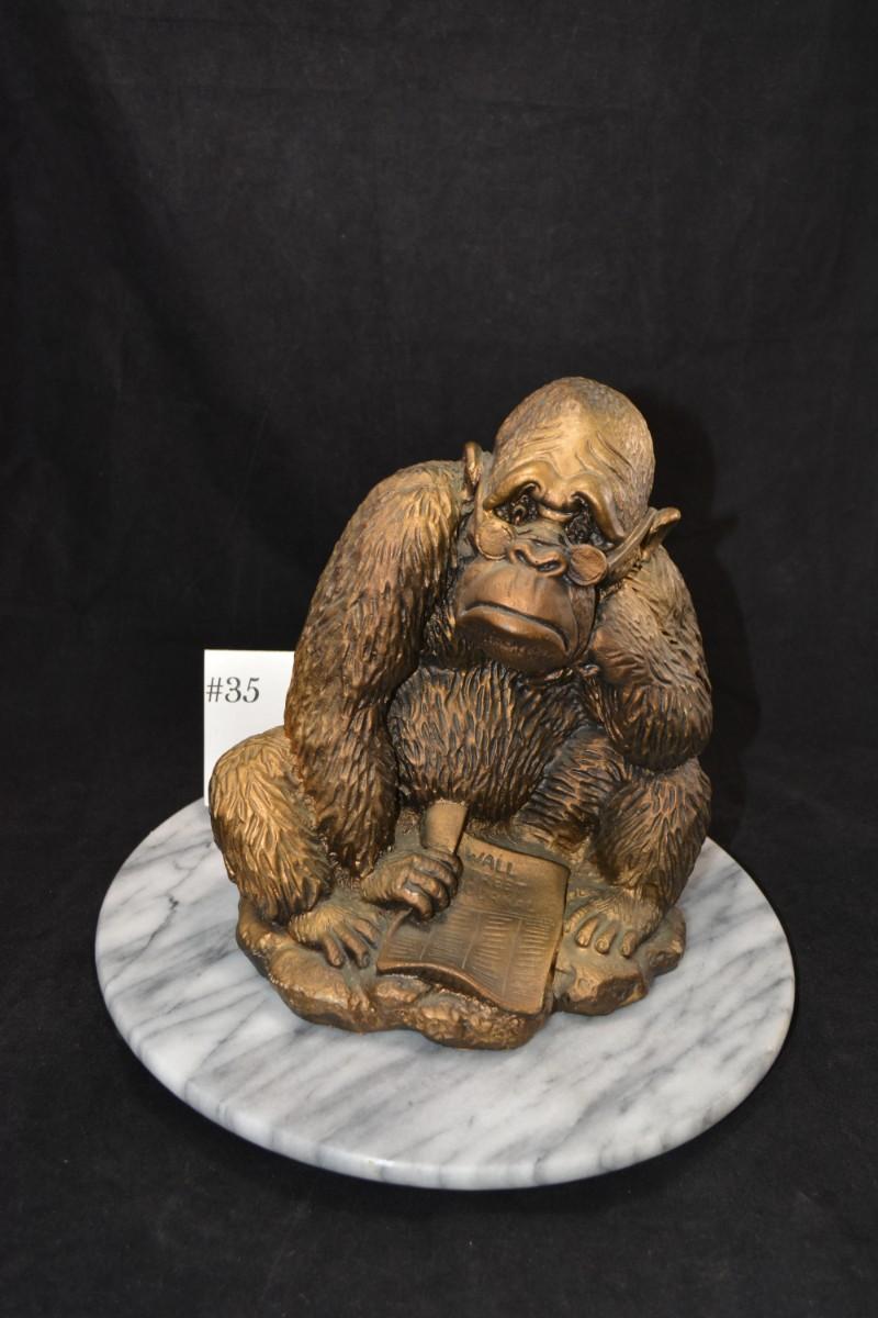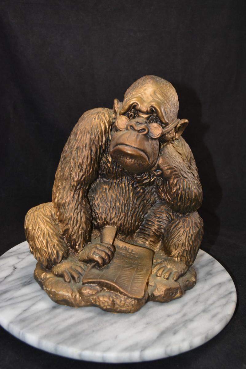 Vintage Resin Gorilla Reading The Wall Street Journal 9.75”