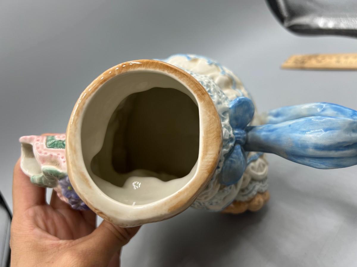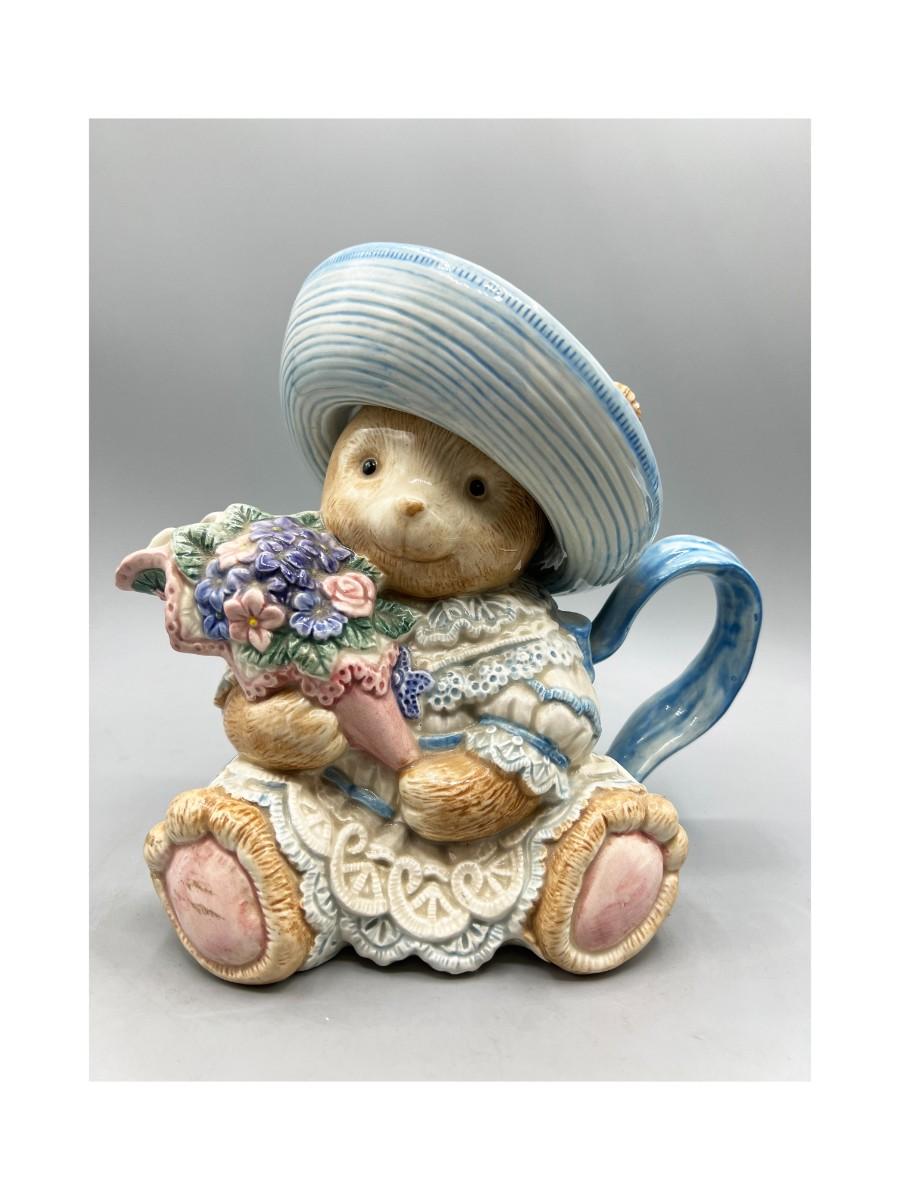 Fitz and Floyd  Teapot Novelty Teddy Bear in Dress Vintage Retired Shabby Chic Cottagecore