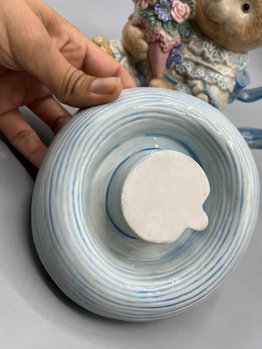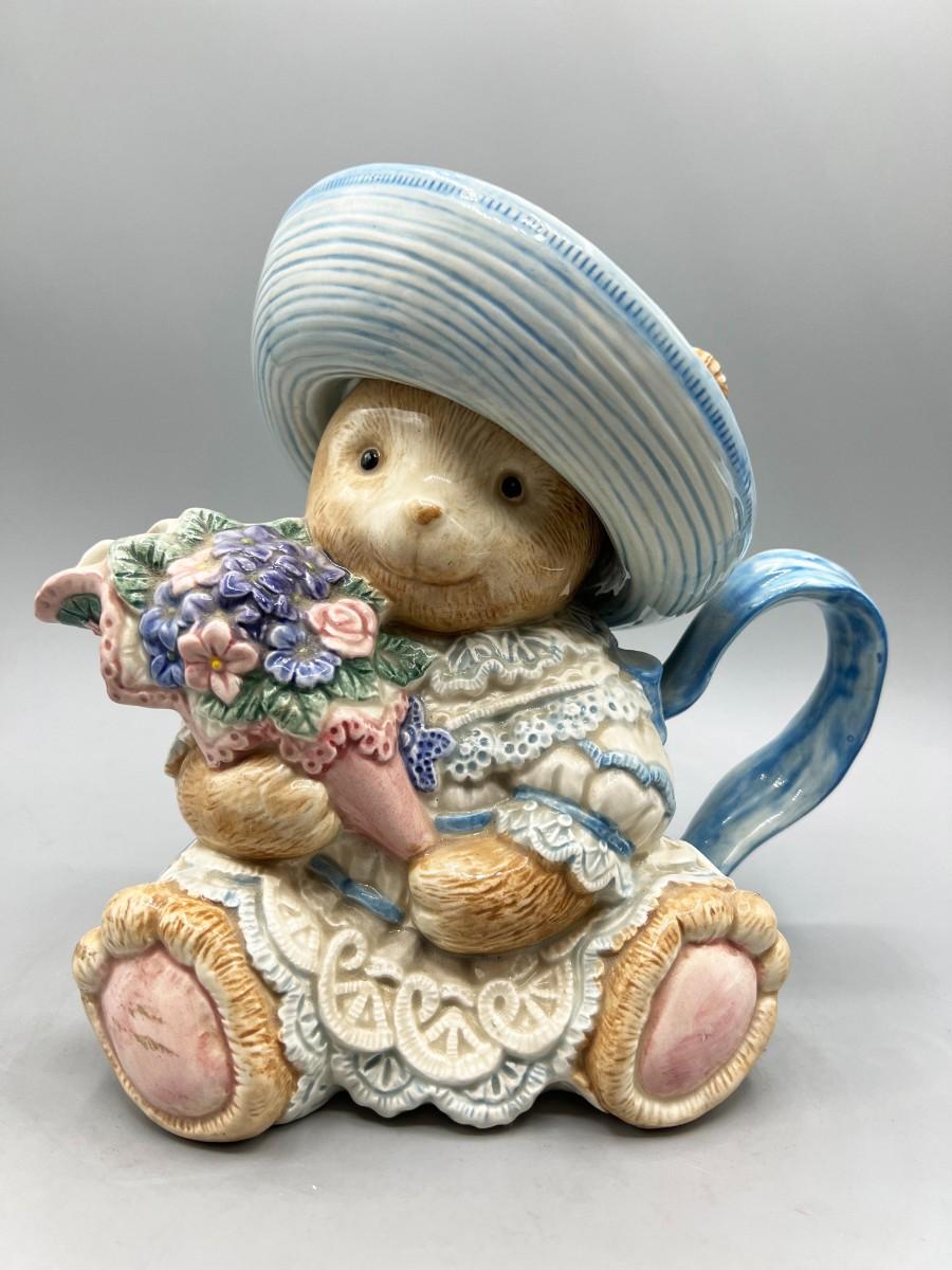 Fitz and Floyd Teapot Novelty Teddy Bear in Dress Vintage Retired Shabby Chic Cottagecore