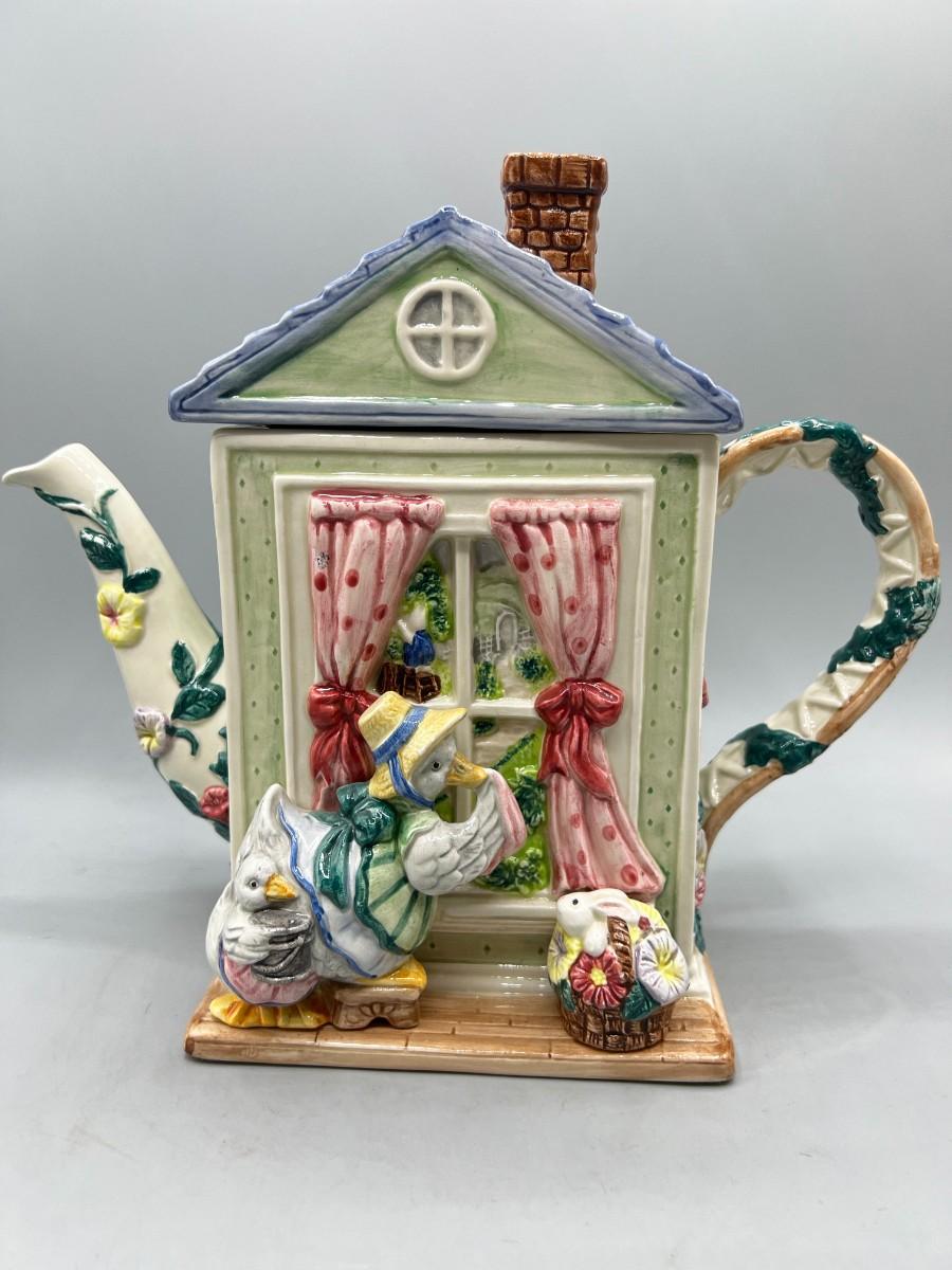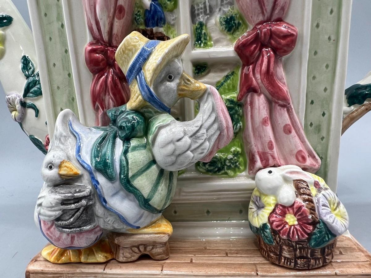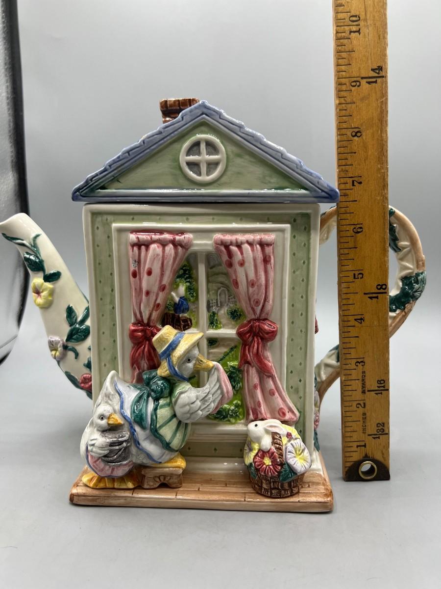 Vintage Retired Fitz & Floyd 1994 Goose Cleaning Window Novelty Teapot