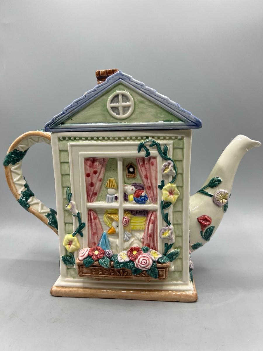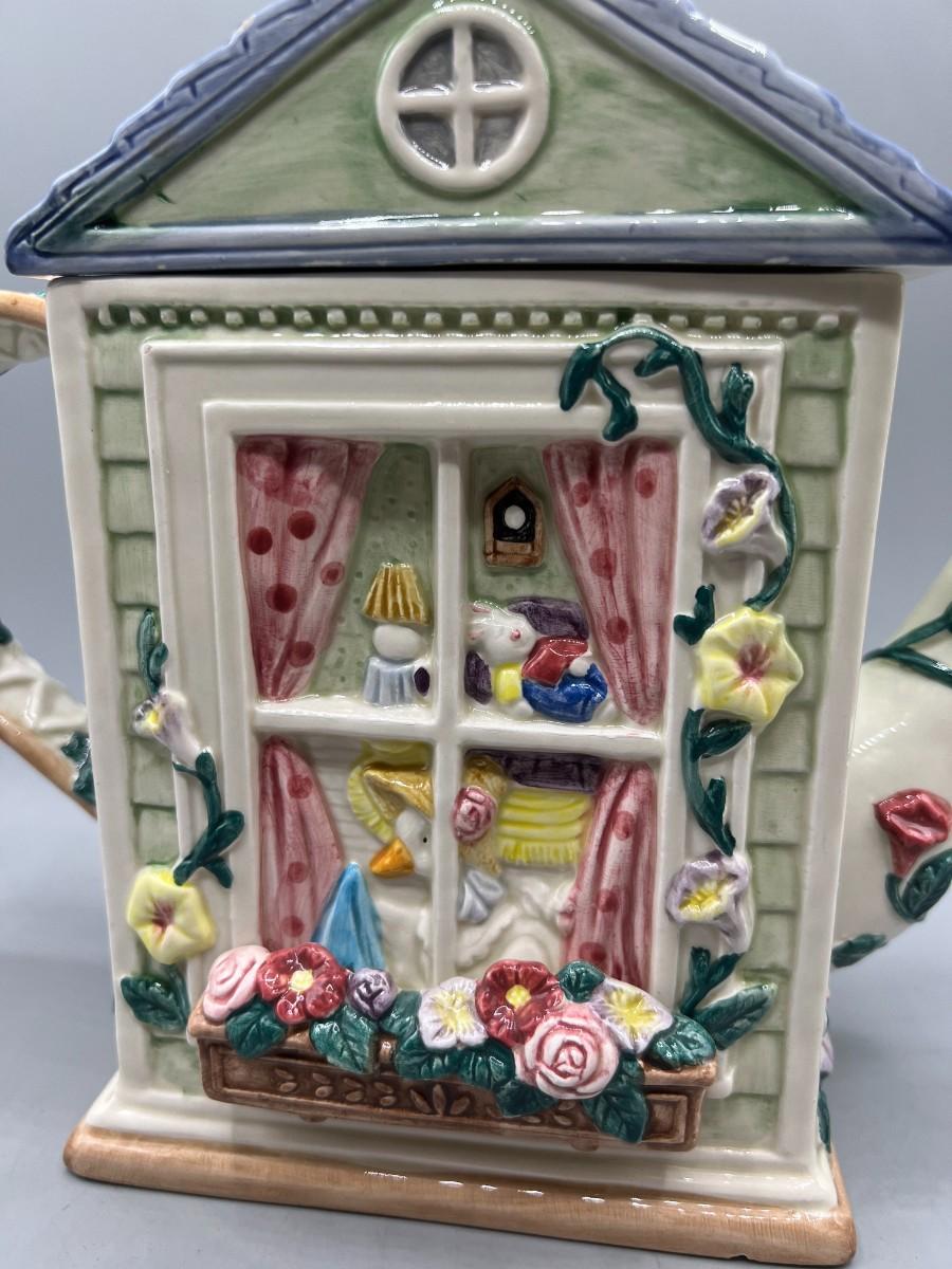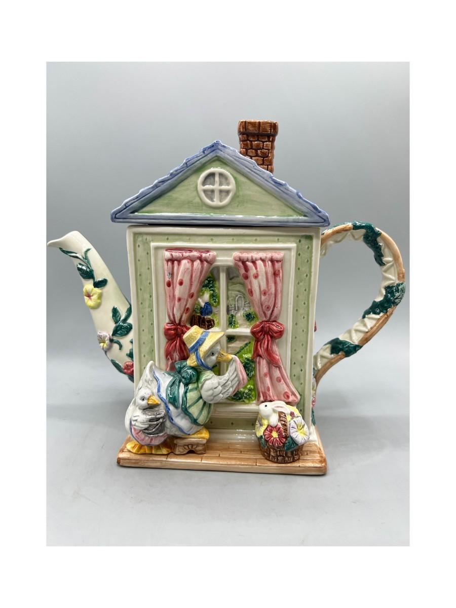 Vintage Retired Fitz & Floyd 1994 Goose Cleaning Window Novelty Teapot