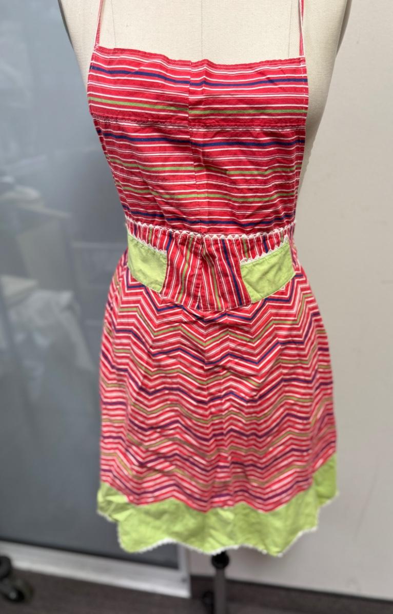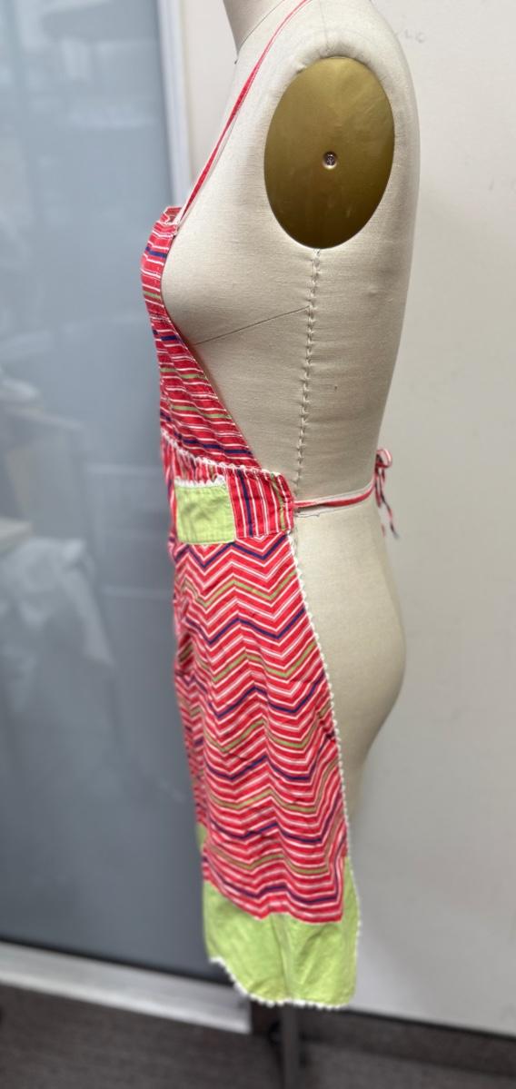 Vintage Retro 1970's Hand-crafted Apron -striped pattern of magenta, lime green, purple