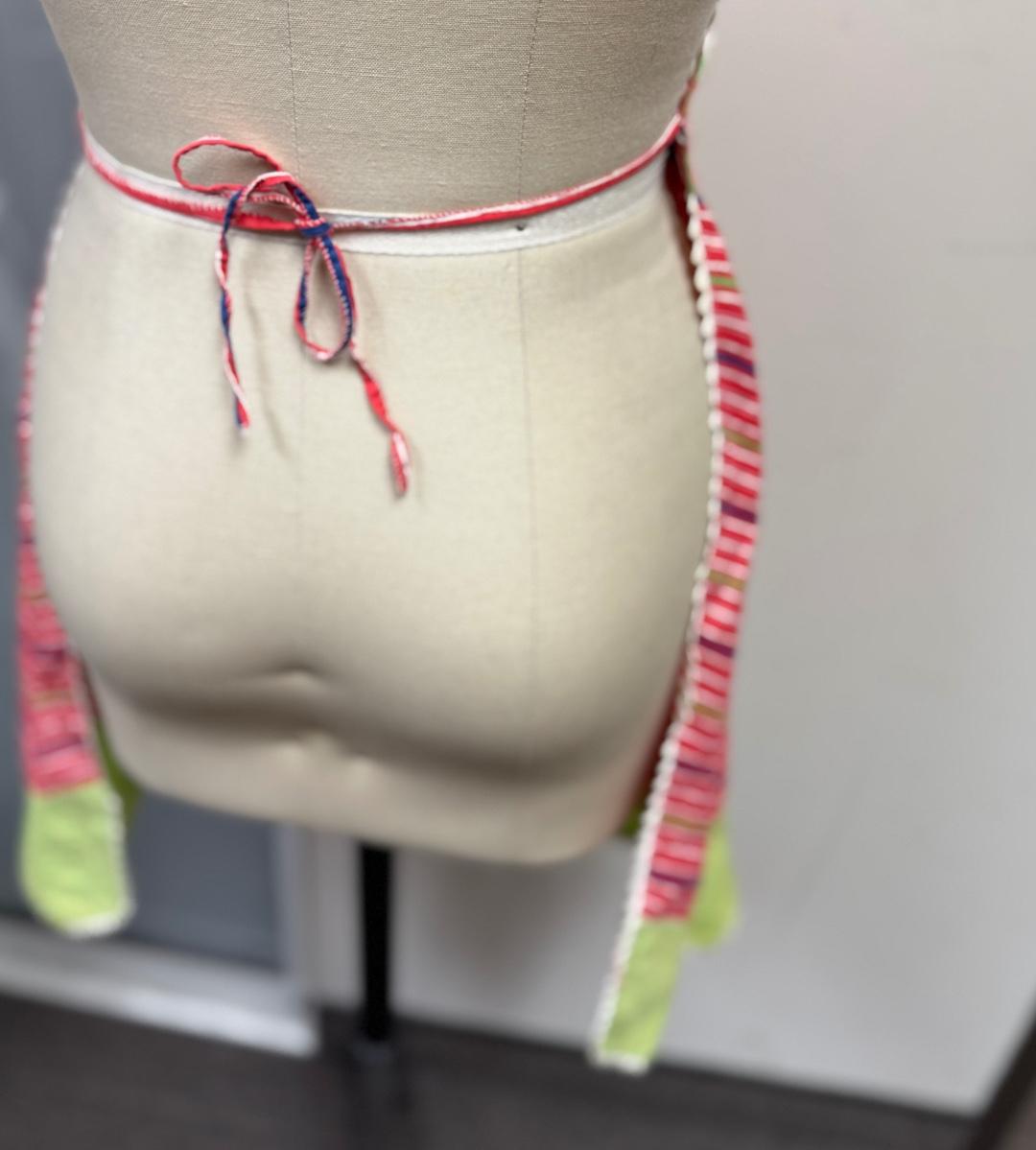 Vintage Retro 1970's Hand-crafted Apron -striped pattern of magenta, lime green, purple
