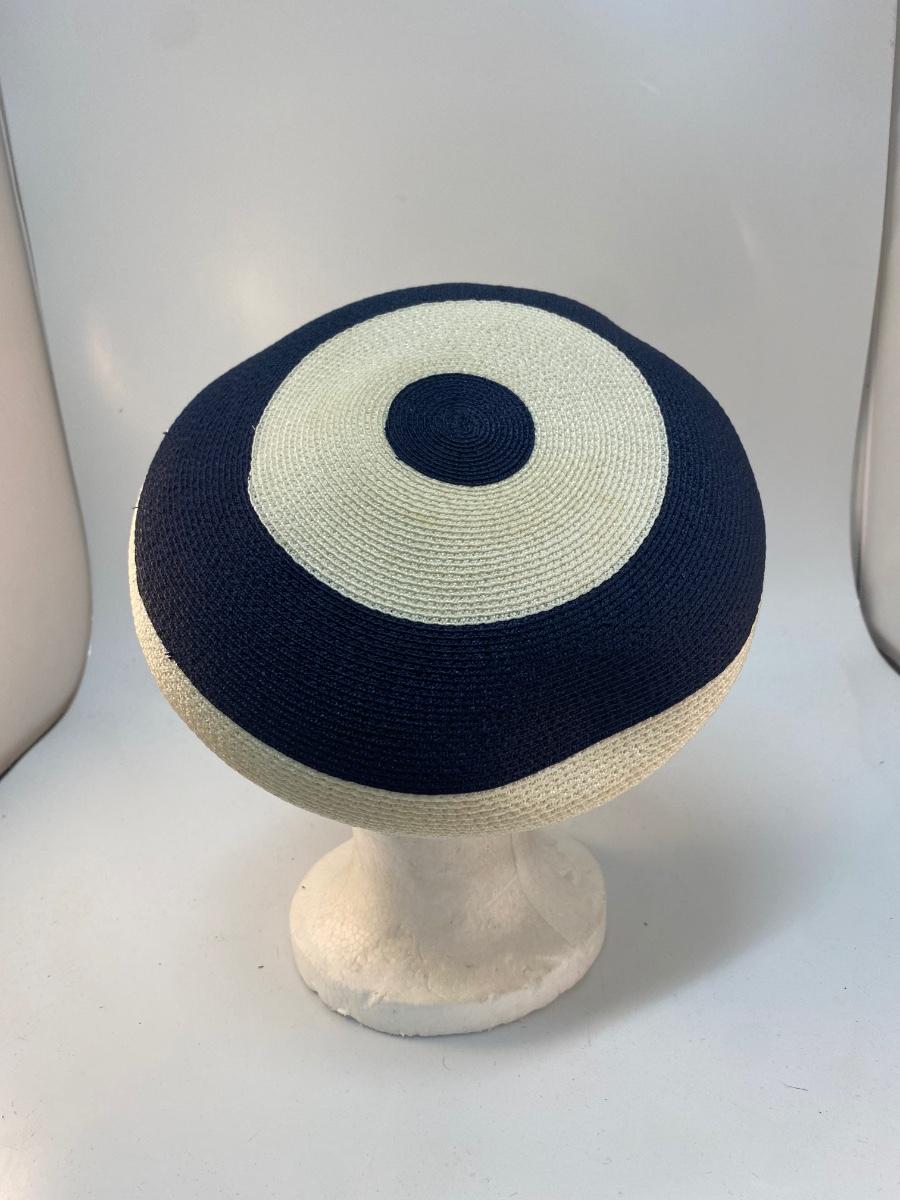 Vintage Retro Adolfo Realites Woven Red White & Blue Straw Bubble Beret Hat. Vintage mod abstract style. In good condition, one small flaw in weave.