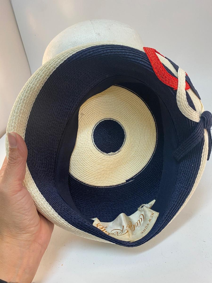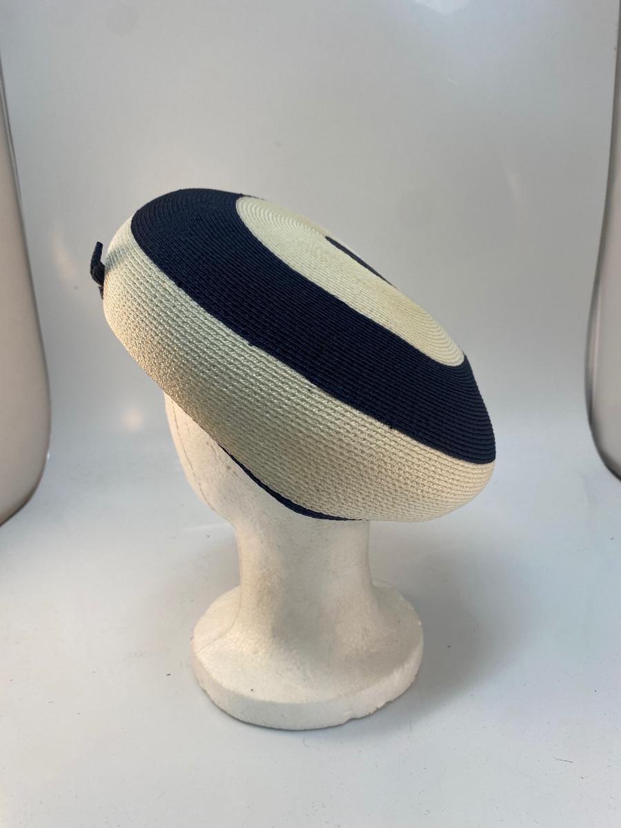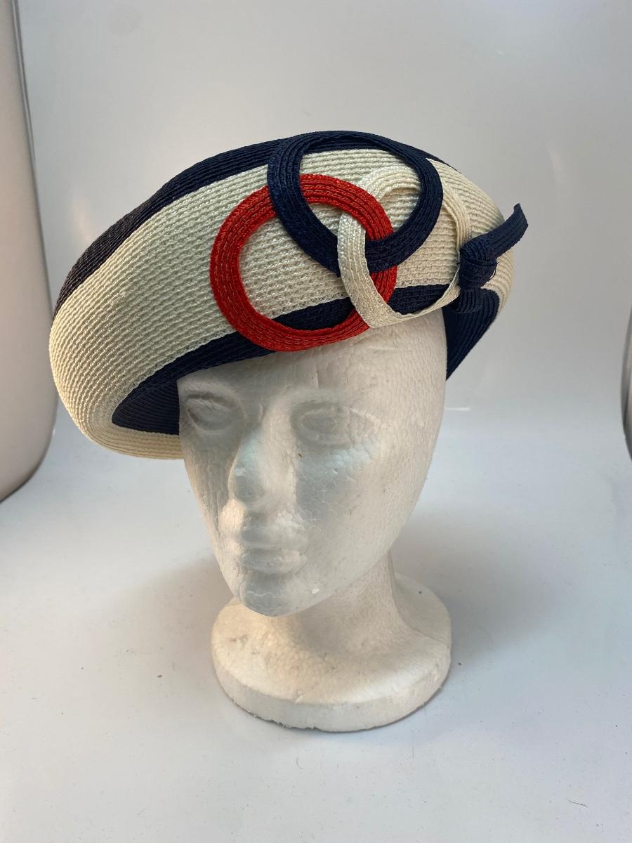 Vintage Retro Adolfo Realites Woven Red White & Blue Straw Bubble Beret Hat