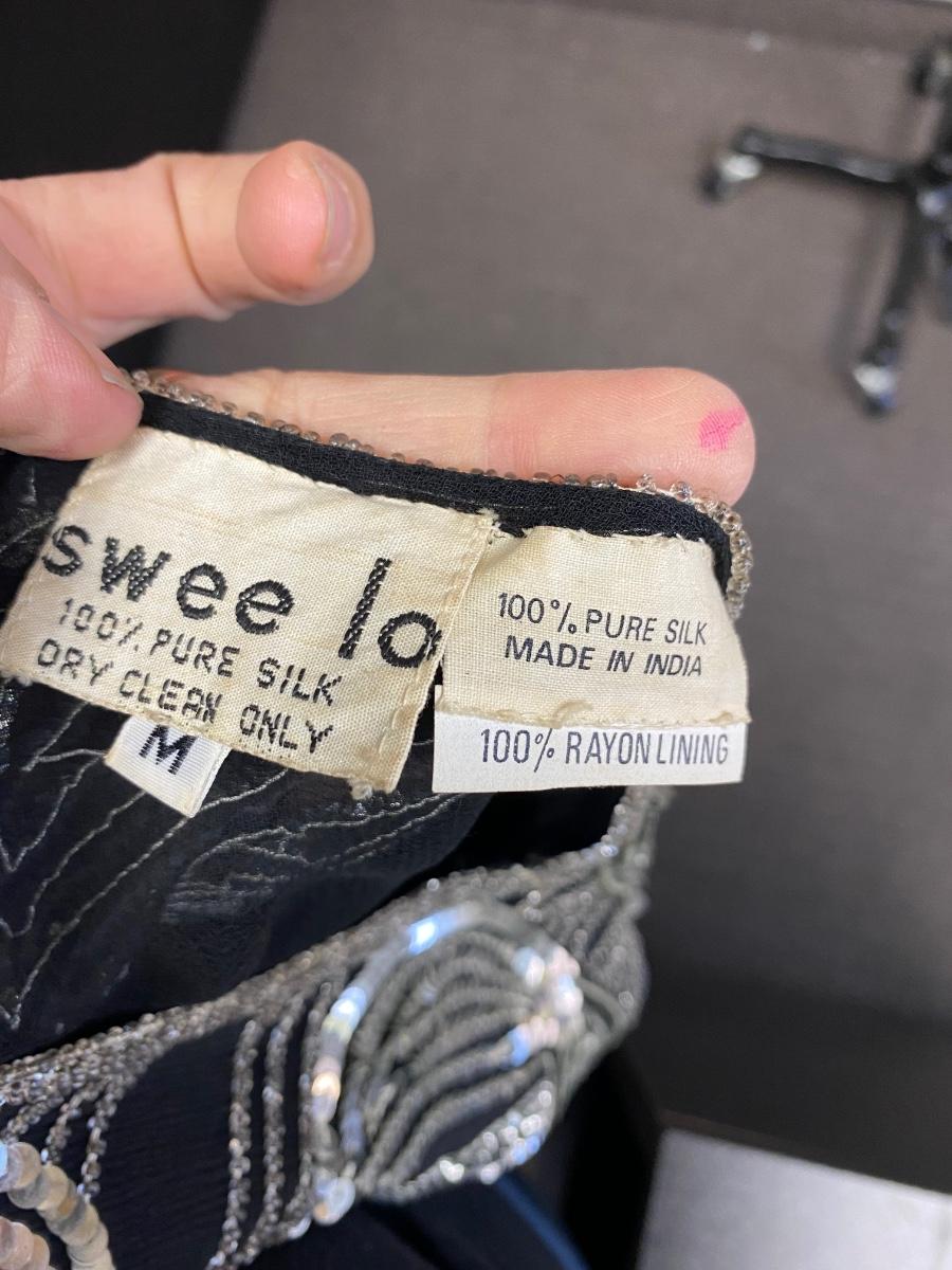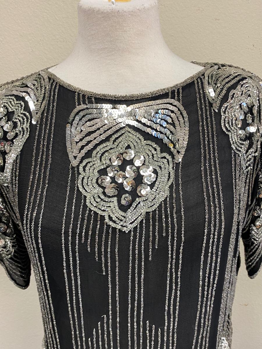 Vintage Retro Beaded Sequin Silk Top Medium. In good worn condition. Has an art deco/disco look to it.