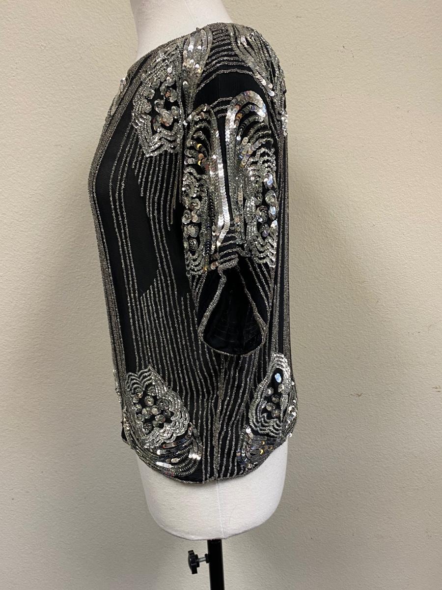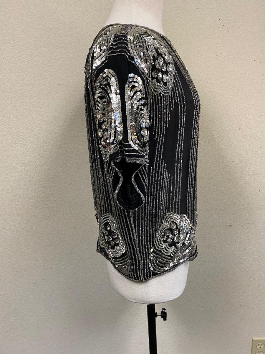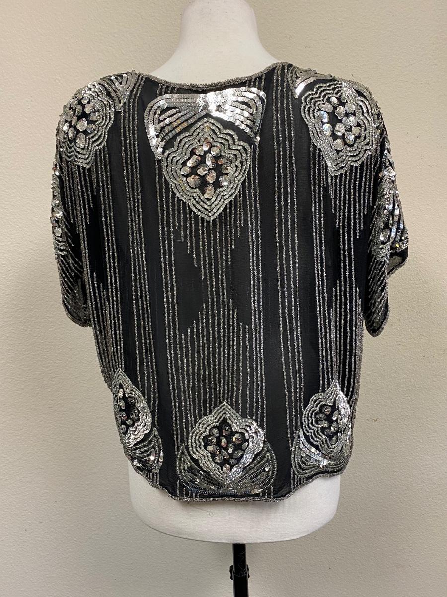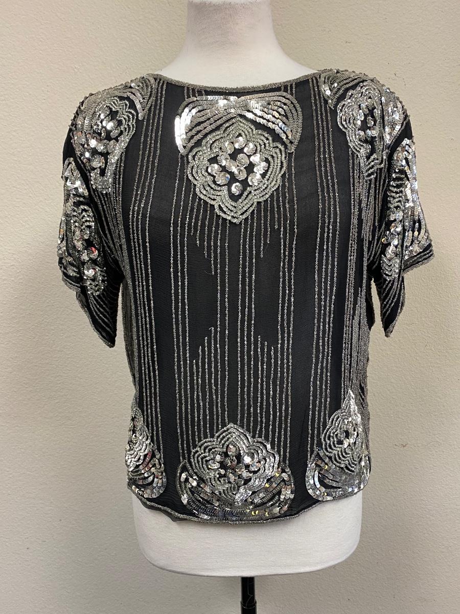 Vintage Retro Beaded Sequin Silk Top Medium