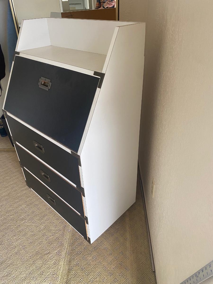 Vintage Retro Black & White Campaign Style Secretary Desk Dresser Cabinet