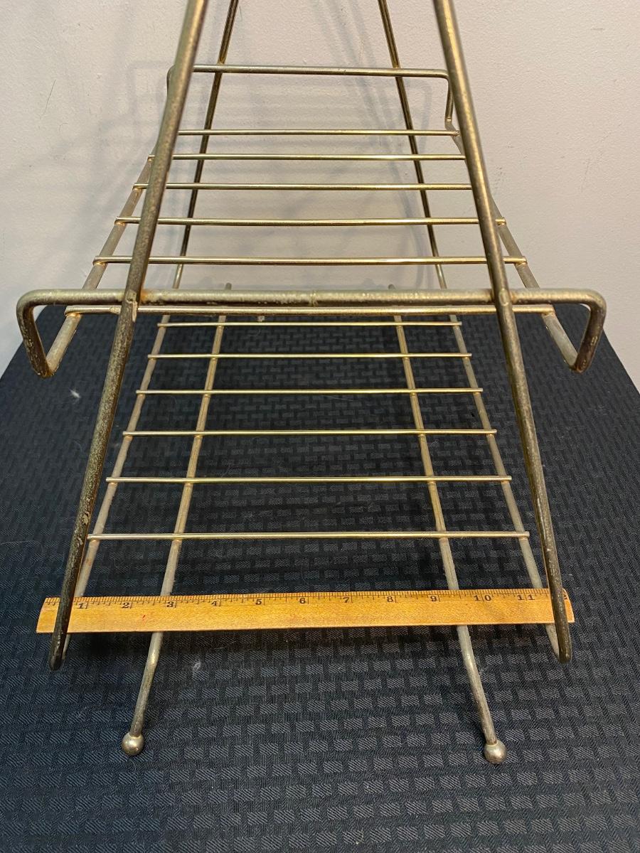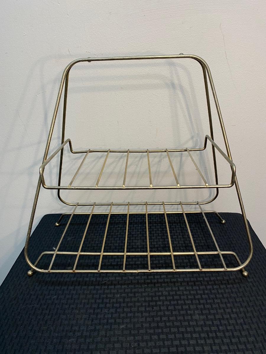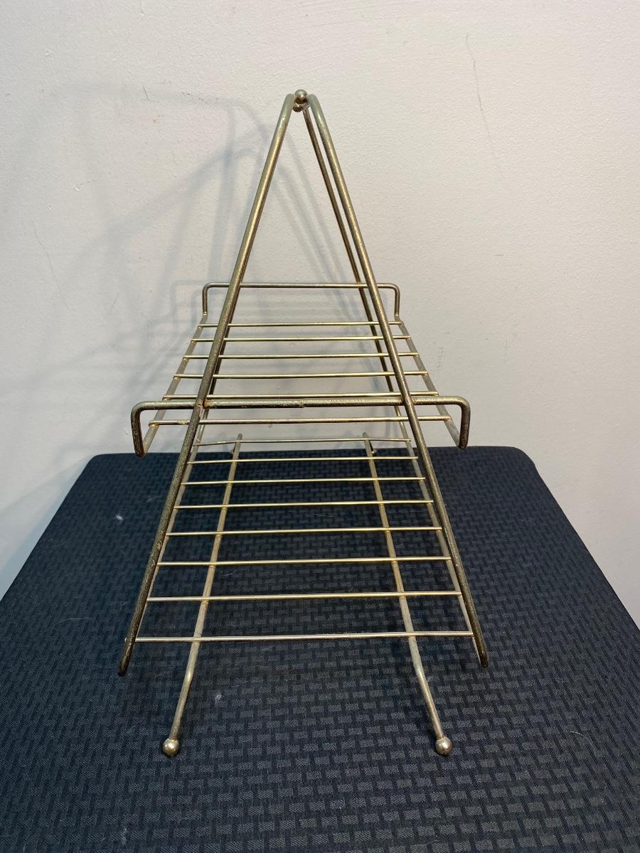 Retro brass magazine record holder stand. In good vintage condition. Some minor rust spots from age.
