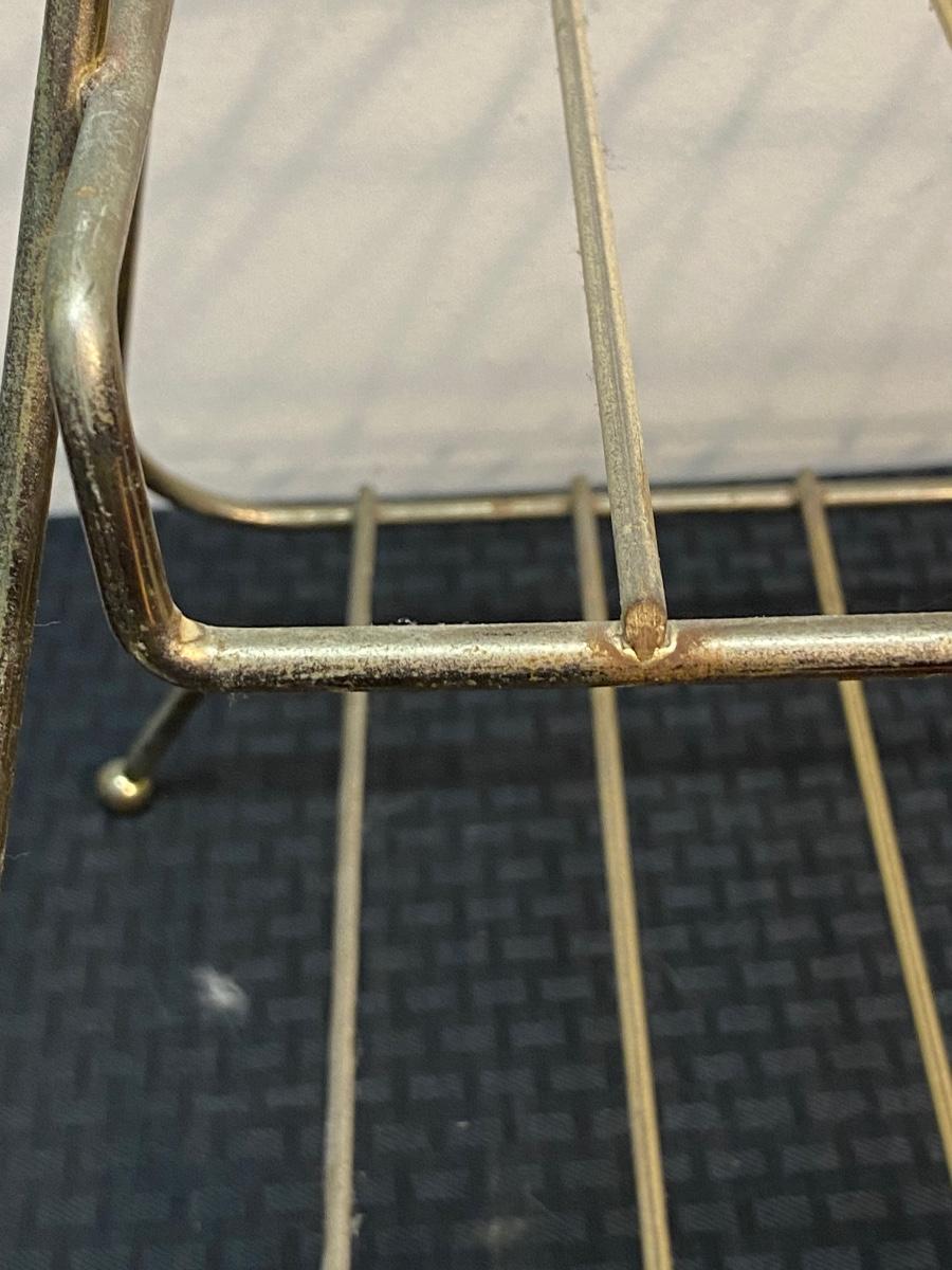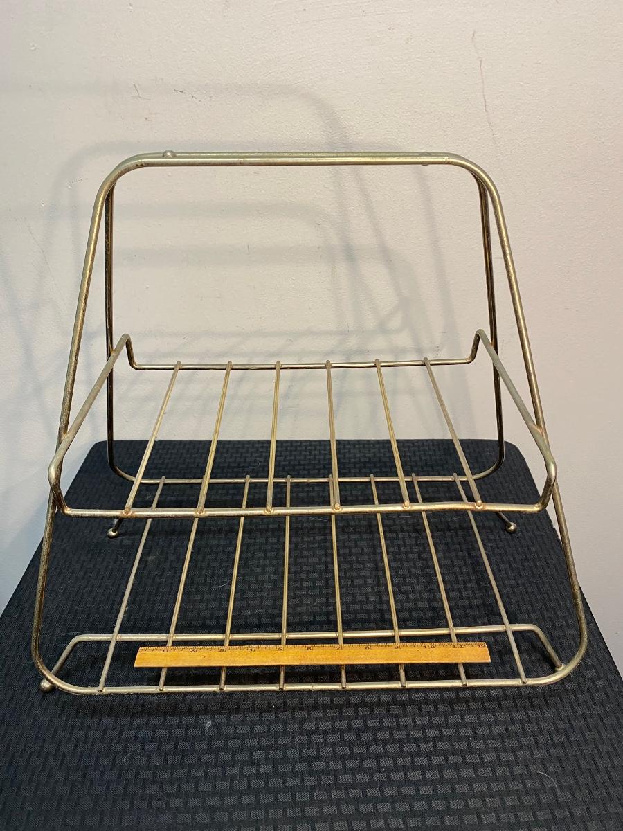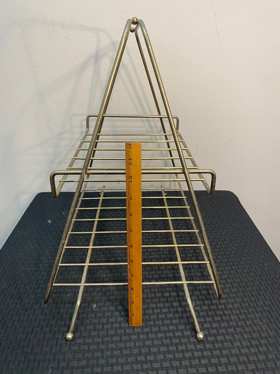 Retro brass magazine record holder stand. In good vintage condition. Some minor rust spots from age.