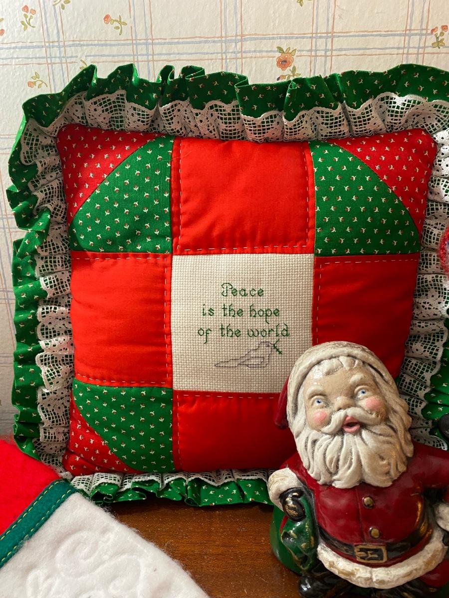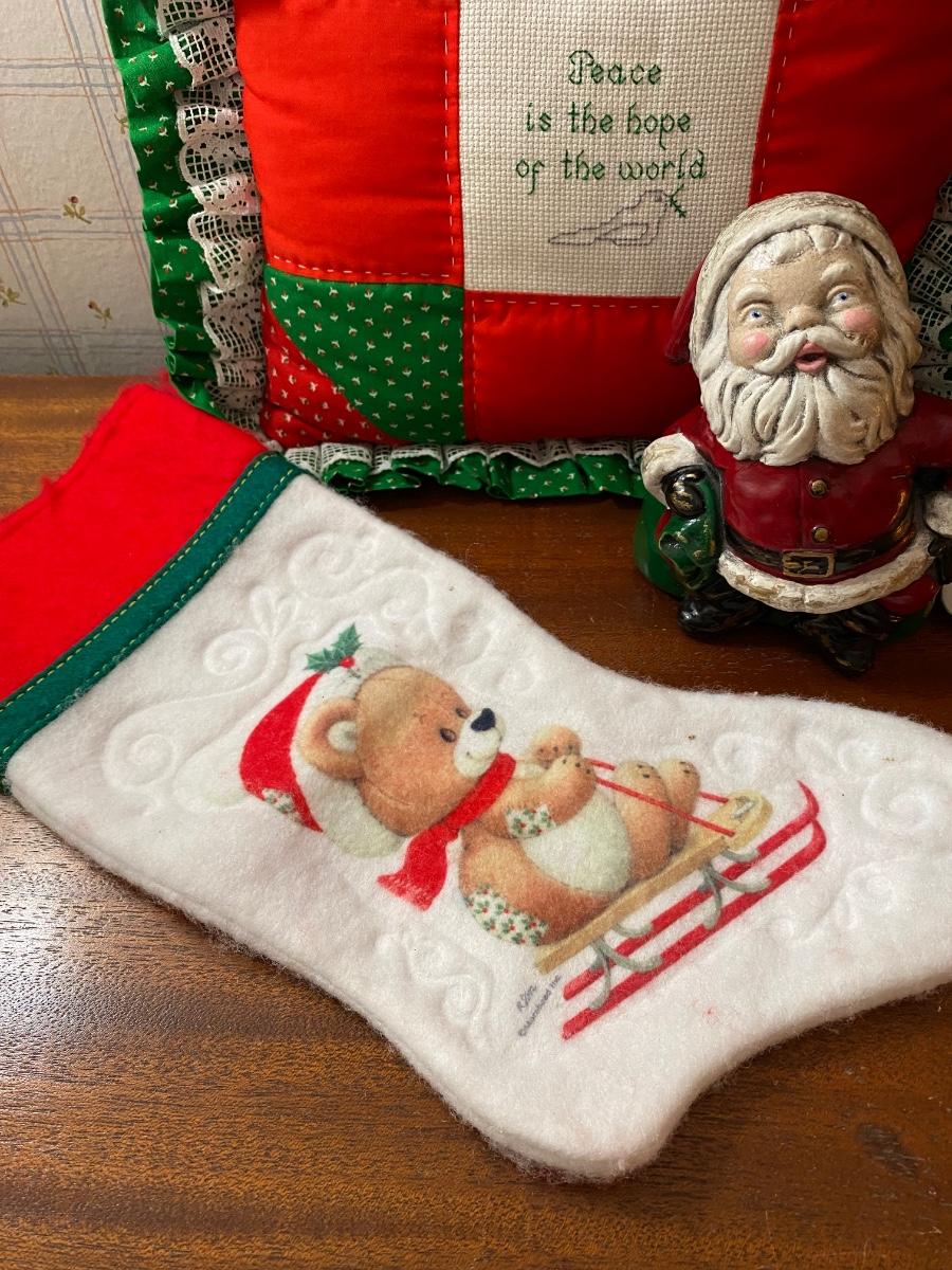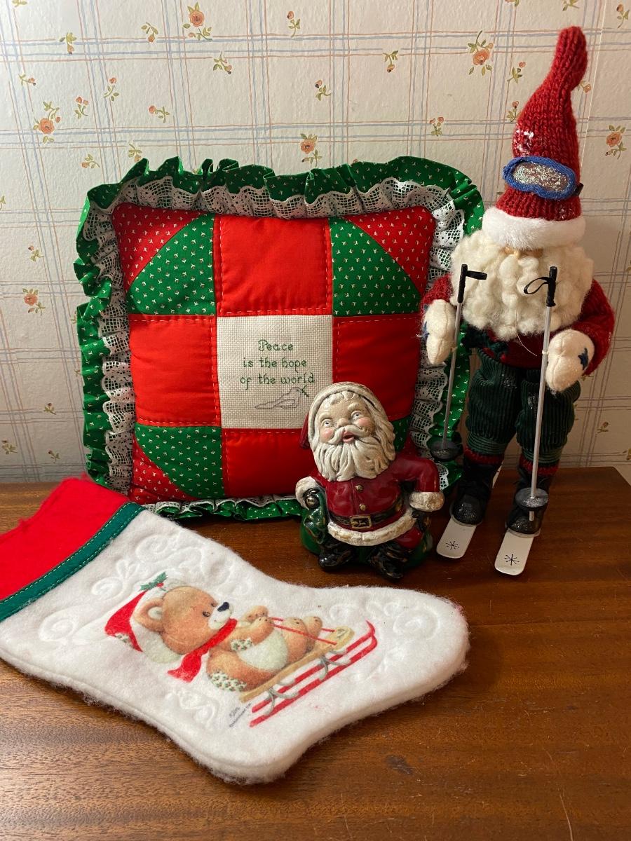 Vintage Retro Christmas Holiday Decor Lot - Pillow, Stocking, Santas