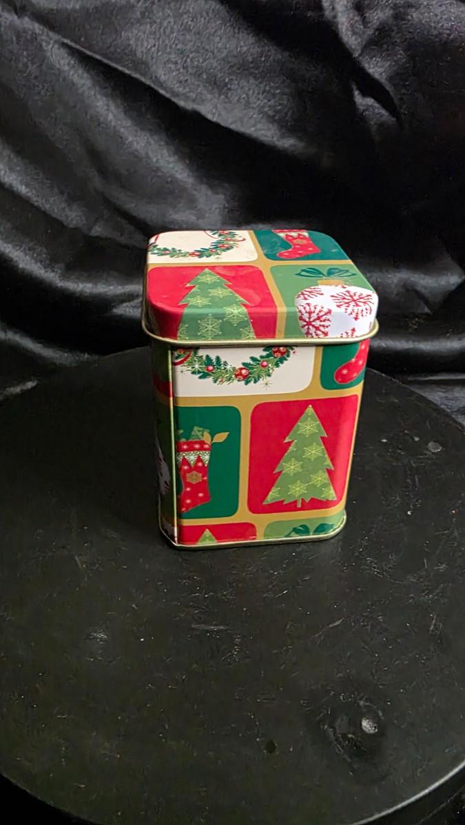 Perfect for stacking with other retro tins or shining alone on a counter, mantel, or gift table, it’s a nostalgic blast of Christmas cheer that turns storage into celebration. For collectors of mid-century holiday tins, lovers of bold patchwork designs, or anyone who believes the best Christmases come wrapped in color and pattern, it's a merry little treasure ready to make the season bright.