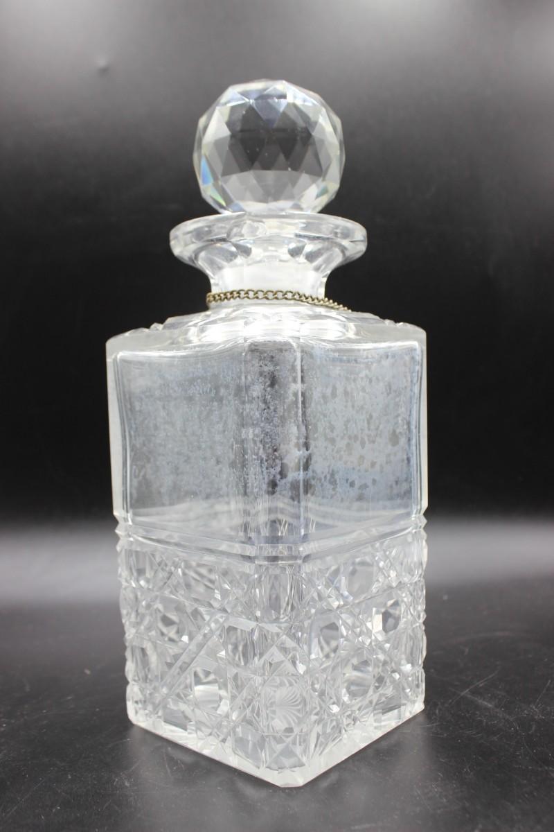 Vintage Diamond Etch Design Crystal Glass Brandy Liquor Decanter