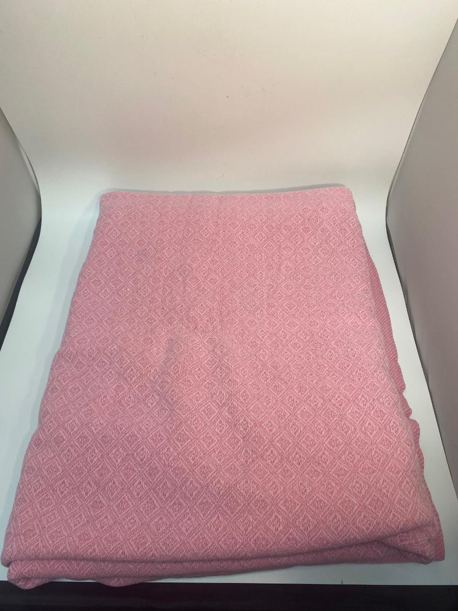 Vintage diamond pattern pink blanket. Seems to be a twin size blanket. Good vintage condition.