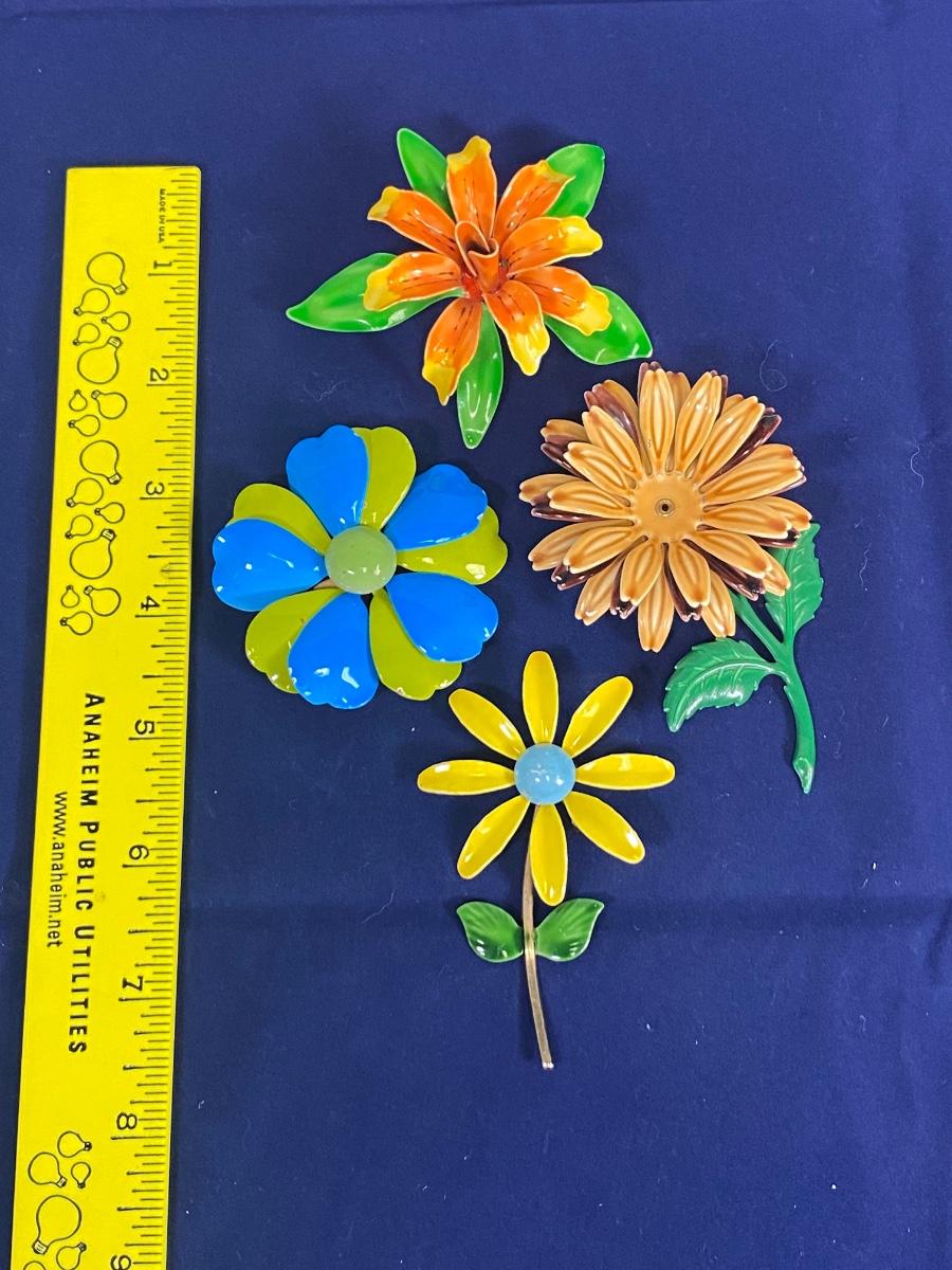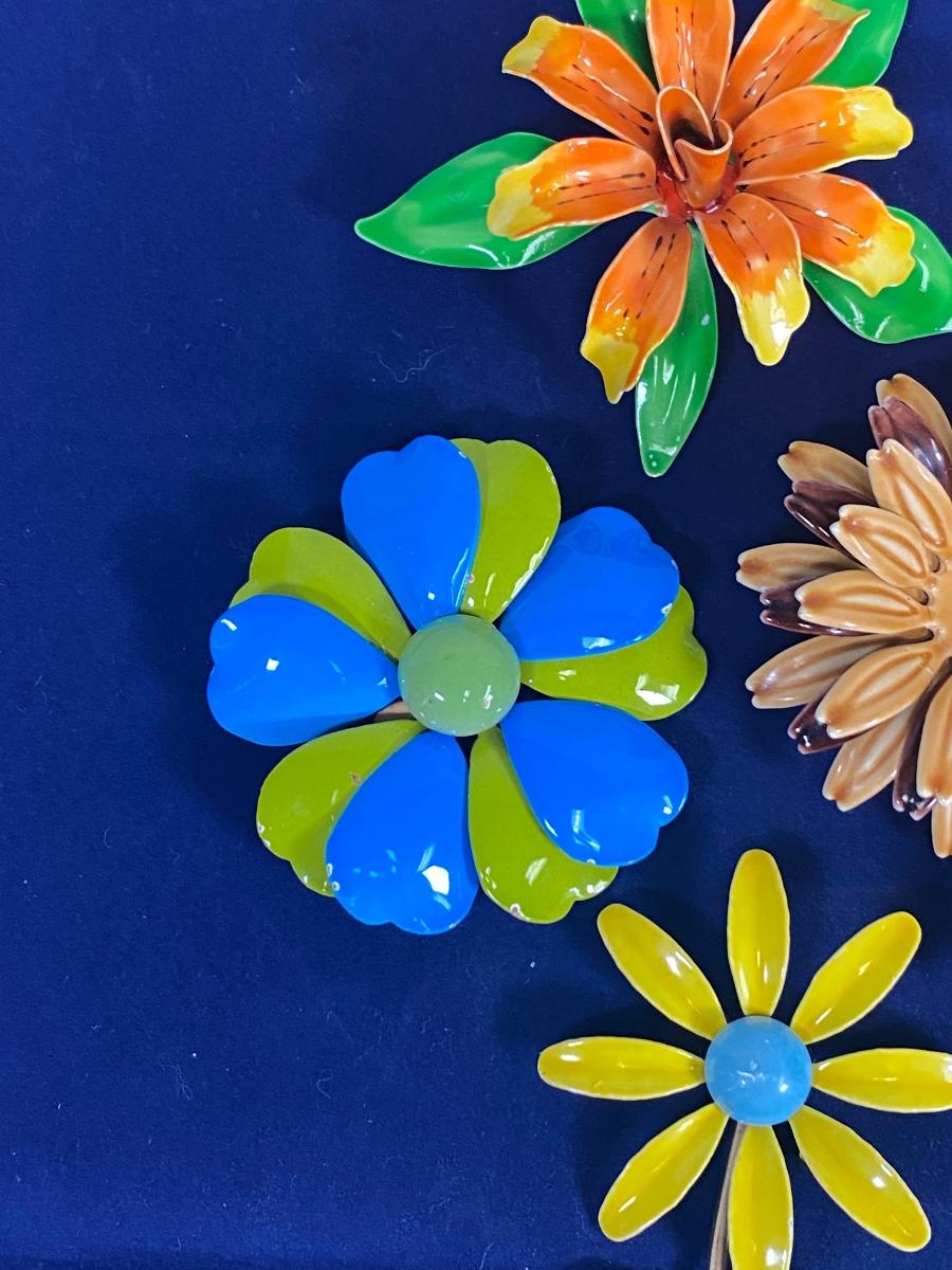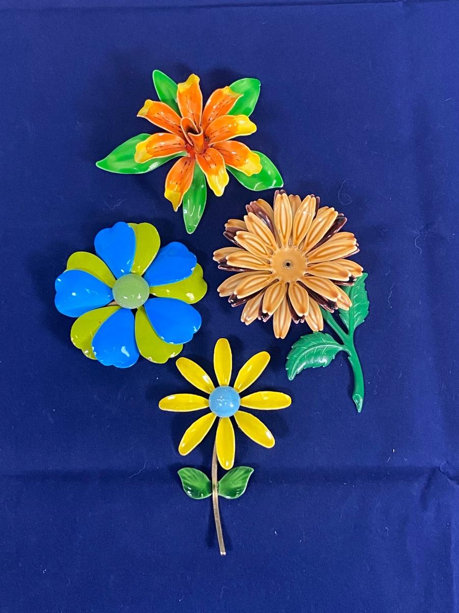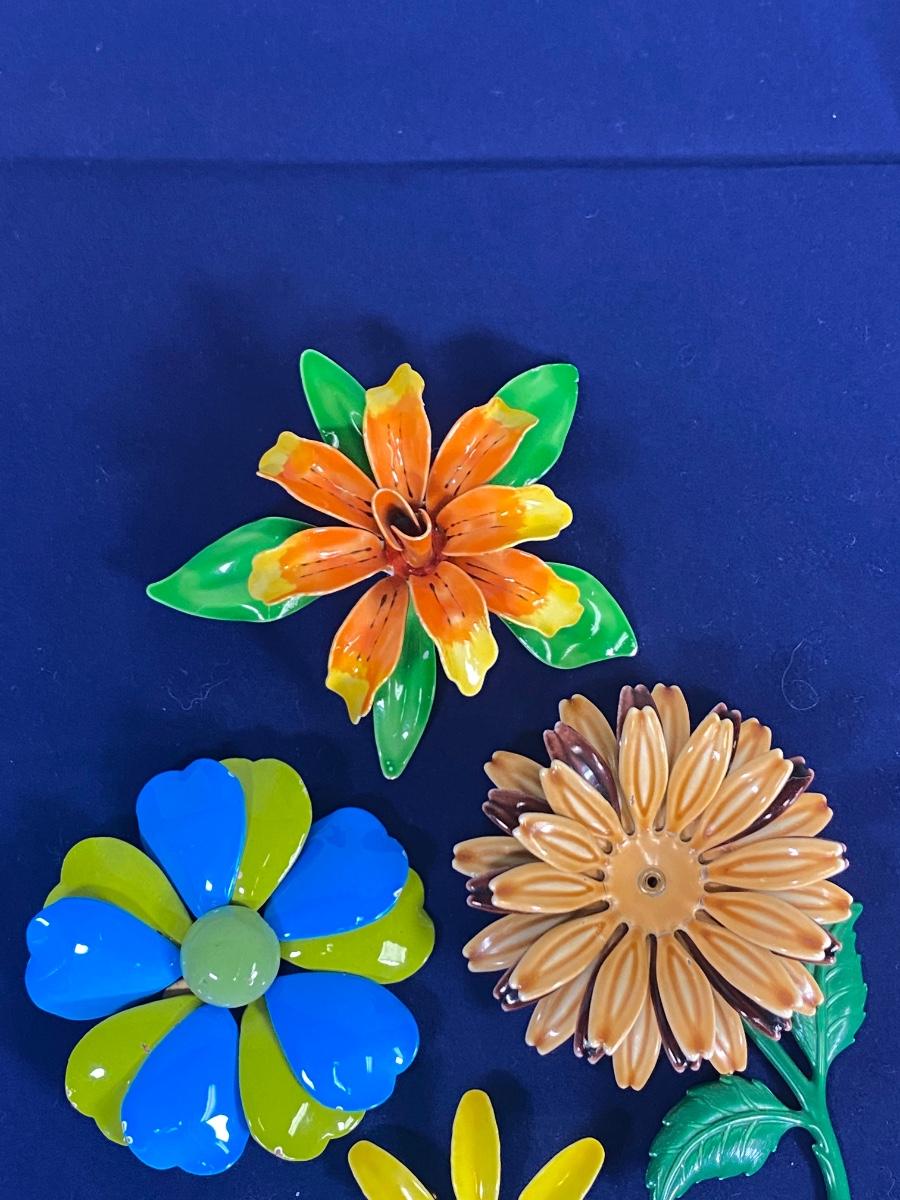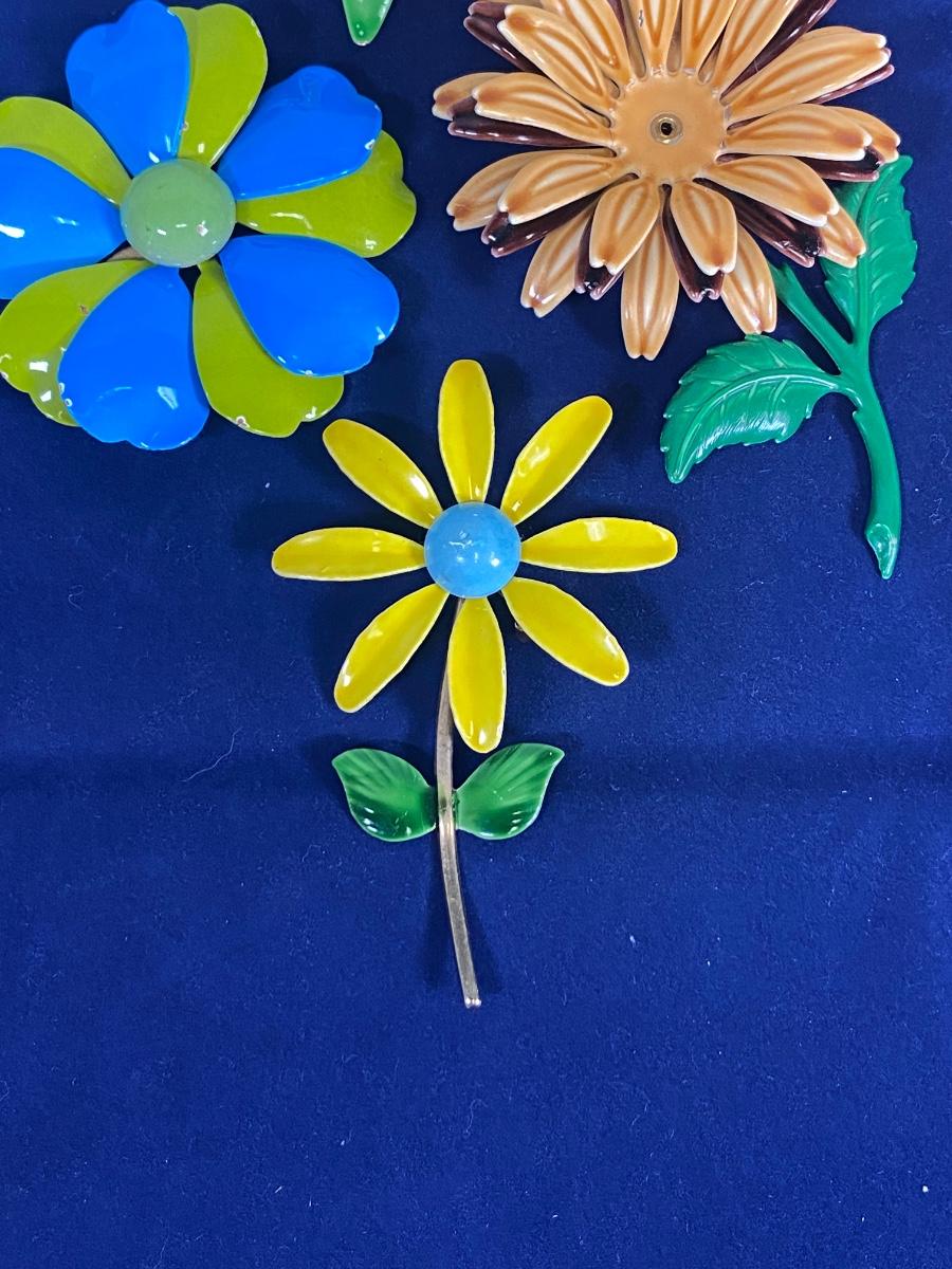 Vintage Retro Enamel Flower Pin Brooch Set of 4. In good vintage condition, very little wear. The brown daisy looks like it might be missing the center piece but would wear nicely.