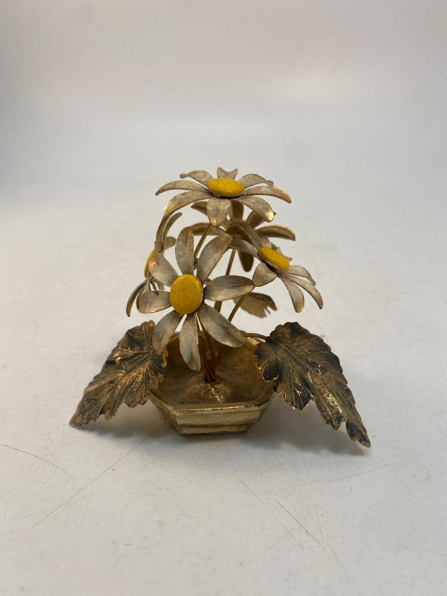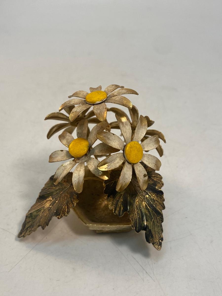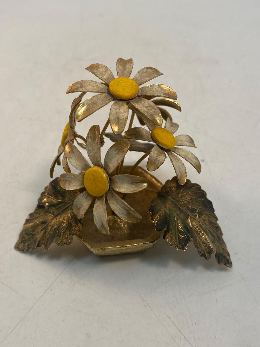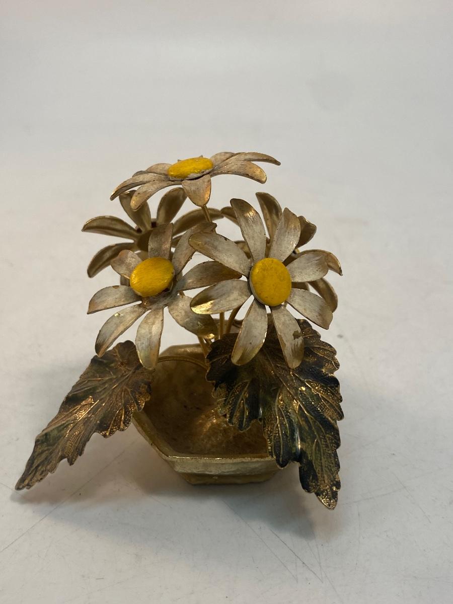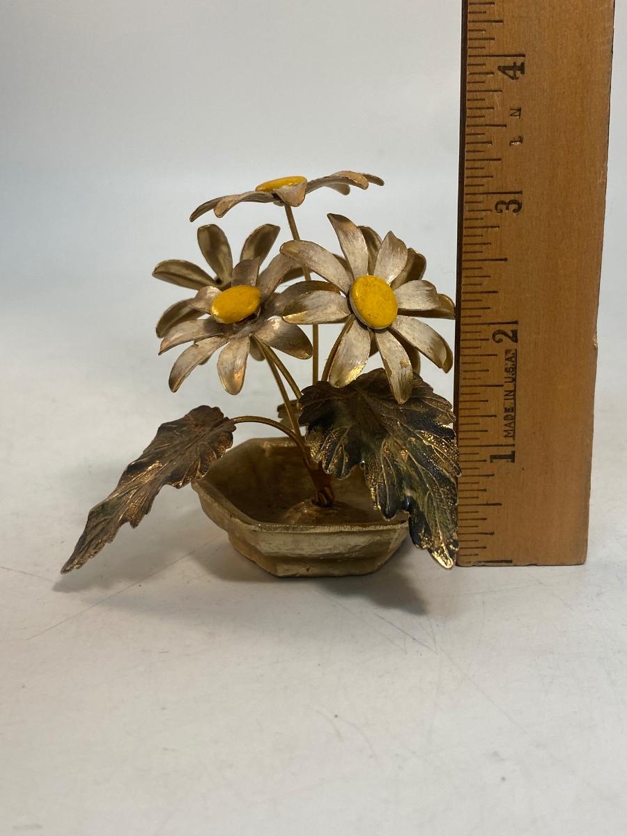 Vintage Retro Enameled Metal Art Daisy Flowers. Some light wear from age, display nicely. About 3" tall.