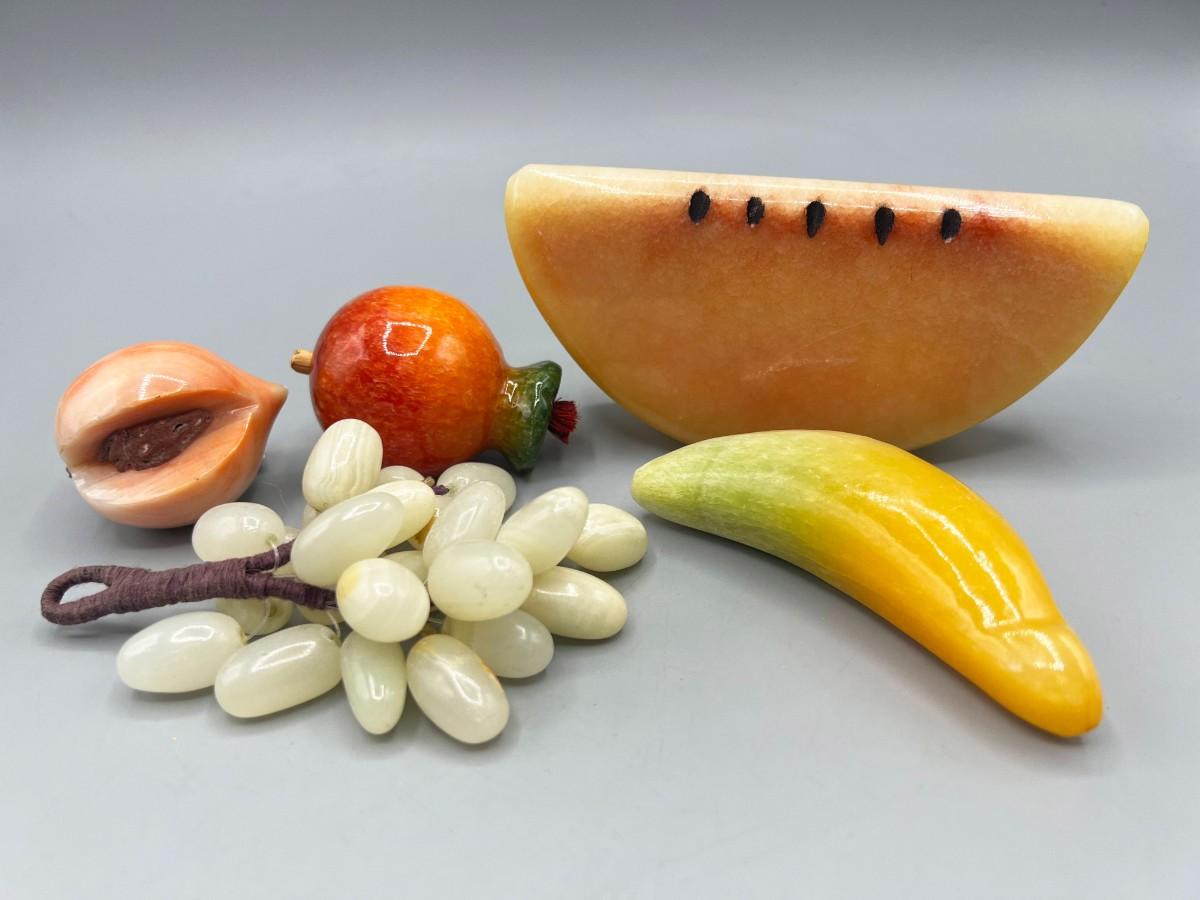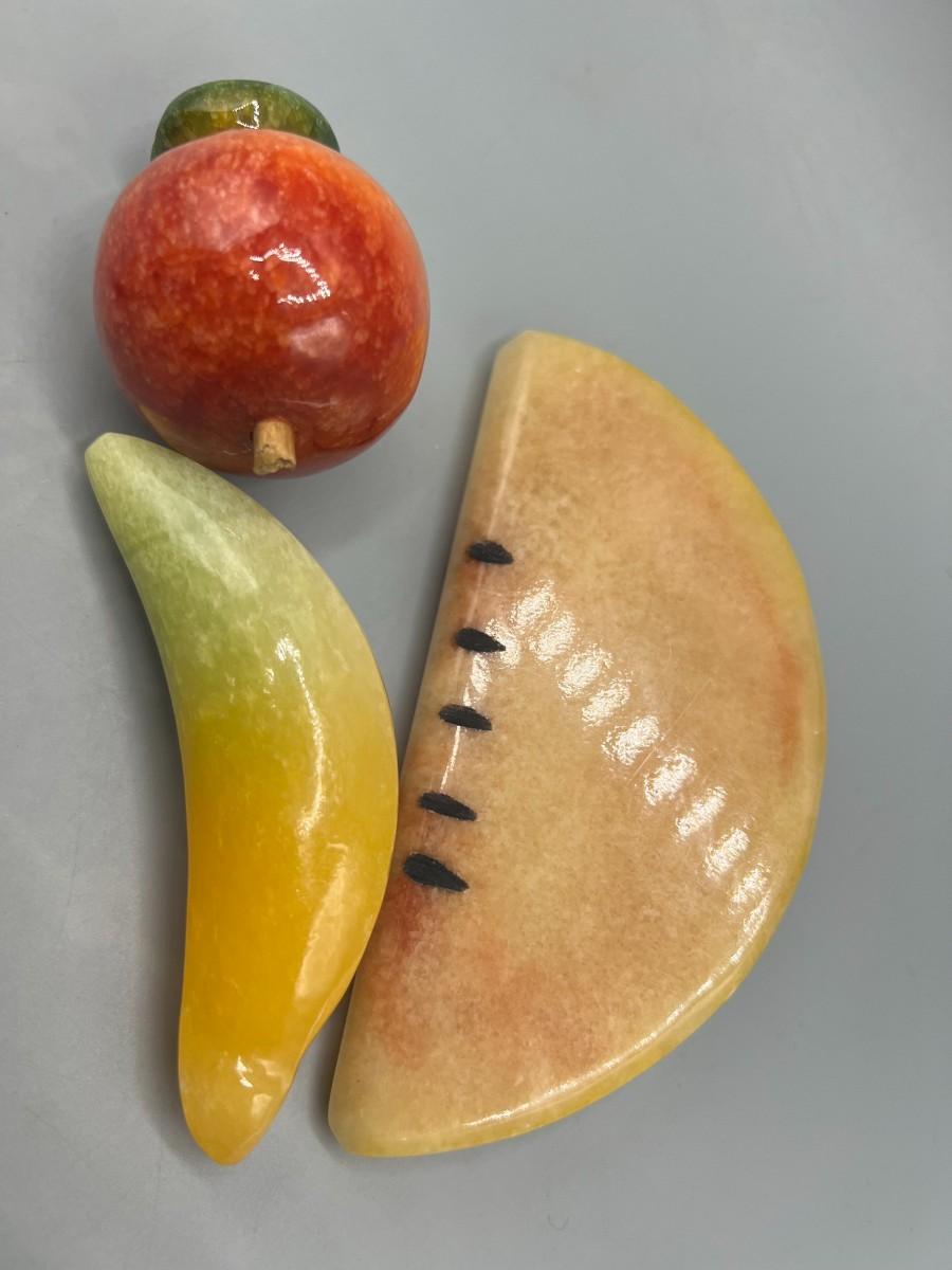 Vintage Retro Fruit Shaped Polished Stones Gems from Underground. All pieces are made from various minerals & Stones. Good condition.