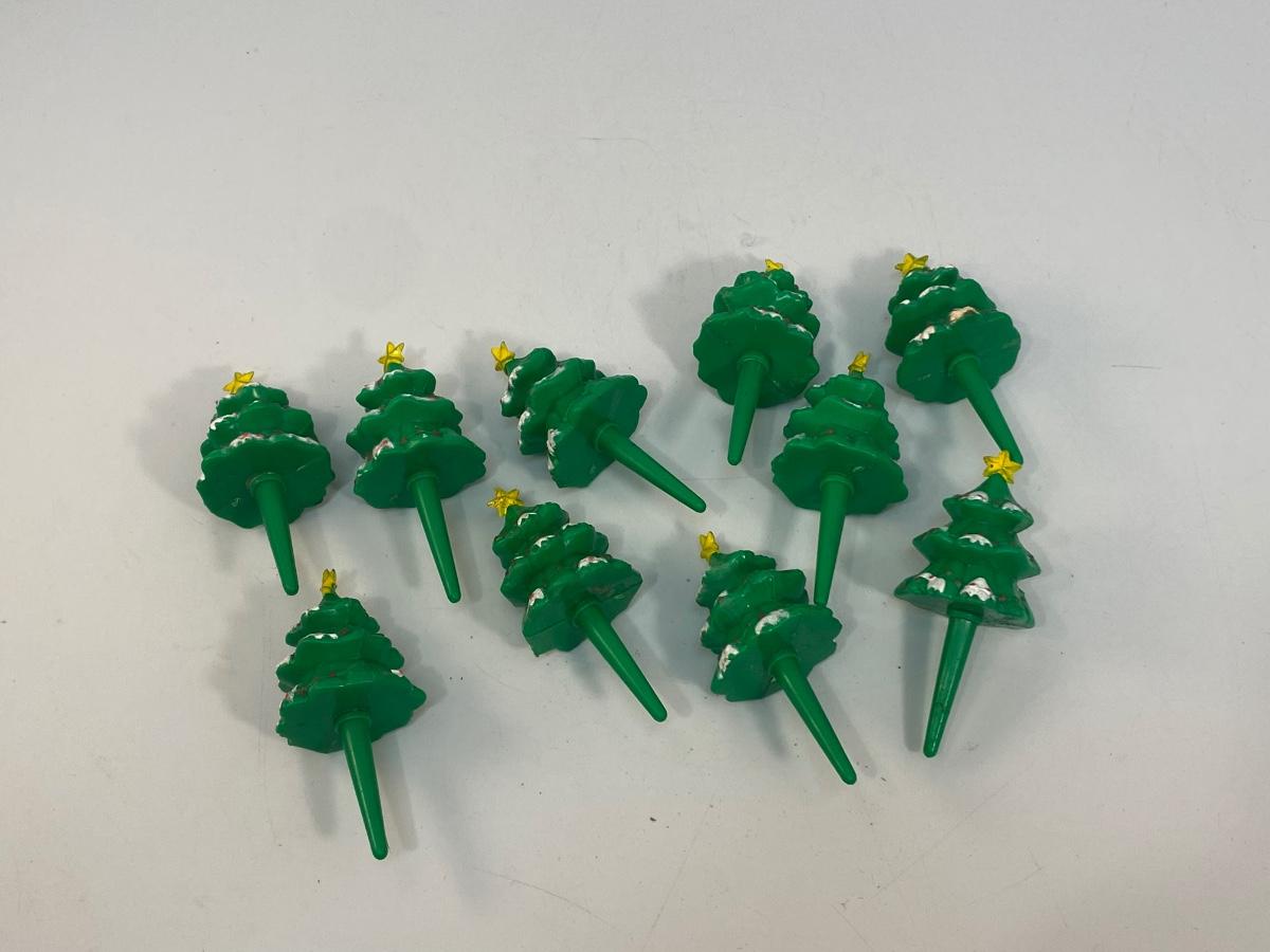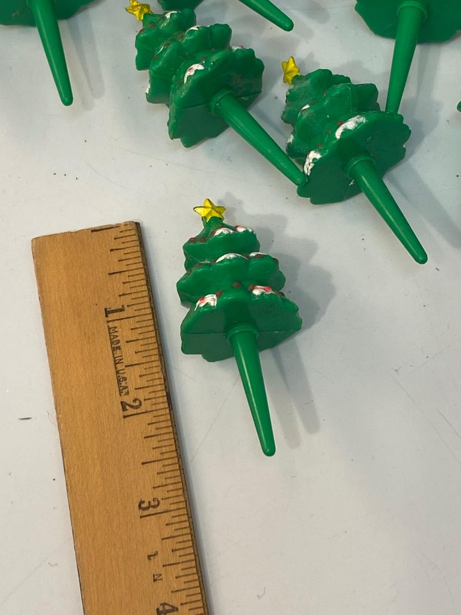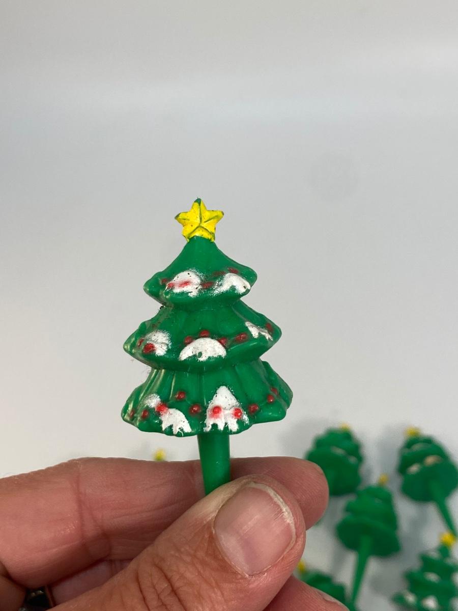 Vintage Retro Green Christmas Holiday Trees Cupcake Cake Decorations. Plastic decorations in good condition