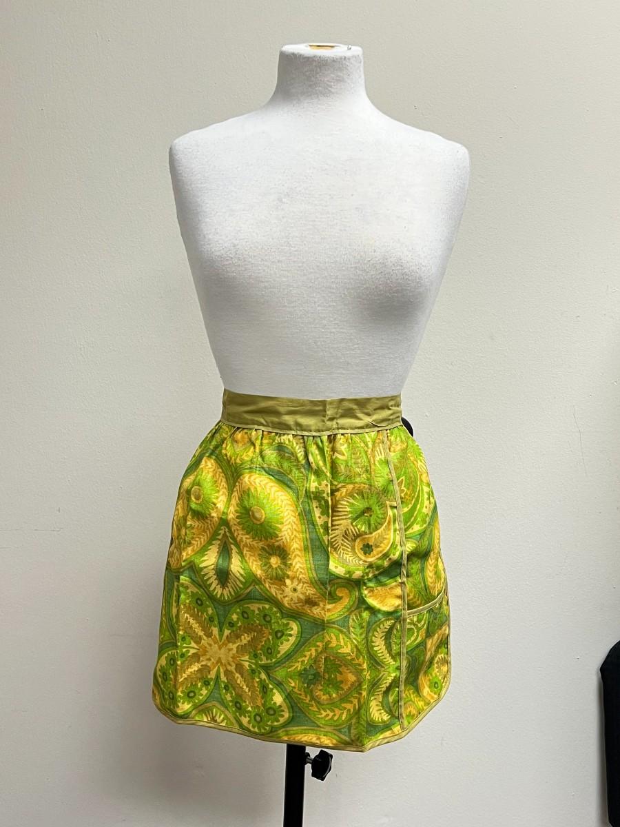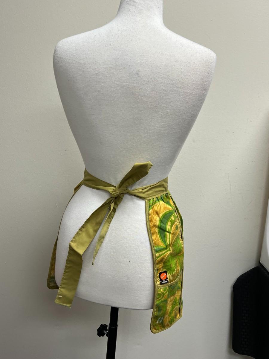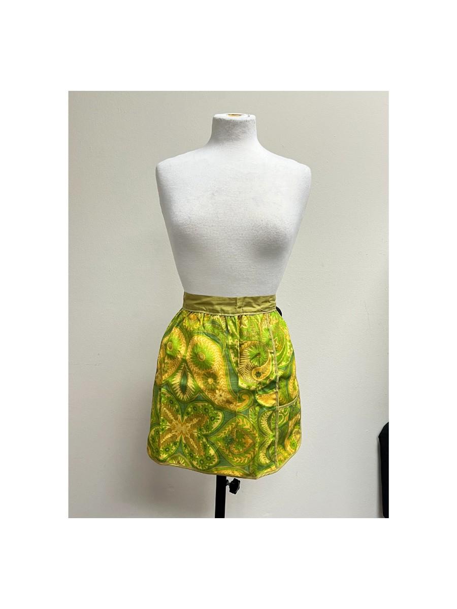 Vintage Retro Green & Yellow Paisley Pattern Linen Half Apron