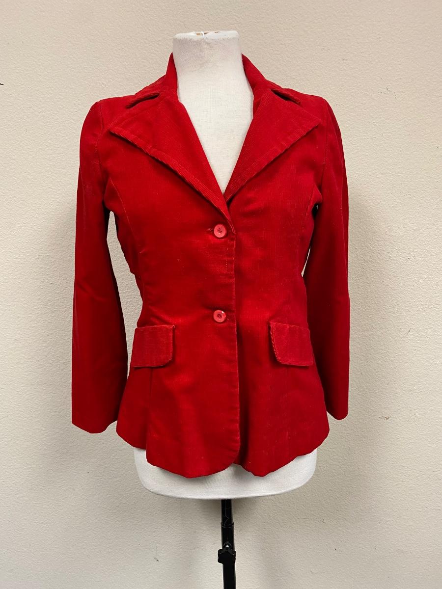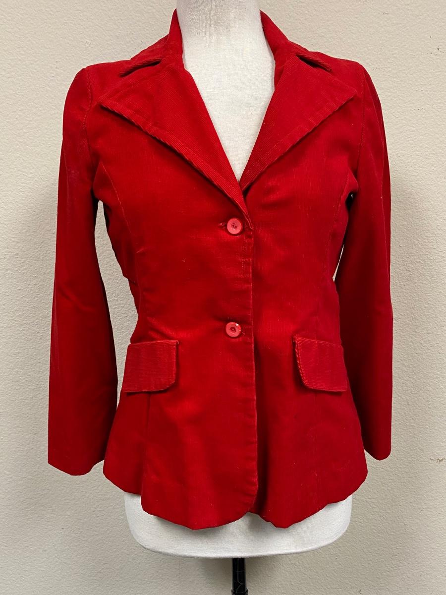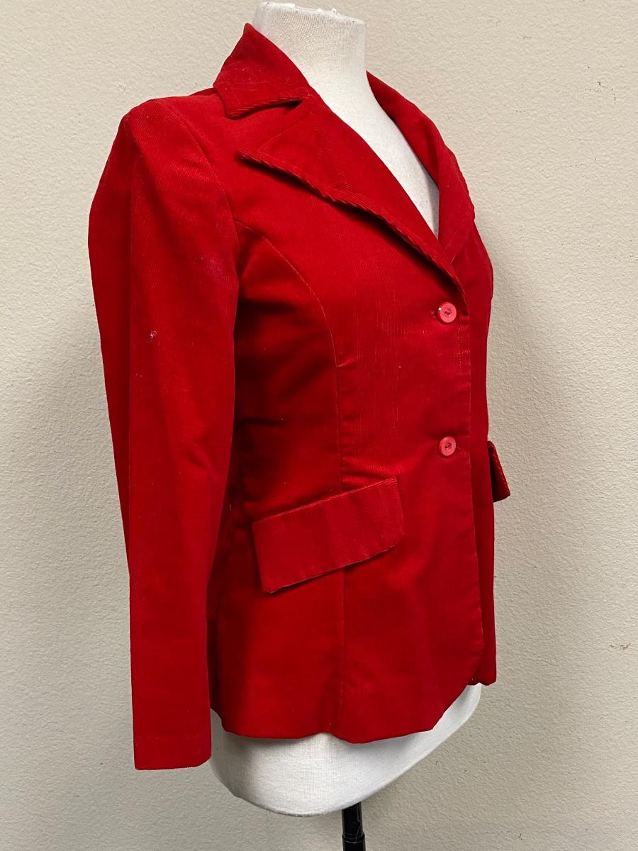 Vintage Retro Homemade Red Corduroy Blazer Fitted Suit Jacket Blouse Top